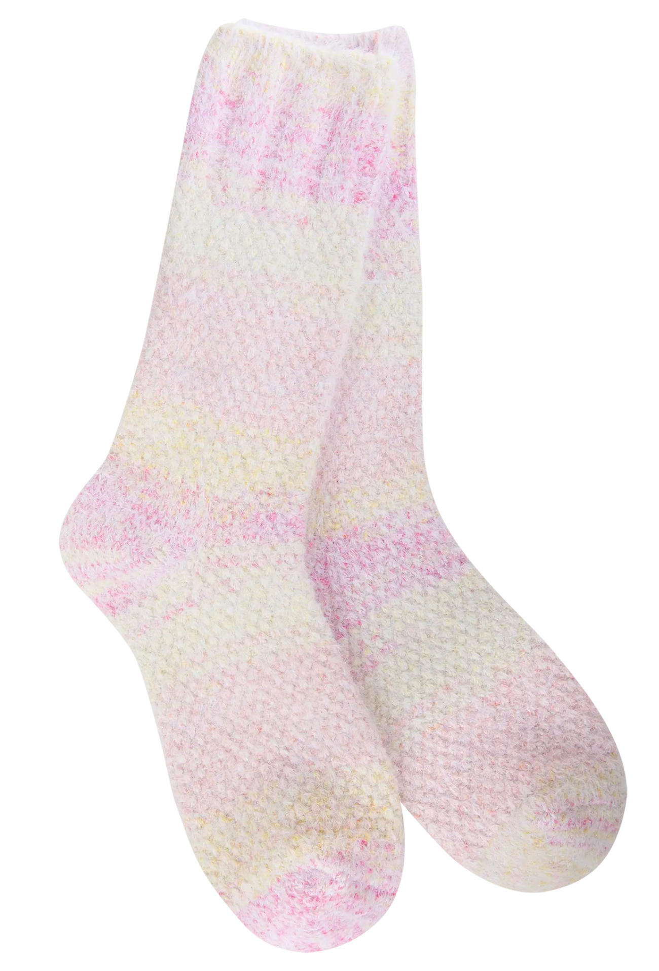 Indulge in the ultimate comfort with our World's Softest Weekend Ombre Feather Crew. This crew sock boasts a thick, cozy design that will keep your feet warm and snug all weekend long. Say goodbye to discomfort and hello to relaxation with these luxurious socks.