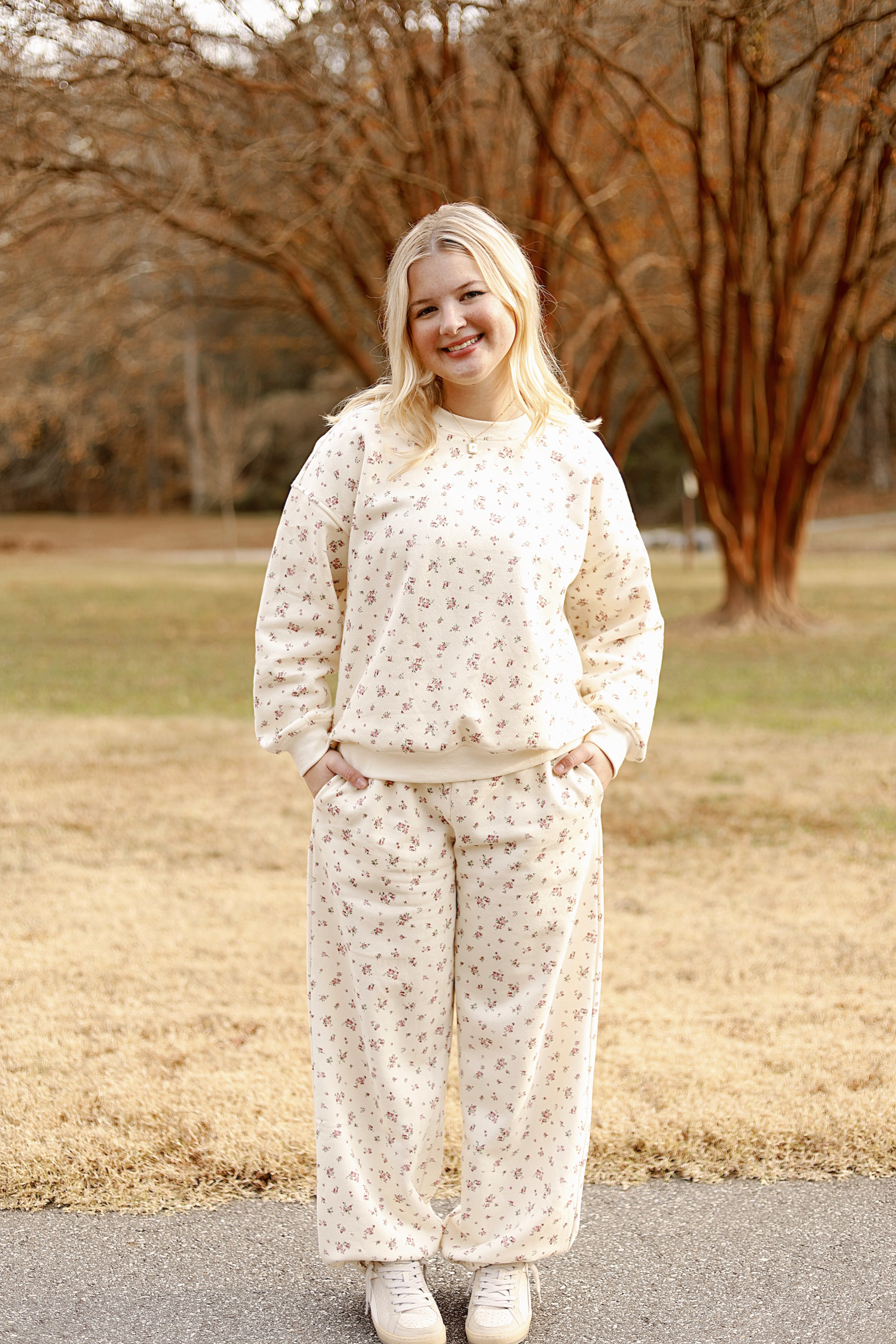 Embrace comfort with these stunning floral joggers that bring effortless style to your everyday wardrobe. Designed with a soft, breathable fabric and a flattering fit, they're perfect for lounging at home or running errands in style. Pair them with the matching sweatshirt to create a coordinated set that feels as good as it looks. Whether you're unwinding after a long day or heading out for a casual outing, these joggers deliver the perfect blend of comfort and fashion-forward flair.