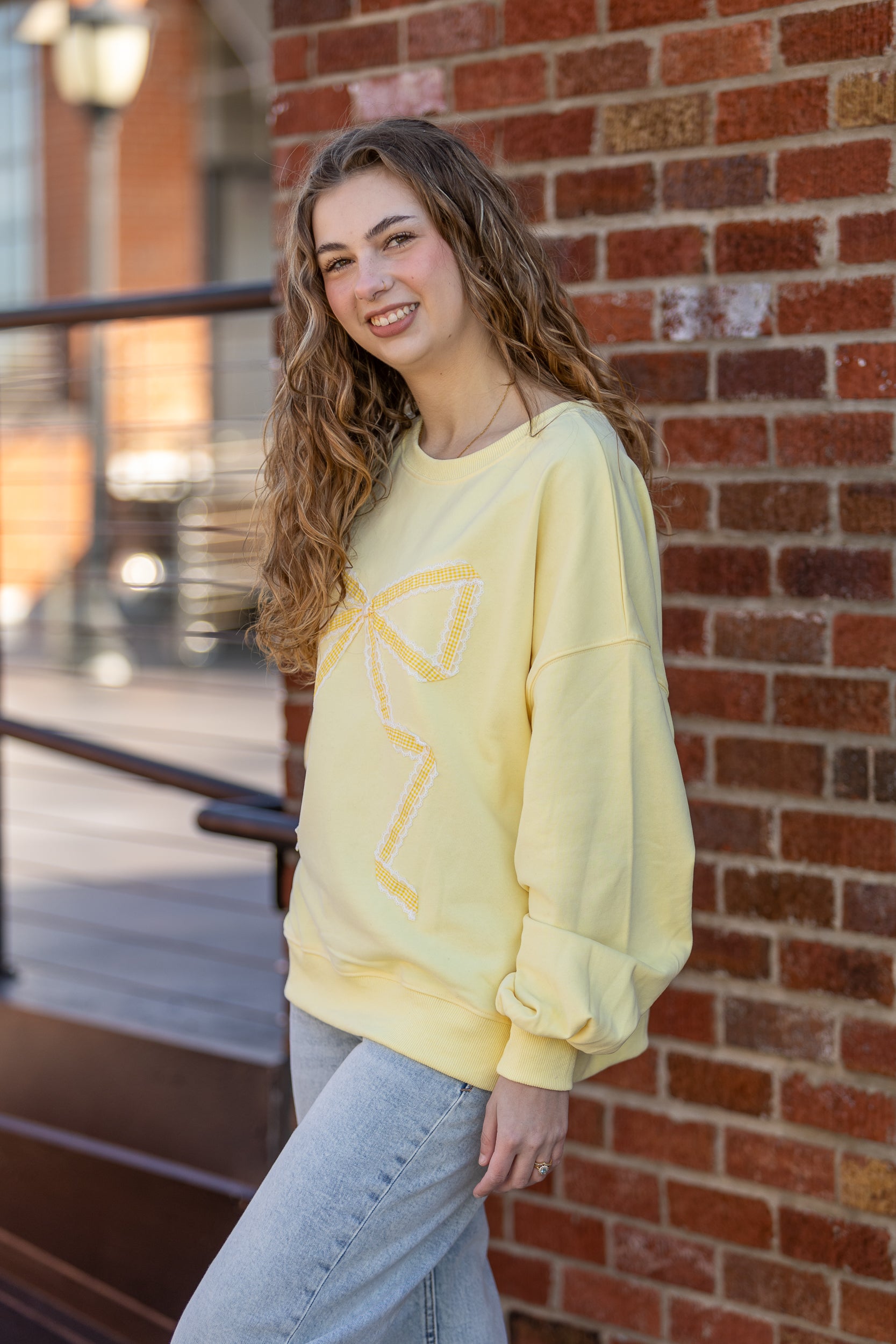 Embrace effortless charm with the Forever Yours Sweatshirt, featuring an adorable ribbon bow design that captures the essence of spring style. This cozy essential combines comfort with undeniable cuteness, making it the perfect layering piece for transitional weather. The delicate bow detail adds a touch of feminine elegance to your everyday wardrobe, while the soft fabric keeps you feeling wrapped in comfort all day long. Whether you're dressing up casual looks or keeping things relaxed, this sweatshirt brings that sweet, springtime vibe you've been craving.