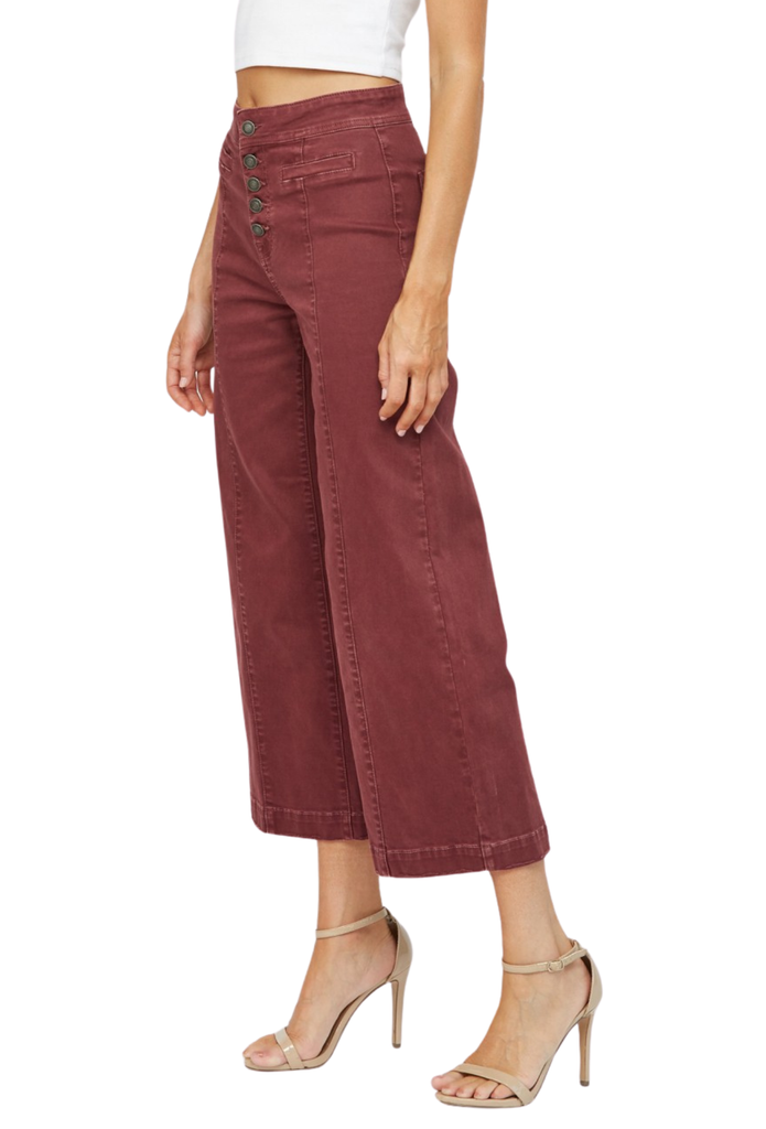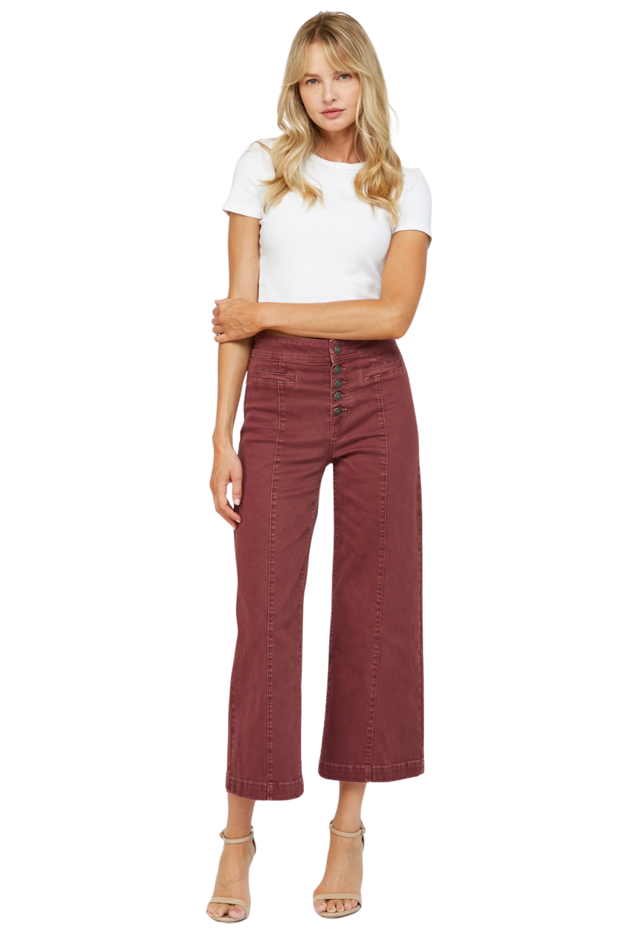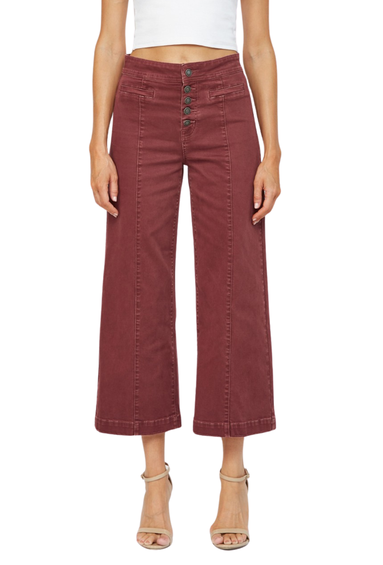 These Betty HR Cropped Wide Leg Jeans combine style and practicality with their high-waisted design that flatters your silhouette. Featuring three stylish buttons for a secure fit and convenient front pockets, they offer both fashion and function. Perfect for a confident, modern look that suits any occasion.