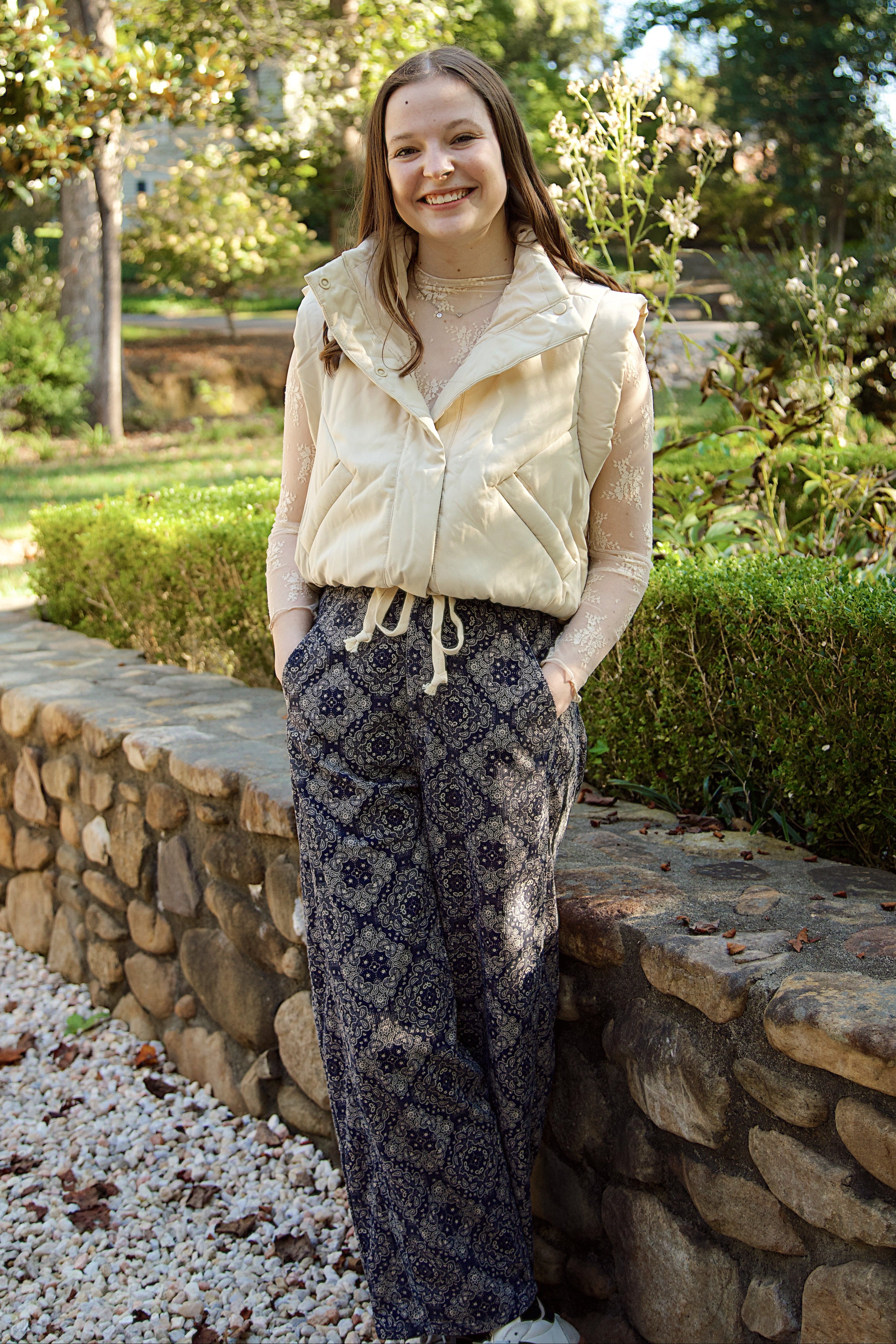 Elevate your casual wardrobe with these Dress The Part Corduroy Pants in classic navy. Crafted from soft corduroy fabric, they offer lasting comfort and subtle texture. The adjustable drawstring waistband ensures a perfect fit, making them ideal for all-day wear. Perfect for effortlessly combining style and comfort, these pants are your go-to choice for a polished yet relaxed look