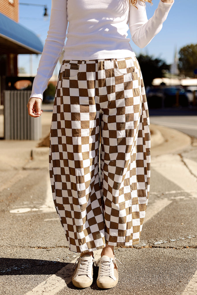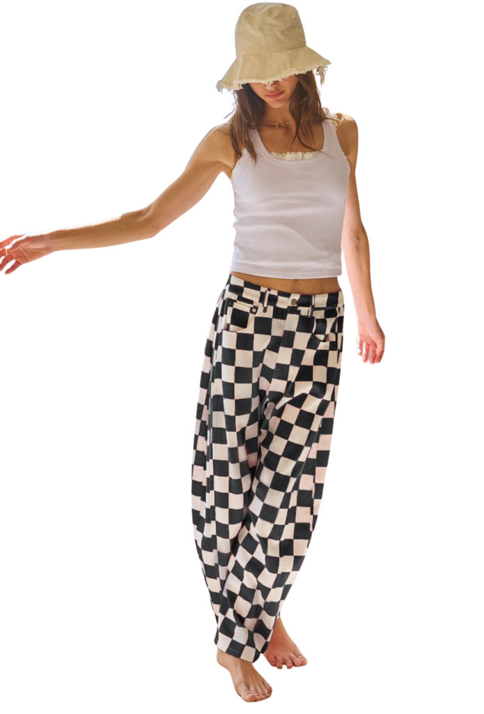 Skater Girl Checkered Barrel Jeans