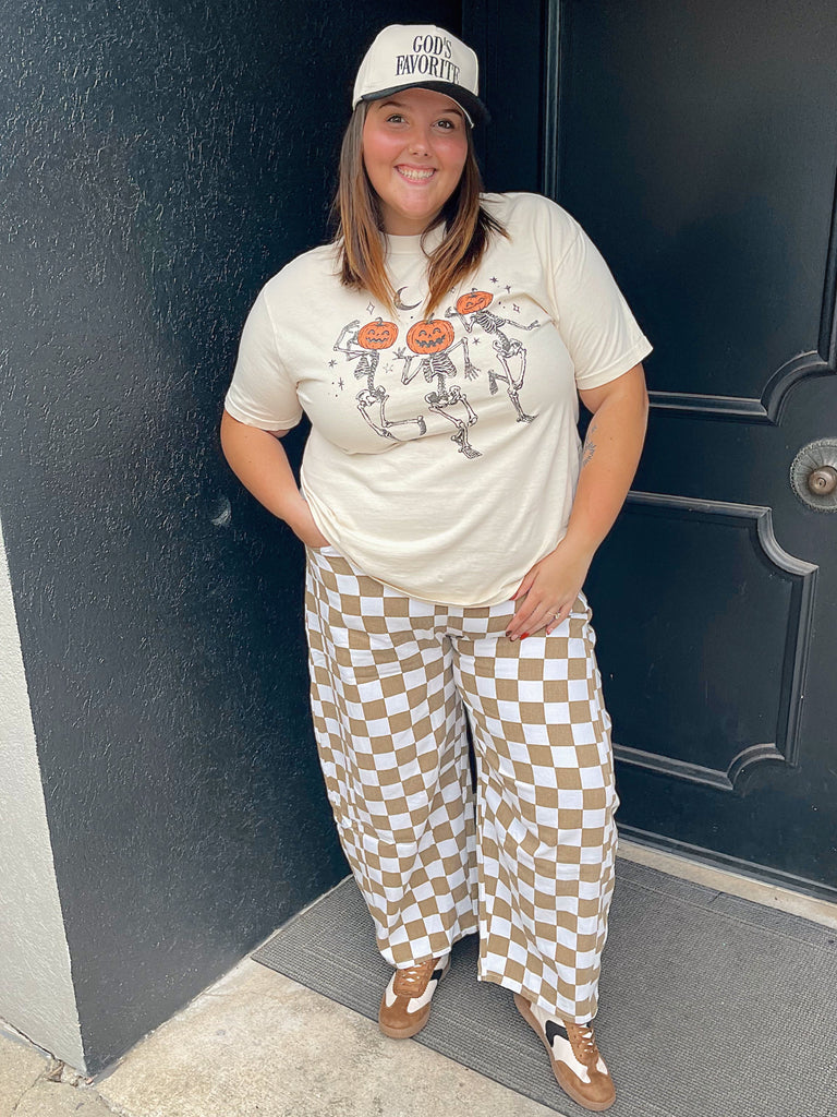 Embrace effortless style with these Skater Girl Checkered Barrel Jeans. Featuring a bold checkered pattern and trendy barrel silhouette, they offer a fashionable twist on casual wear. The elastic waist ensures a comfortable, flexible fit perfect for all-day wear. Elevate your everyday look with jeans that combine comfort and standout design.