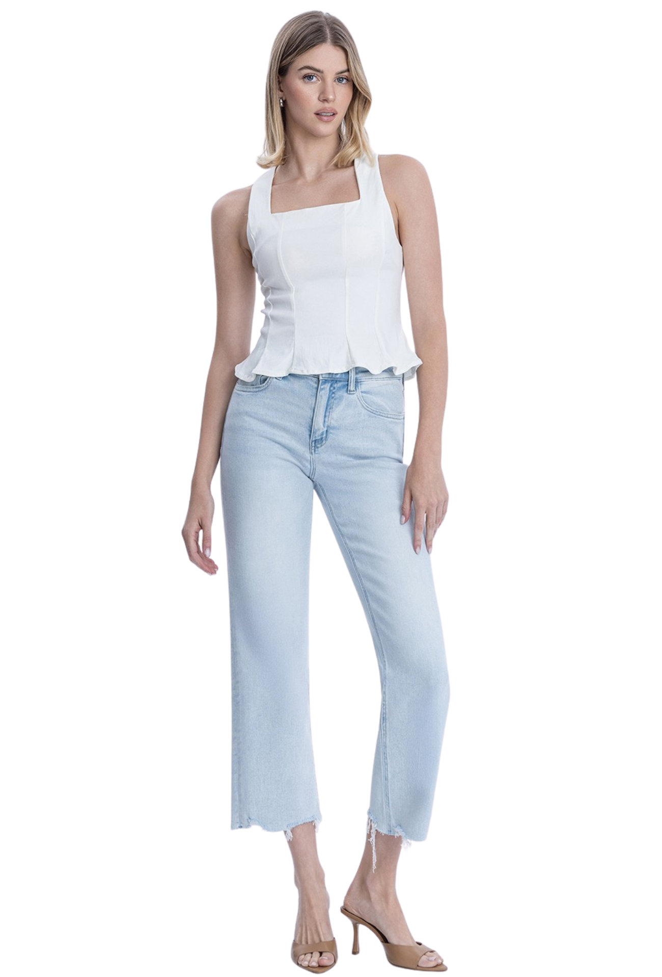 The Vervet Tricia HR Wide Jeans feature a stylish light color wash perfectly paired with wide-legged, distressed bottoms for an effortlessly cool look. Designed to offer comfort and a relaxed fit, these jeans bring a trendy edge to your wardrobe while maintaining everyday wearability. Ideal for making a fashion statement, they combine modern flair with casual ease.