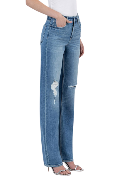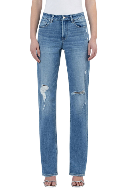 These Vervet Zoe High Rise Straight Leg Jeans offer a perfect blend of style and comfort with their medium wash and carefully distressed details. The high-rise fit enhances your silhouette while the straight leg cut provides a flattering, versatile look for any occasion. Whether dressing up or down, these jeans deliver a timeless, effortlessly cool vibe you'll reach for again and again.