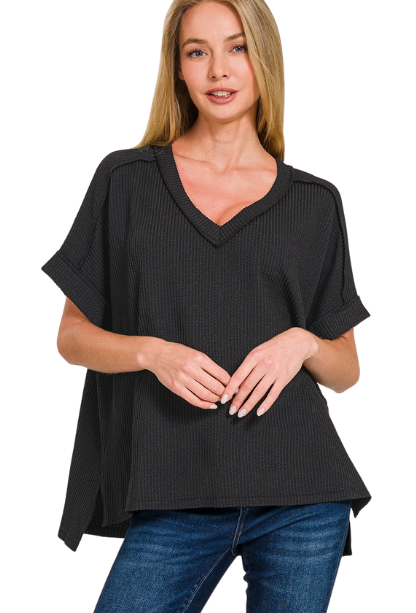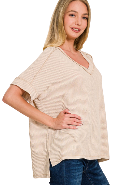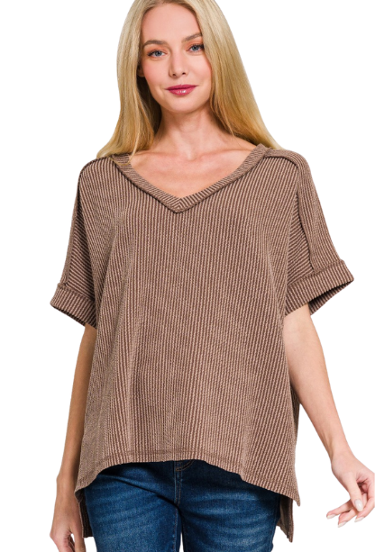 Feel confident and comfortable in our Ready For A Change Top! This ribbed, v-neck shirt features short sleeves and a casual style that can easily transition from day to night. Embrace a new look and take on the day with confidence!