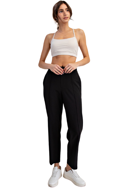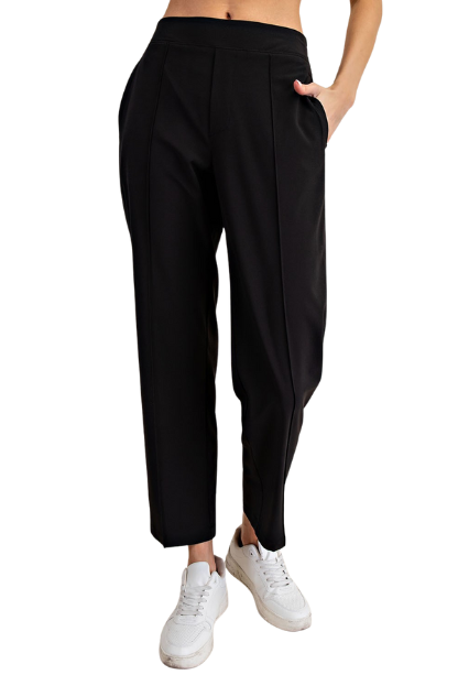Experience the perfect blend of comfort and style with the Big Moves Pleated Pants. Featuring an elastic waist for all-day ease, these slim-straight fit pants offer a sharp business casual look. Practical pockets add convenience without sacrificing sleekness, making them ideal for work or professional outings. Elevate your wardrobe with pants designed to move with you while keeping you polished.