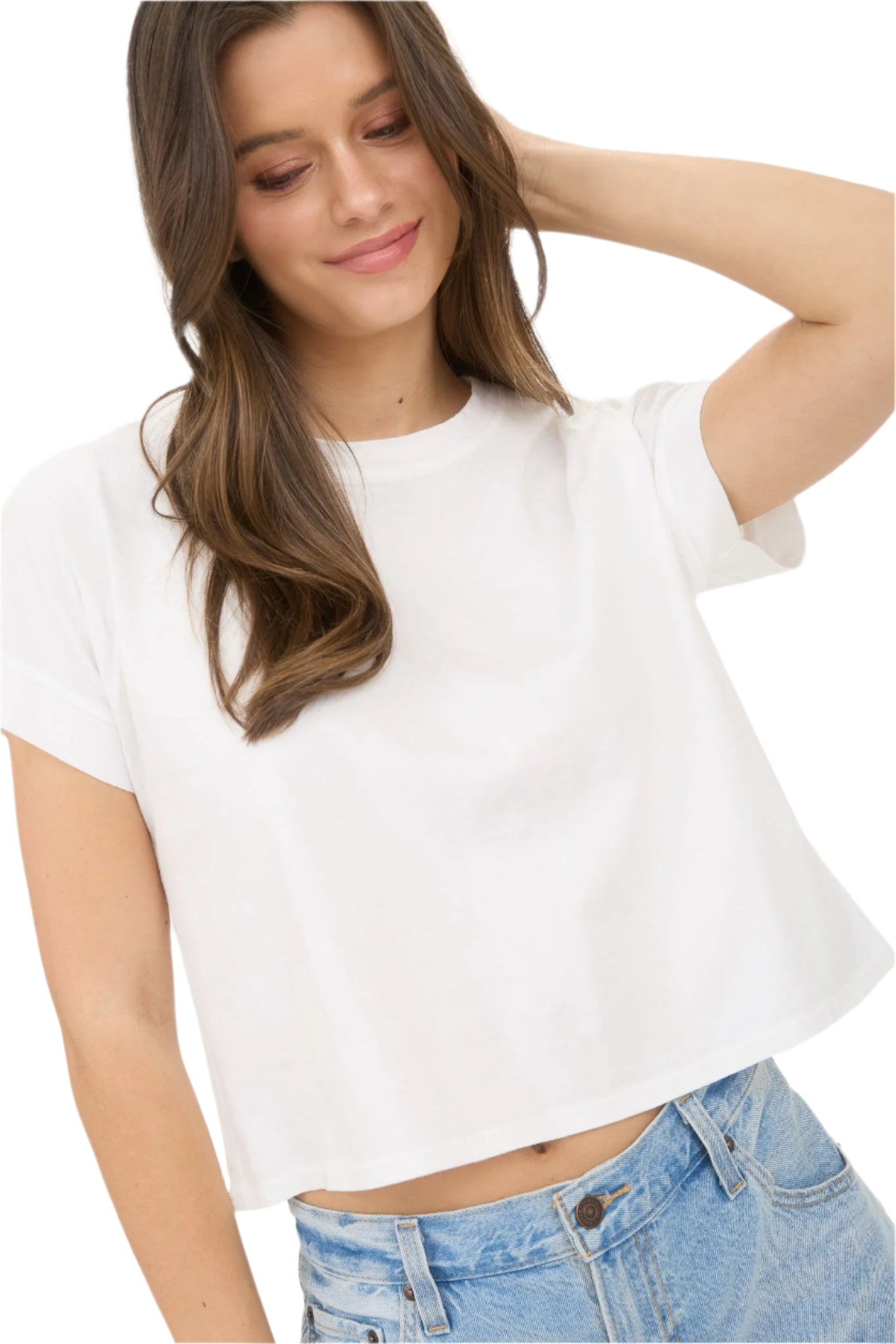 Embrace effortless style with the Live A Little Cropped Tee. Featuring a boxy fit and a cropped length, this basic essential pairs perfectly with high-waisted jeans or skirts for a modern, casual look. Crafted for comfort and versatile wear, it’s your go-to piece to add a subtle edge to everyday outfits.