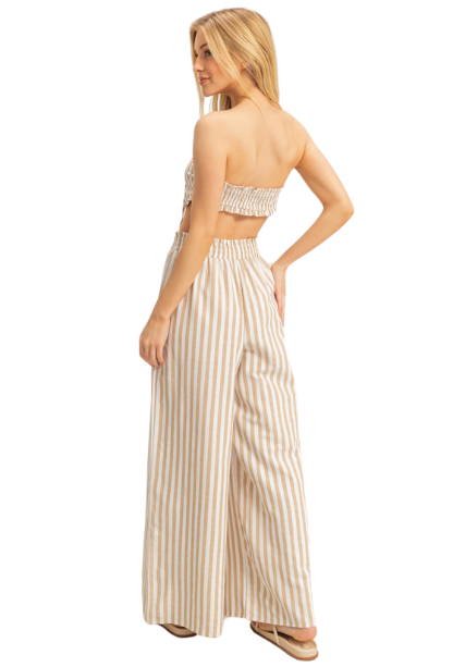Embrace effortless beach style with the Sail Away With Me Bandeau Top. Featuring a chic striped pattern, this top pairs perfectly with the matching pants for a coordinated, breezy look. Ideal for sunny days by the shore, it combines comfort and fashion to keep you cool and confident wherever your adventures take you.
