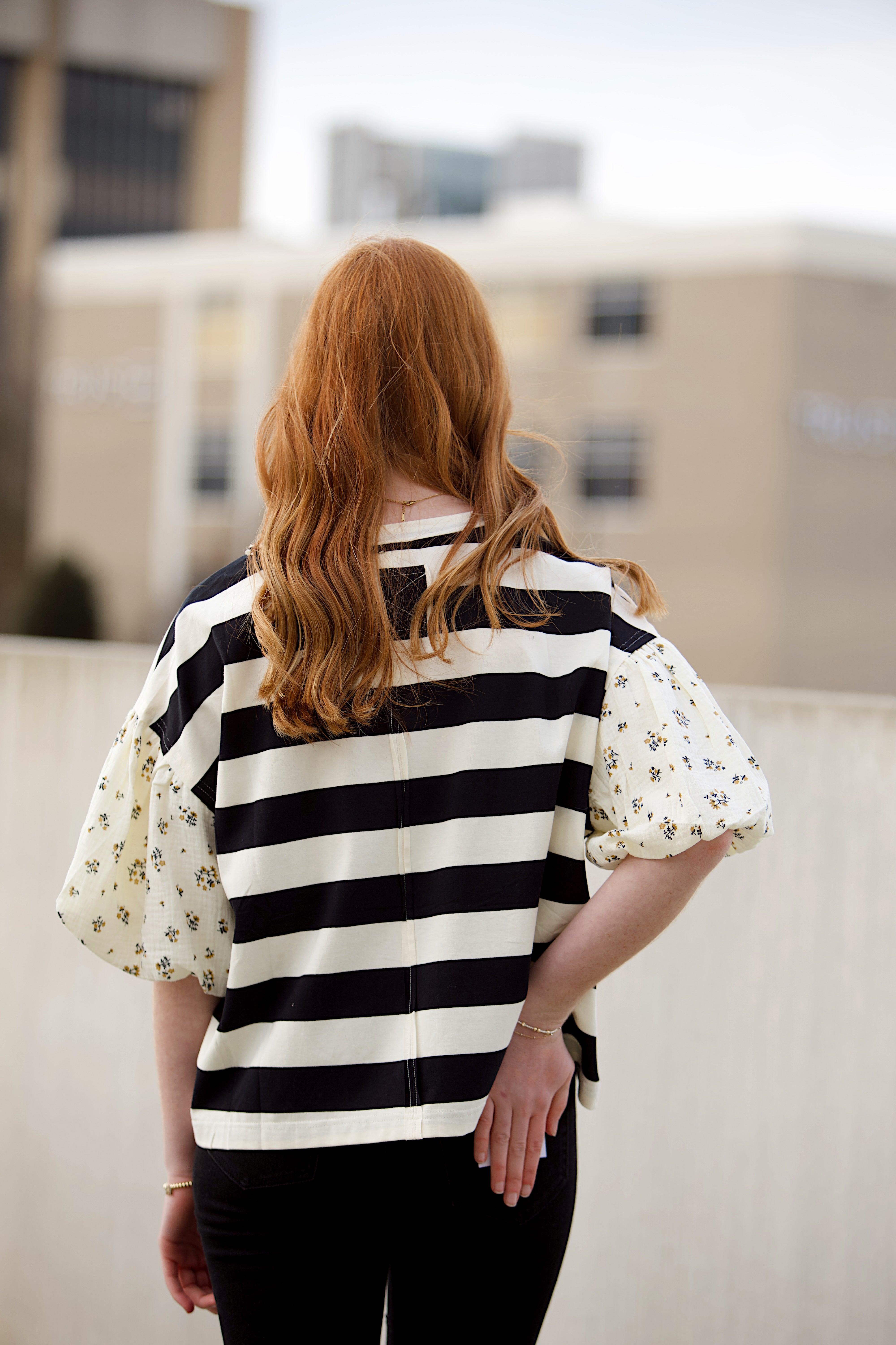 Elevate your fall wardrobe with the Can You Blame Me Top, featuring charming floral puff sleeves and a timeless striped pattern. This top blends feminine details with classic style, making it perfect for layering on crisp autumn days. Embrace cozy elegance that effortlessly transitions from casual outings to stylish gatherings.