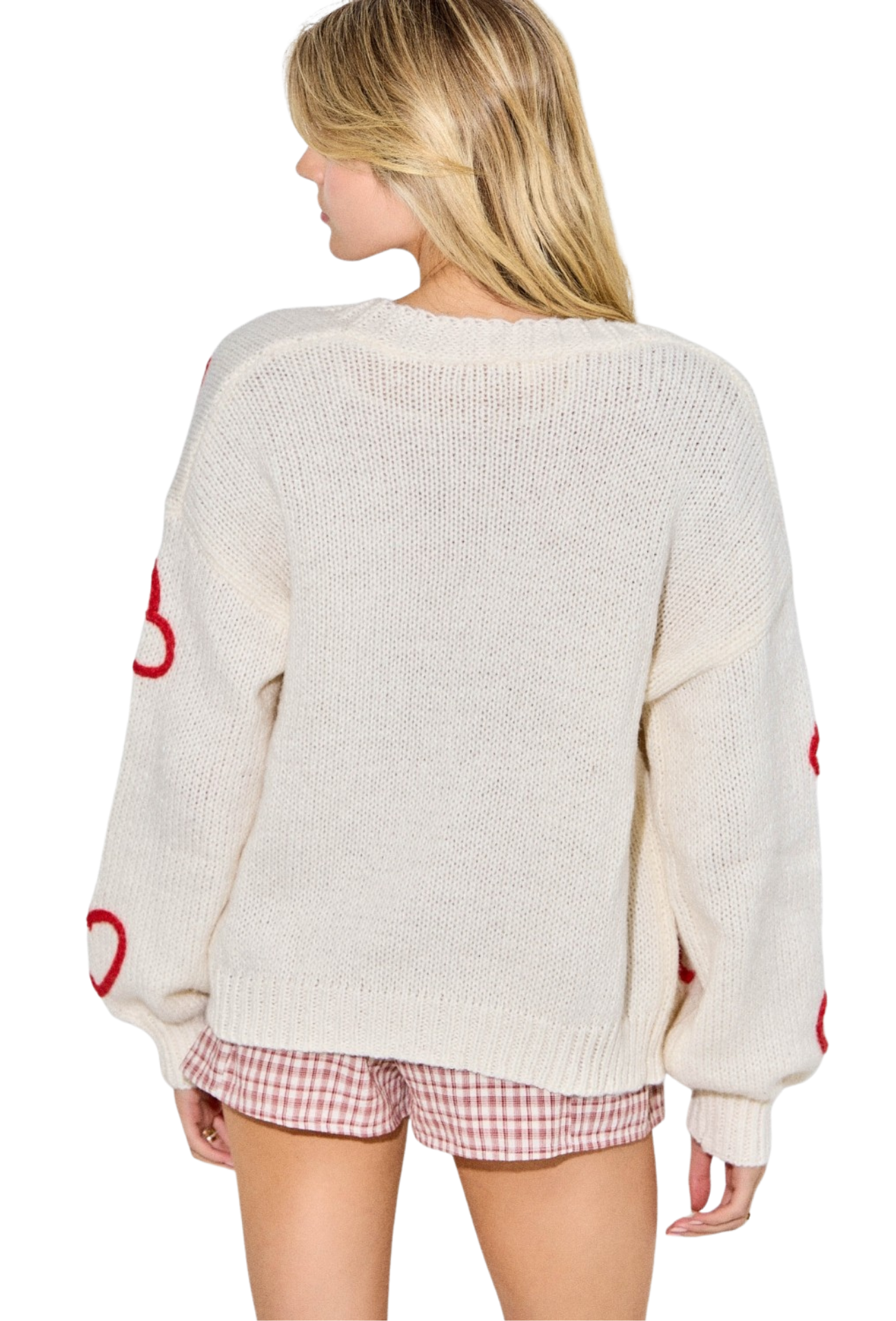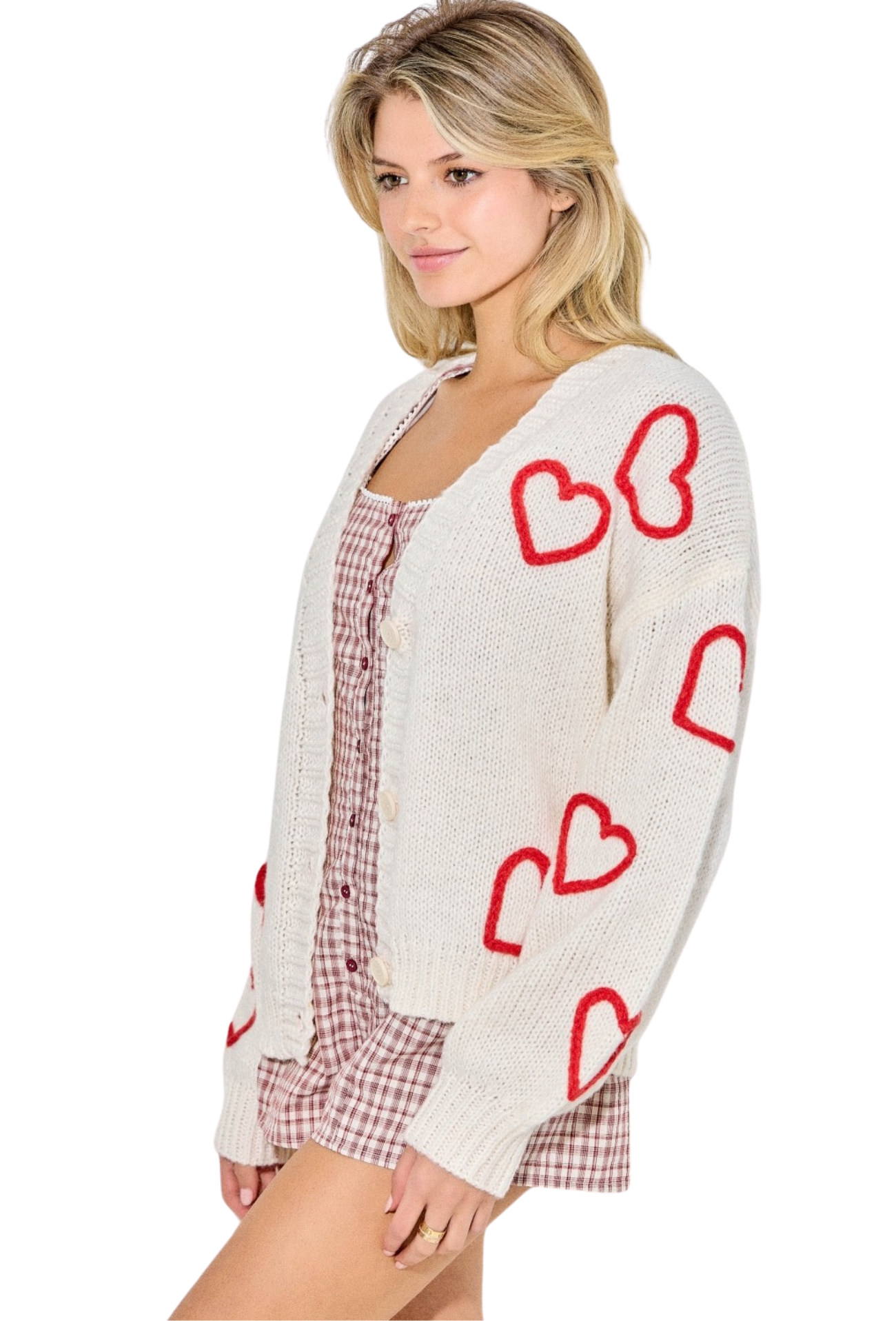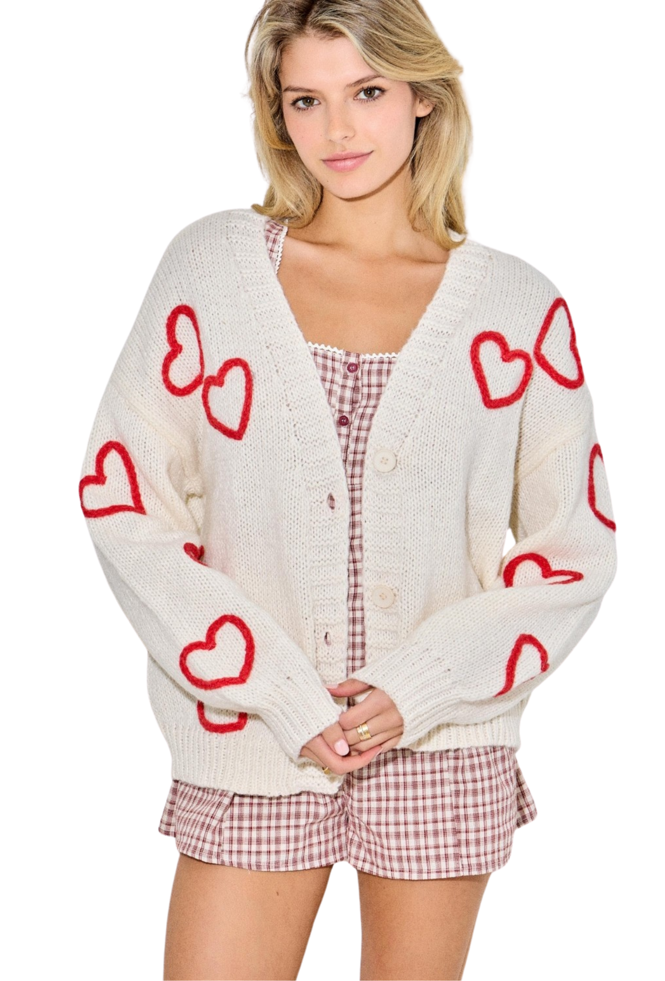 Wrap yourself in warmth and style with the Do It With Love Cardigan. This charming knit features an adorable heart design that adds a touch of sweetness to any outfit, while the convenient button closure makes layering effortless. Perfect for cozy days or casual outings, this cardigan combines comfort with heartfelt appeal. Whether you're dressing up a simple tee or throwing it over your favorite dress, this versatile piece becomes an instant wardrobe essential that celebrates doing everything with love.
