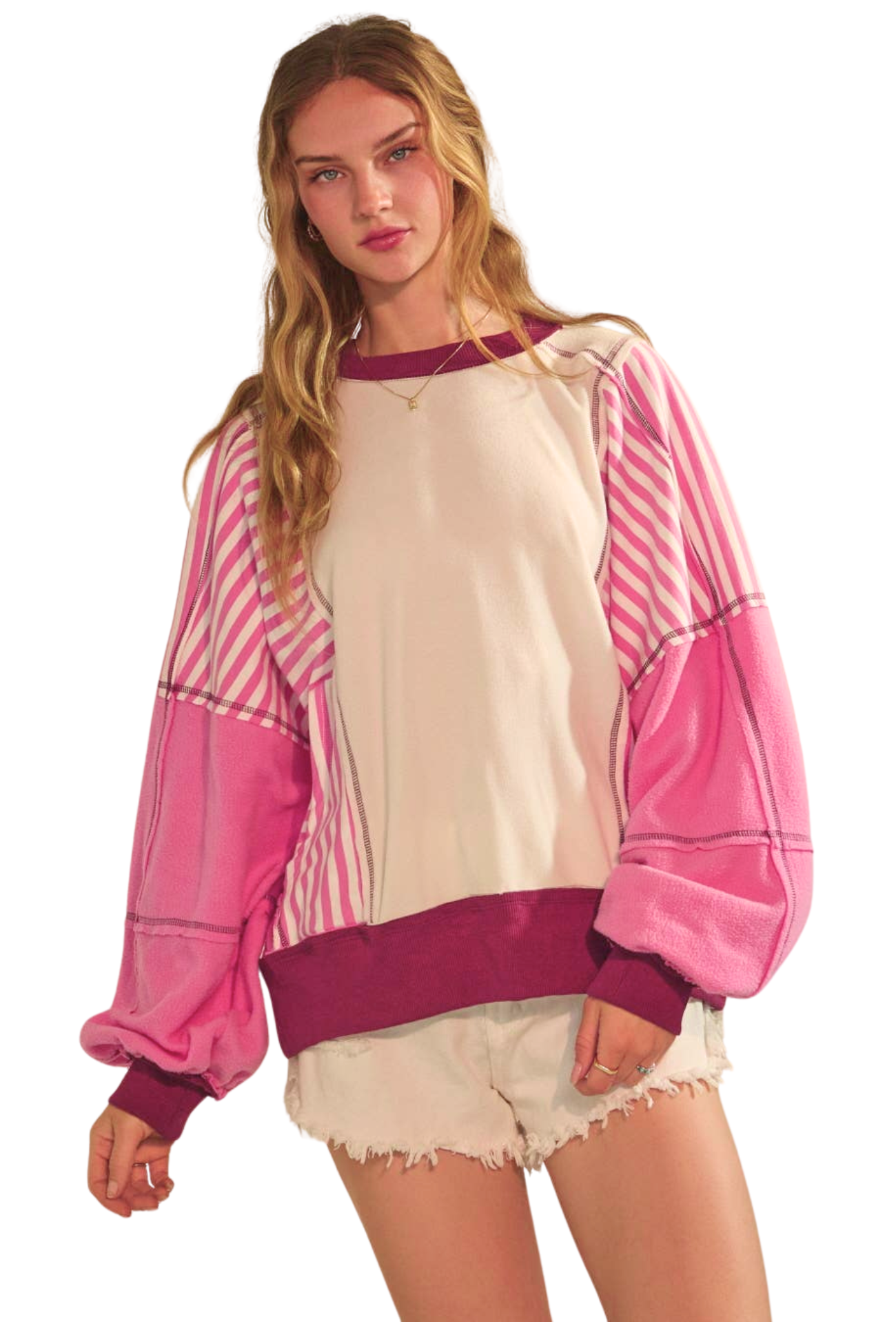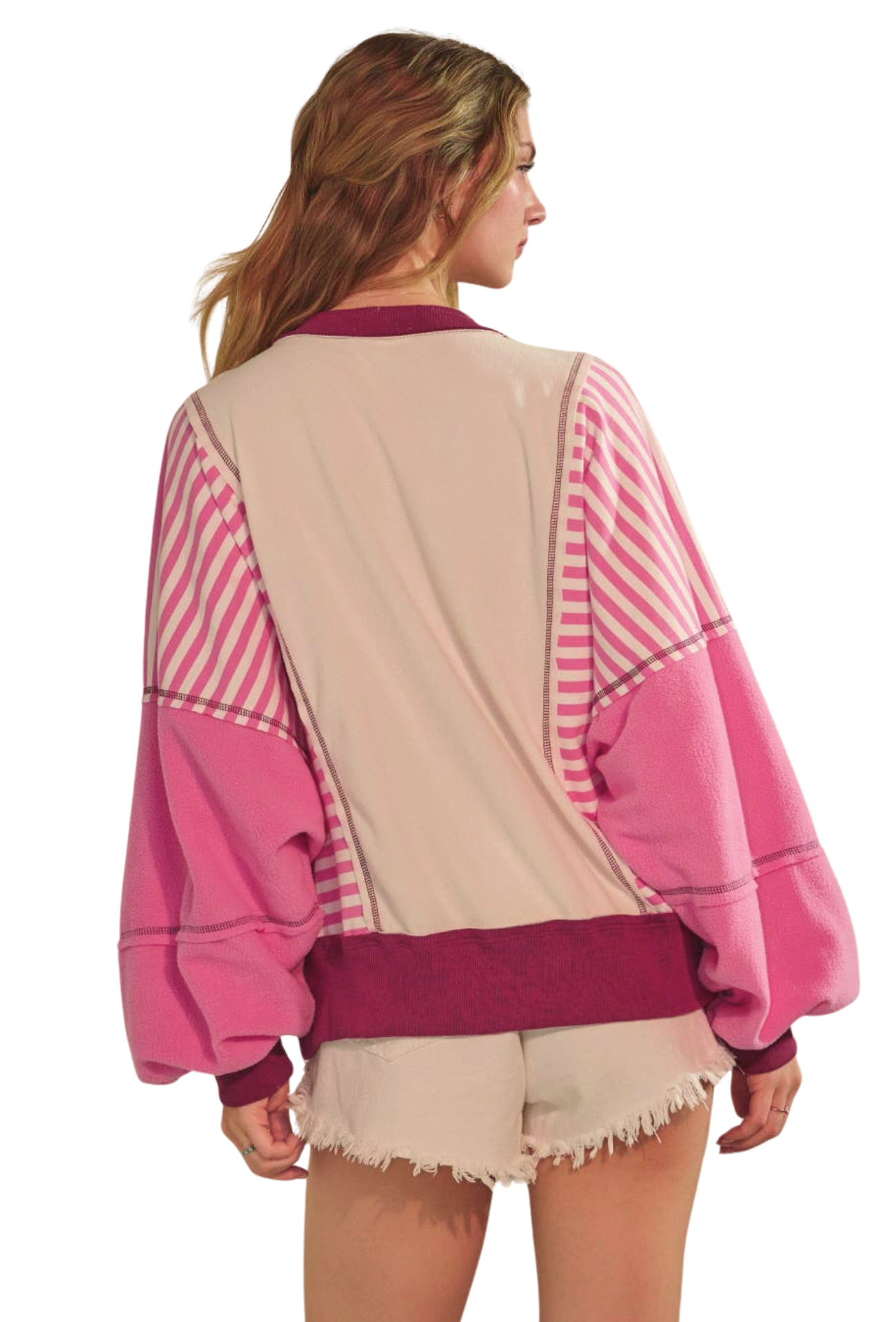 Experience cozy warmth and standout style with the Hopes Are High Sweatshirt. Featuring a high neck design for added comfort and protection against chilly days, this sweatshirt showcases a unique striped patchwork pattern that adds a fresh, eye-catching twist to your casual wardrobe. Perfect for layering or wearing on its own, it combines comfort and fashion effortlessly to keep you looking and feeling great wherever you go.