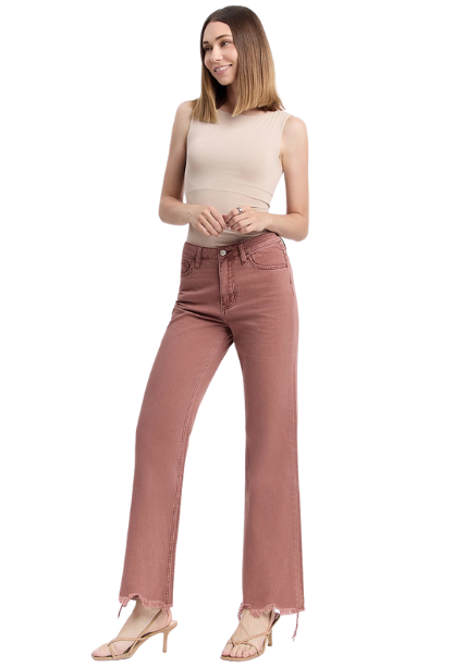 These Vervet Tiffany Vintage Flare Raw Hem Jeans feature a trendy raw hem and a flattering high-rise fit, making them your perfect fall staple. Designed to effortlessly elevate your seasonal wardrobe, they blend vintage flair with modern style for versatile wear from day to night.