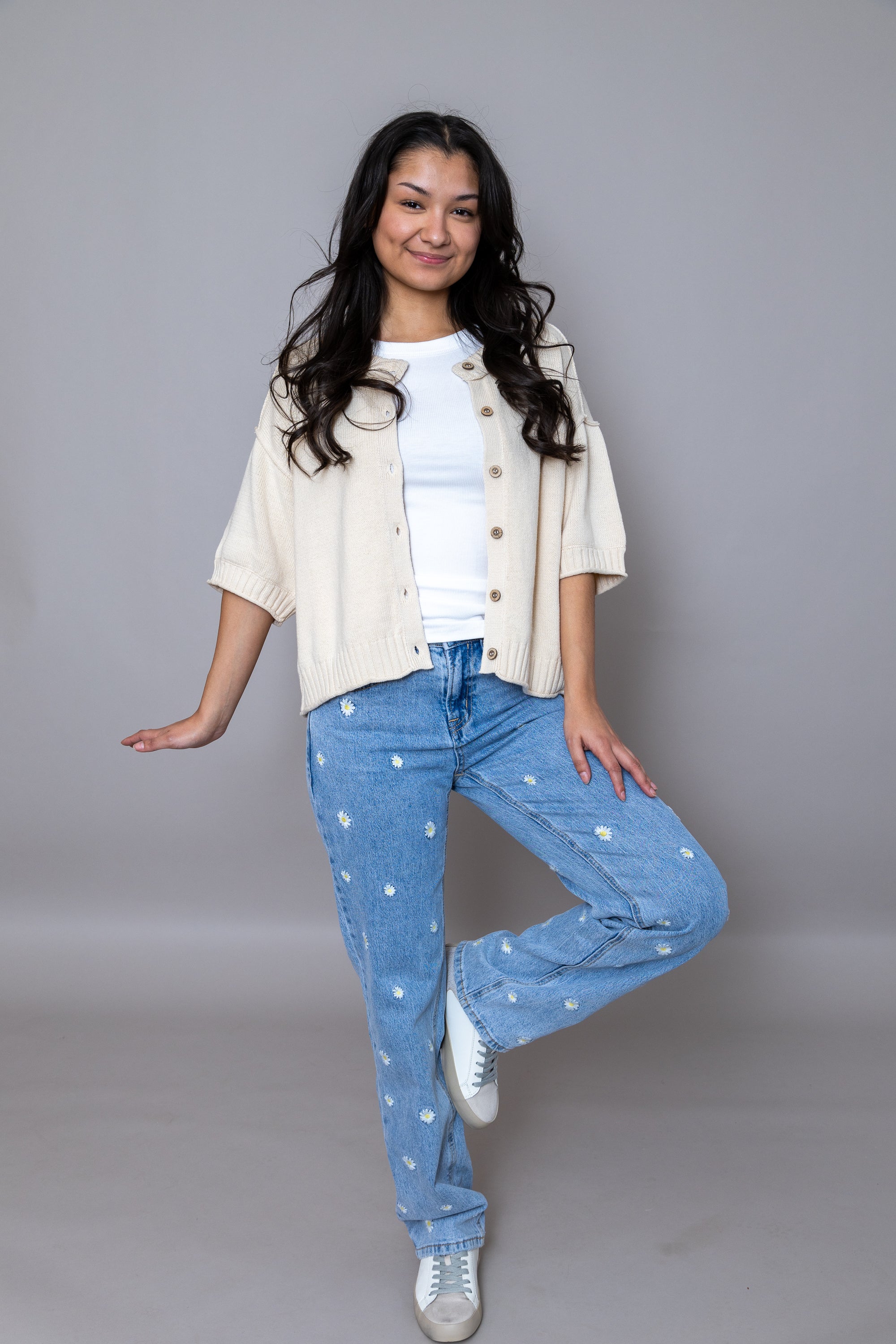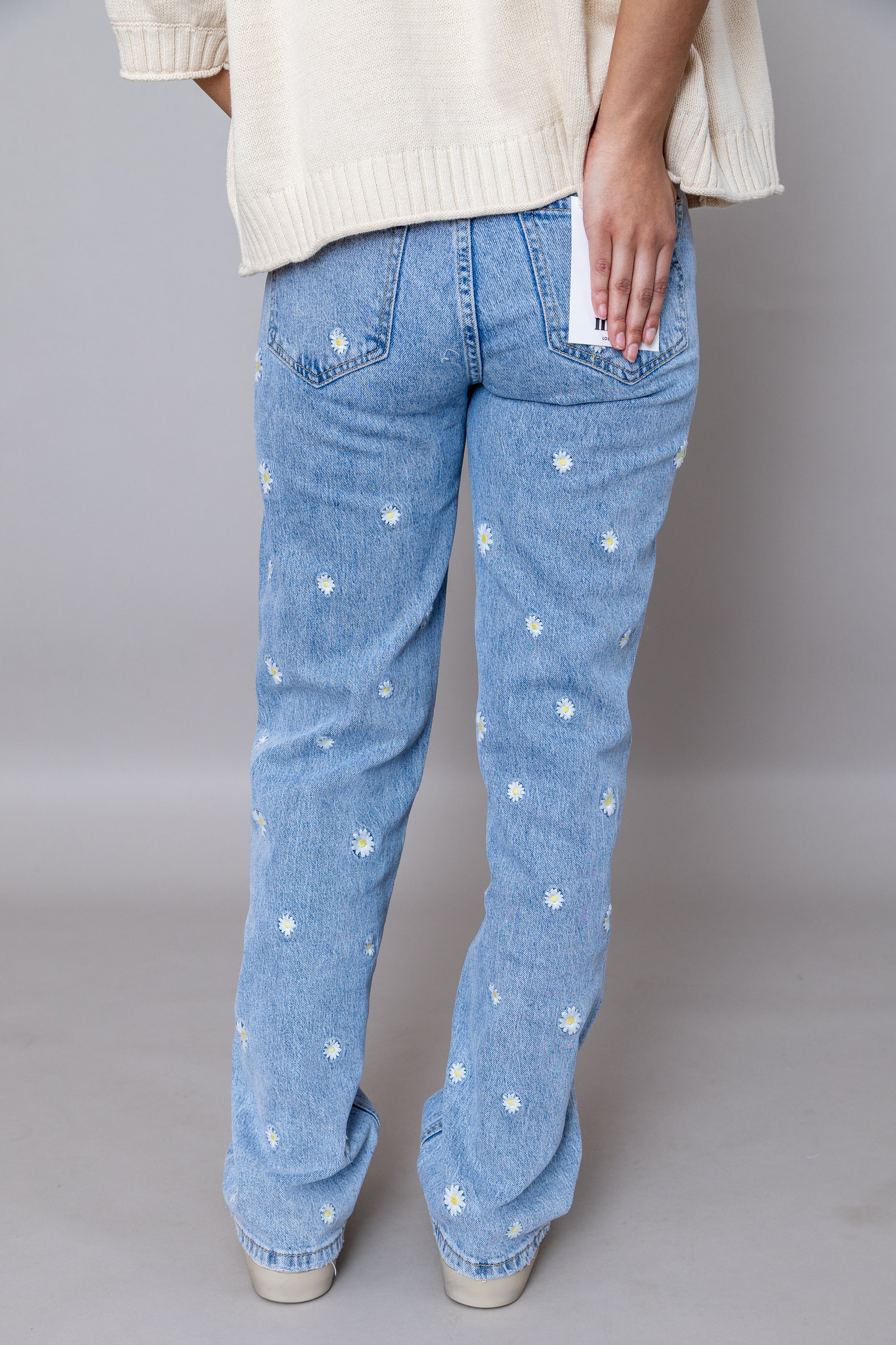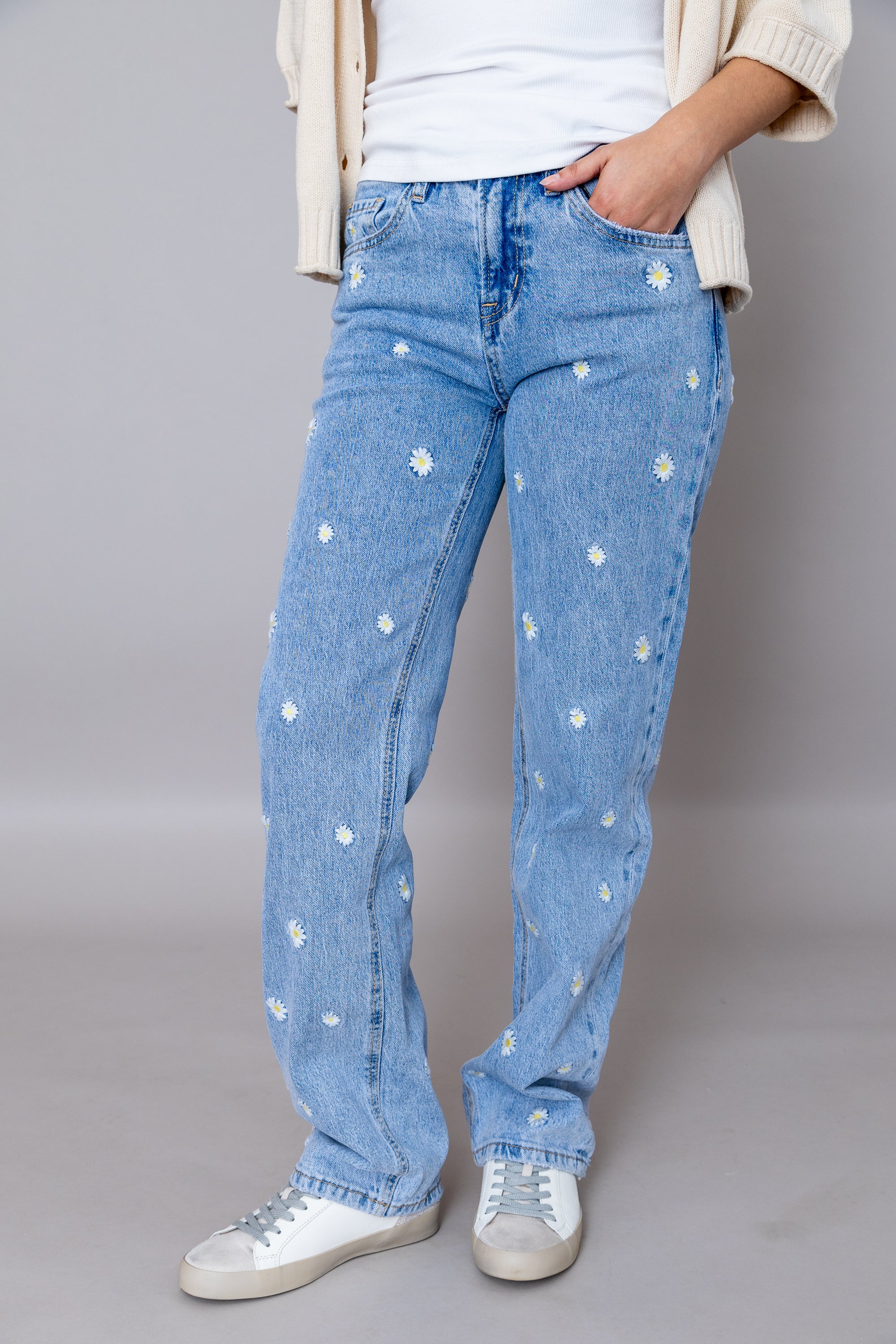 Elevate your spring wardrobe with the Clara HR Straight Leg Embroidered Jeans—the perfect blend of timeless style and playful charm. These high-rise jeans feature delicate daisy floral embroidery that adds a whimsical touch to your everyday look. The classic straight-leg silhouette flatters every figure while the elevated waistband creates a polished, elongated appearance. Versatile enough for casual outings or dressed-up occasions, these jeans are an essential piece that brings effortless elegance and personality to any outfit. Embrace the season in style!
