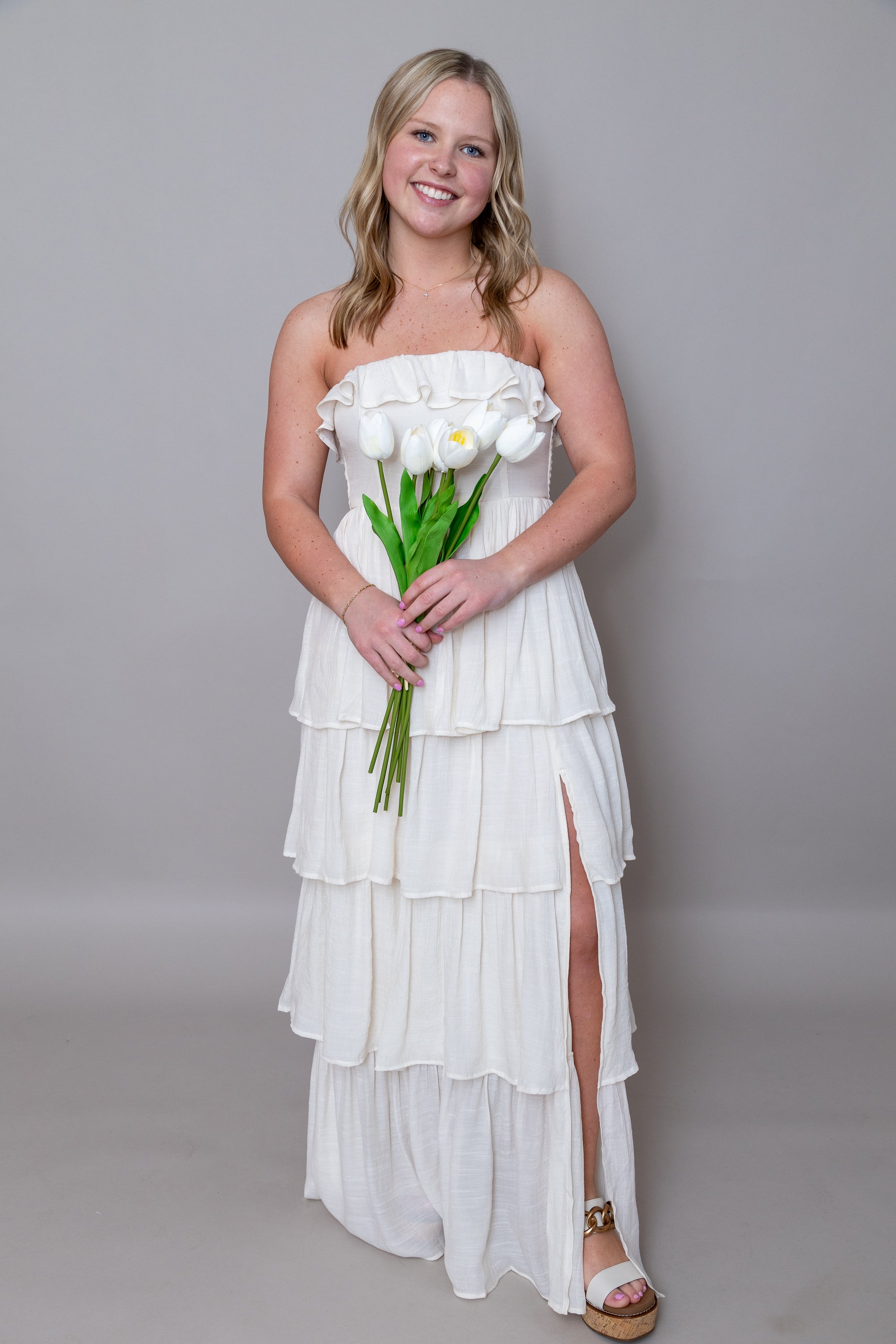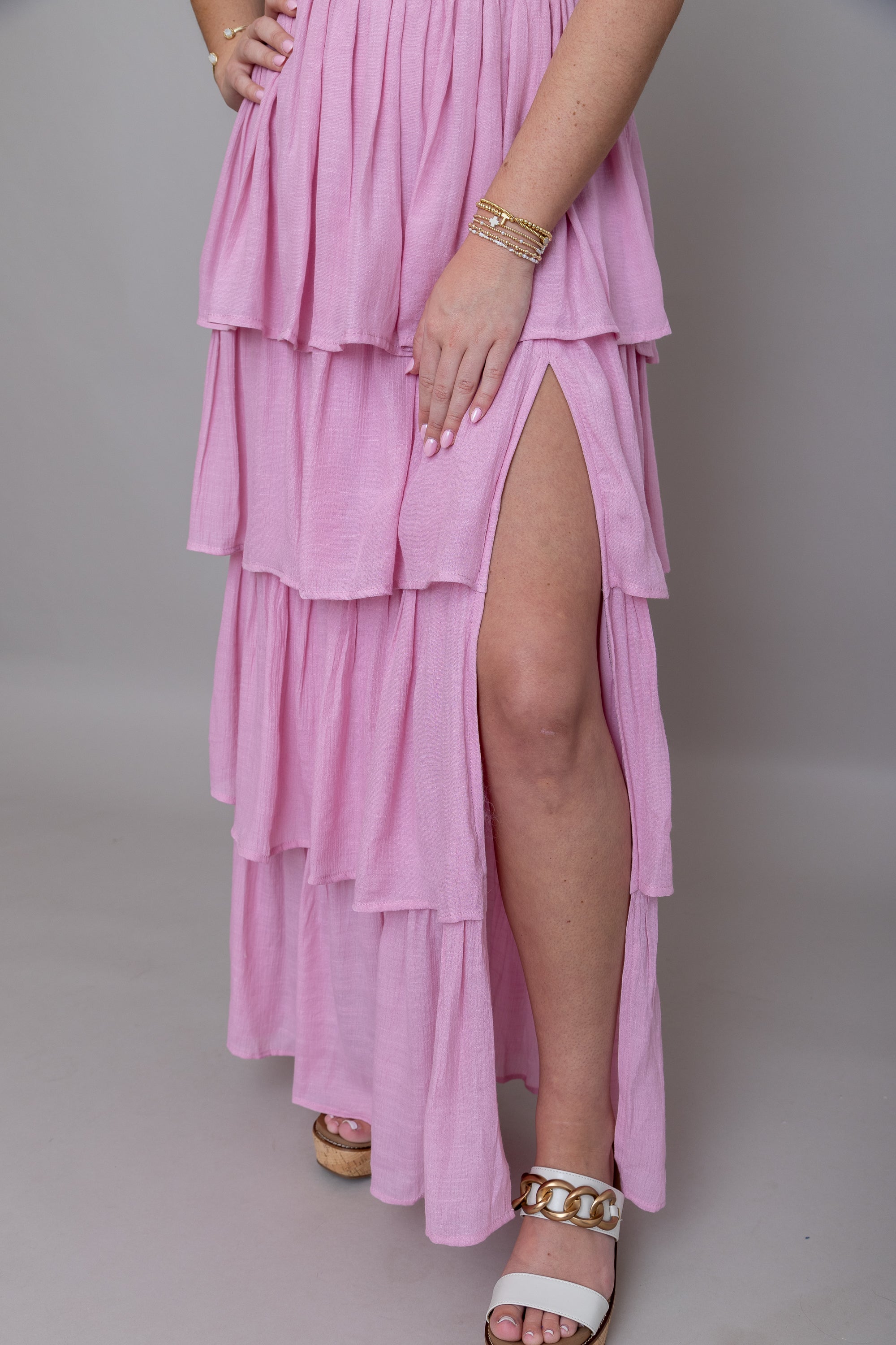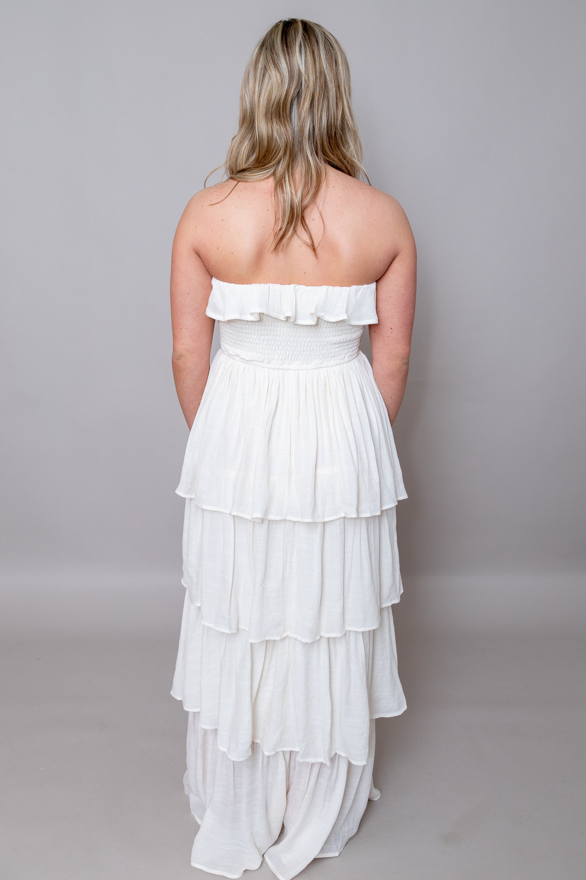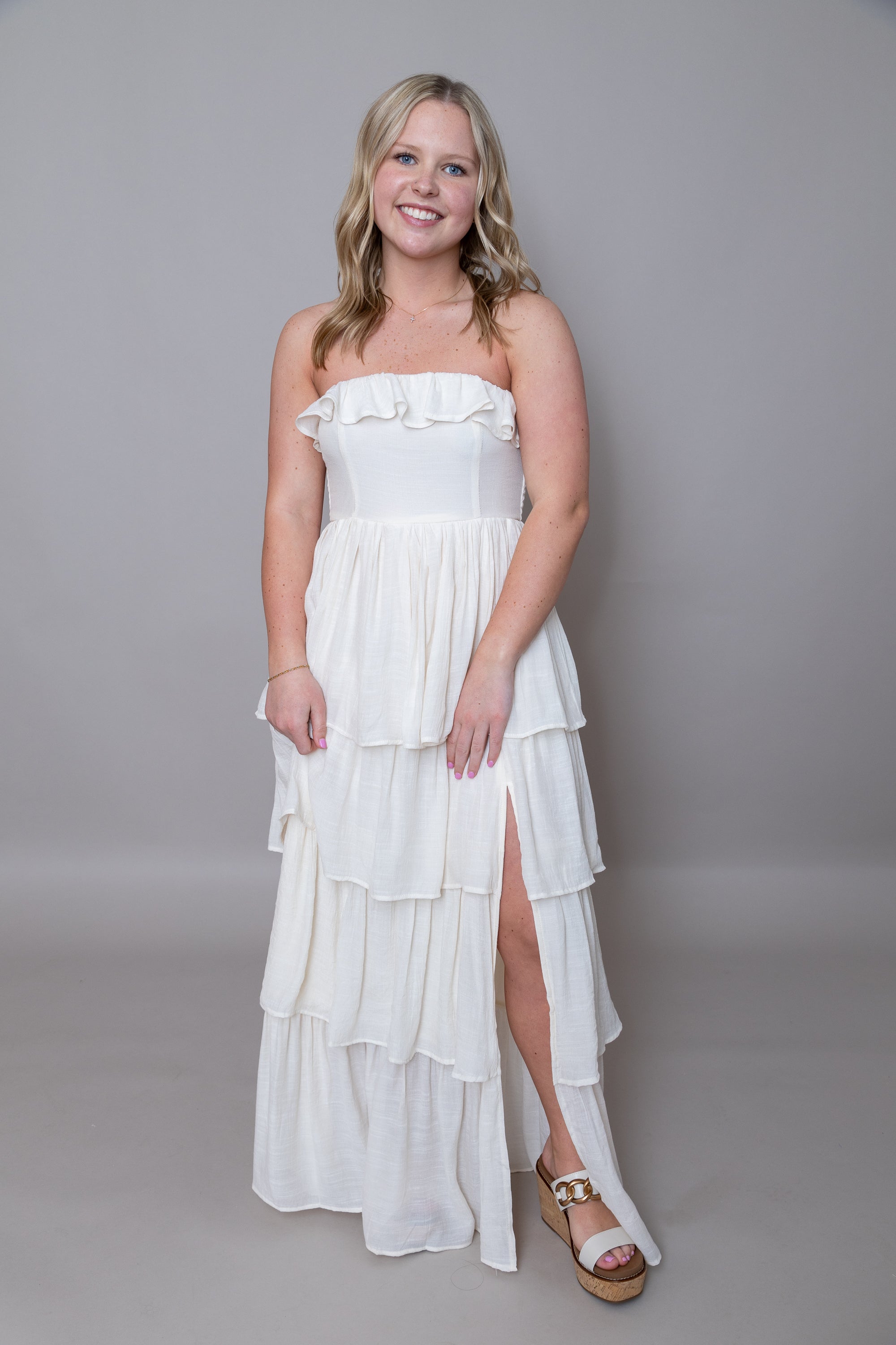 Feel the effortless beauty of the Be My Guest Strapless Maxi Dress! The tiered silhouette creates beautiful dimension while the flowing fabric moves gracefully with every step. A daring leg slit adds just the right amount of allure, balancing elegance with playful charm. Perfect for weddings, date nights, or any event where you want to feel confident and captivating. This dress proves that timeless style never goes out of fashion!