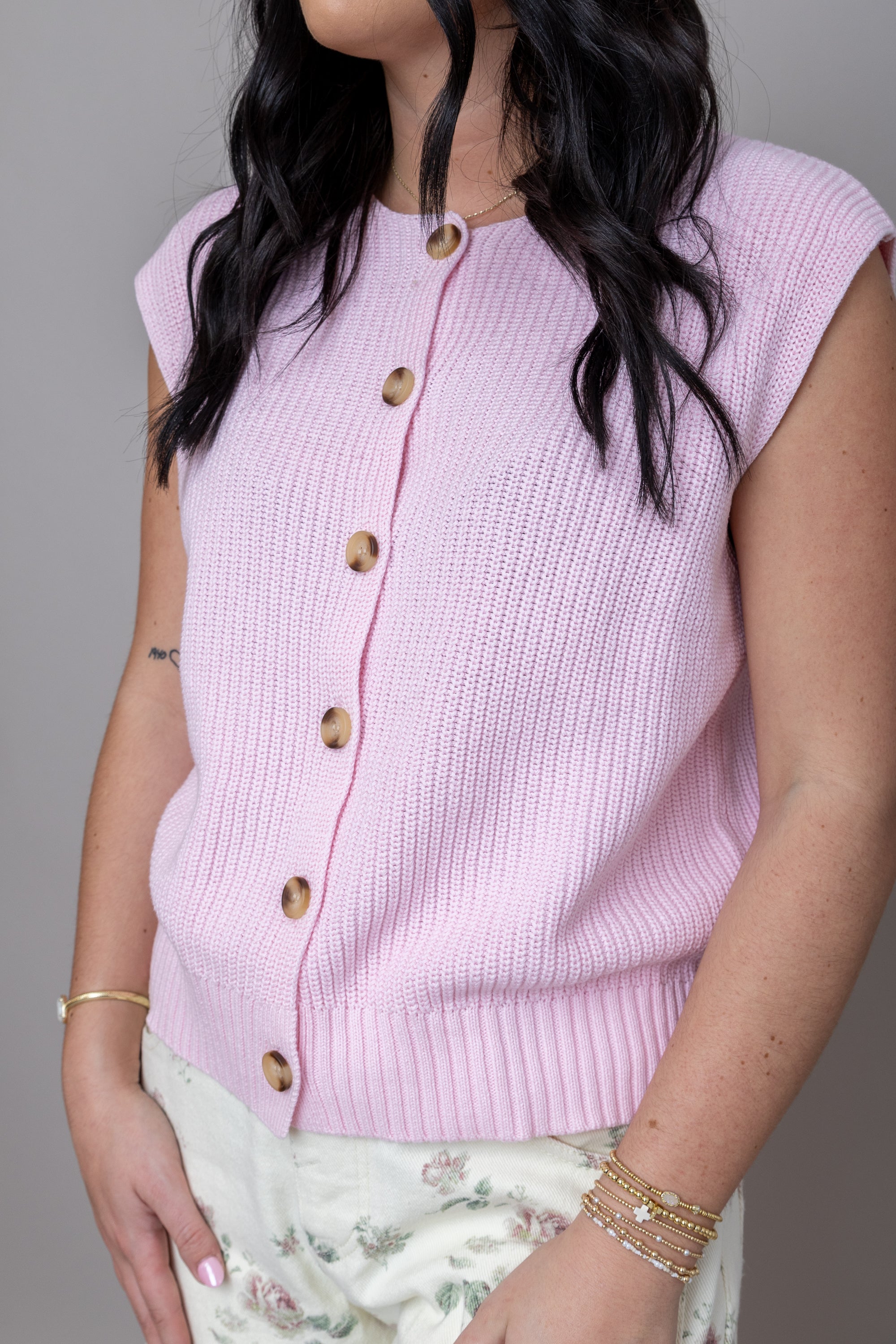 Embrace timeless charm with this whimsical sweater vest, crafted from soft knit fabric that feels as good as it looks. Featuring a classic button closure and sleeveless design, it's the perfect layering piece for effortless style. Simple yet playful, this vest pairs beautifully with any wardrobe, adding a touch of nostalgic elegance to your everyday looks!