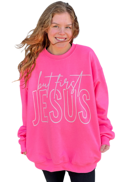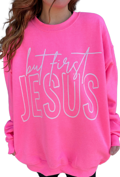 Wrap yourself in faith and fashion with our But First Jesus Sweatshirt. This eye-catching graphic design combines spiritual devotion with contemporary style, creating the perfect statement piece for your casual wardrobe. Cozy enough for everyday wear while boldly expressing what matters most to you. A must-have addition that elevates both your outfit and your spirit.