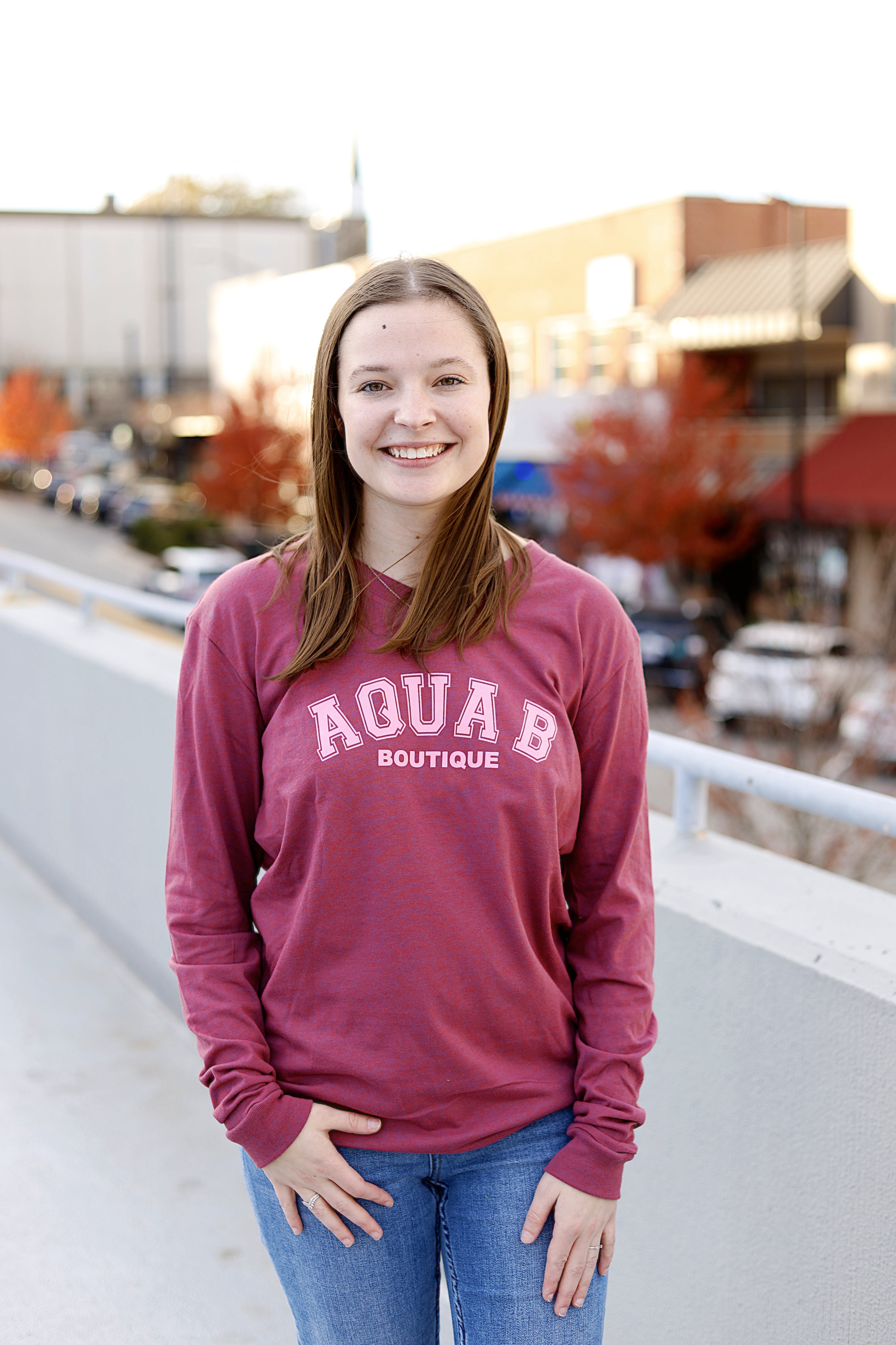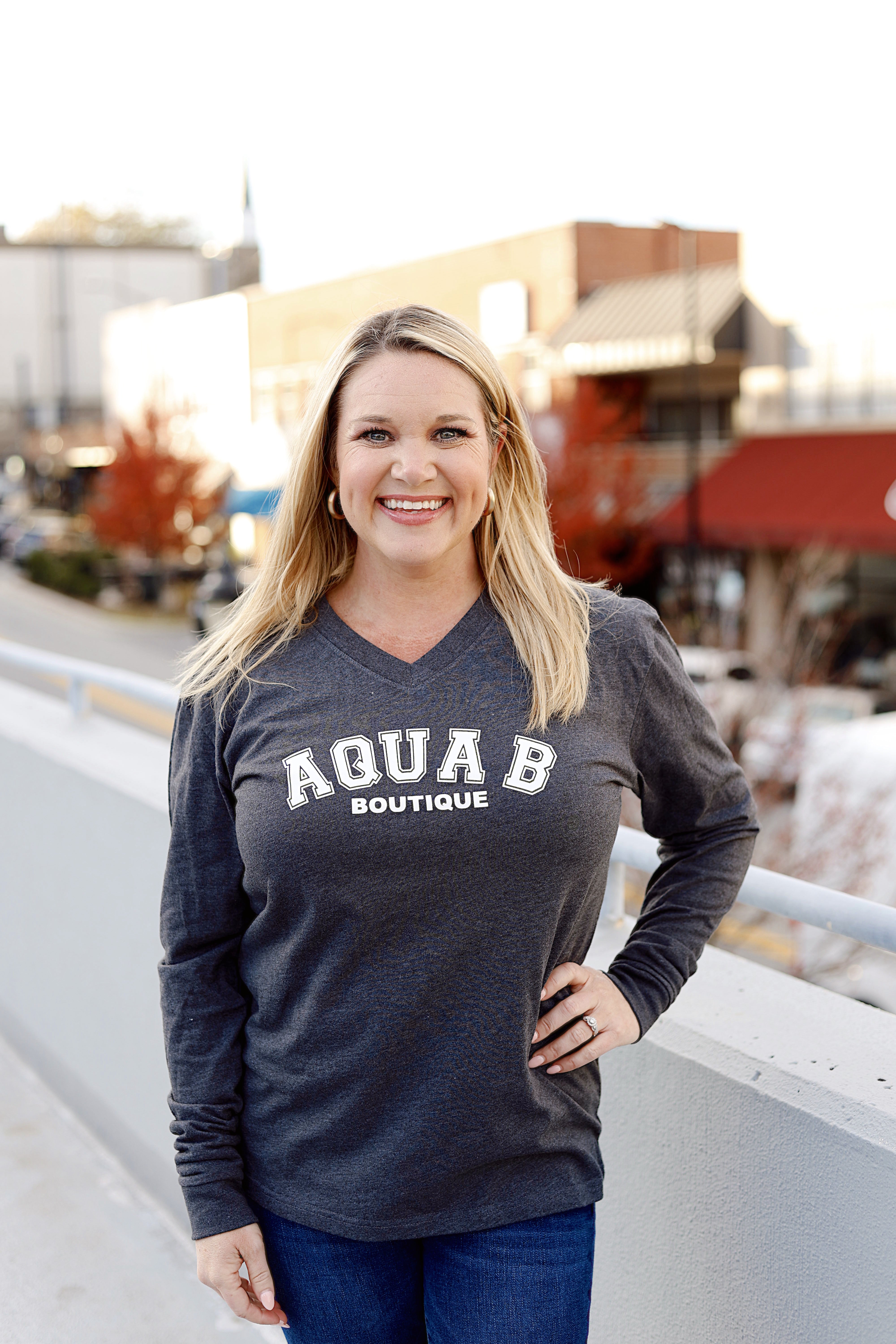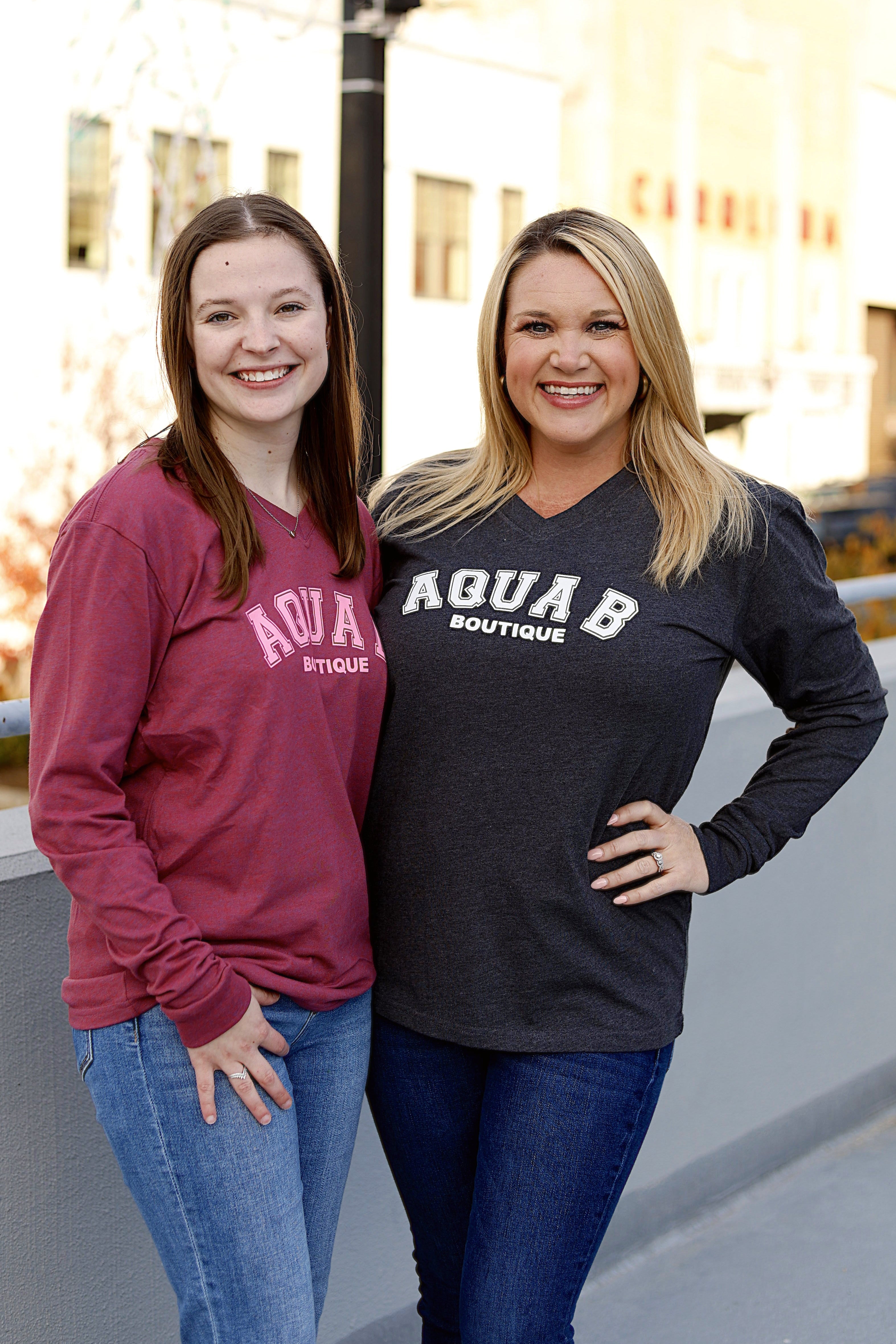 Experience effortless style with the Aqua B V-Neck Long Sleeve Tee. Featuring a flattering v-neck cut and a bold graphic showcasing the boutique logo, this tee combines comfort with standout design. Perfect for layering or wearing on its own, it adds a fresh, fashionable edge to any casual outfit. Elevate your wardrobe with a piece that speaks to your unique style and boutique charm.