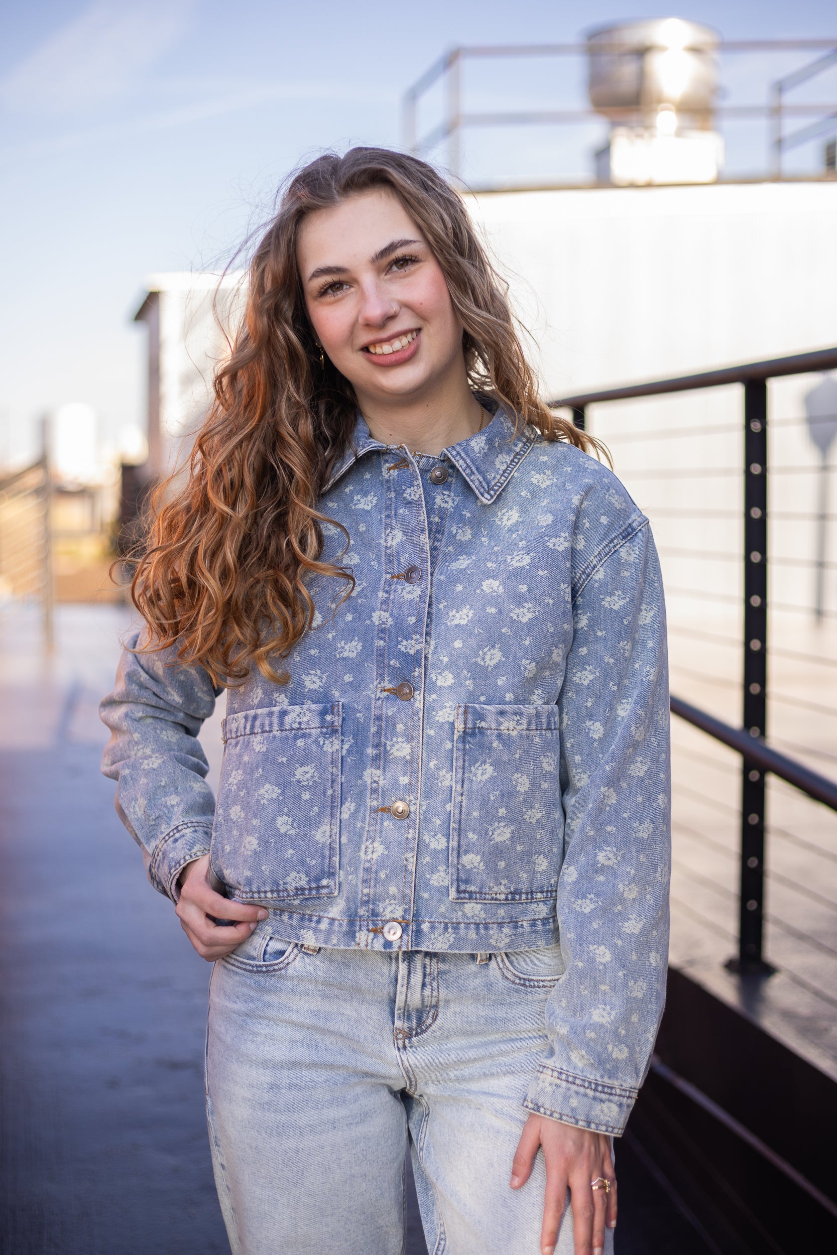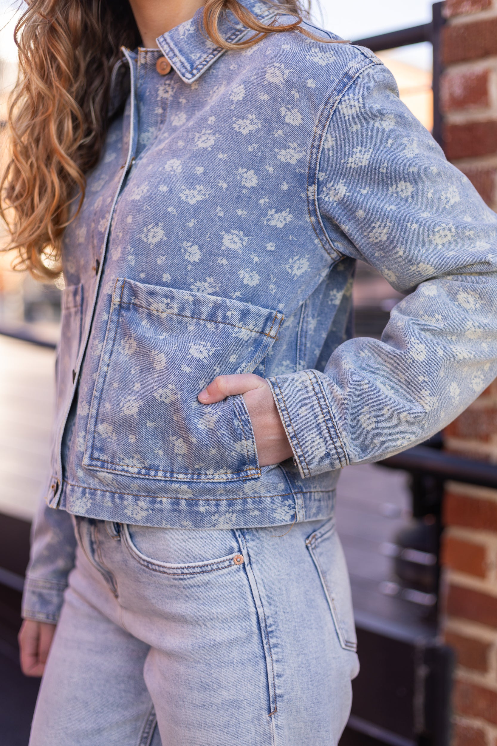 The What's Next Jacket brings effortless style to your everyday rotation. Crafted in classic denim with a charming floral design, this semi-cropped boxy silhouette offers the perfect balance of comfort and edge. Its relaxed fit makes it ideal for layering over dresses, tees, or tanks, giving you endless outfit possibilities. Whether you're dressing up or keeping it casual, this versatile piece transitions seamlessly from season to season. Make it your go-to jacket for that coveted laid-back-cool aesthetic.