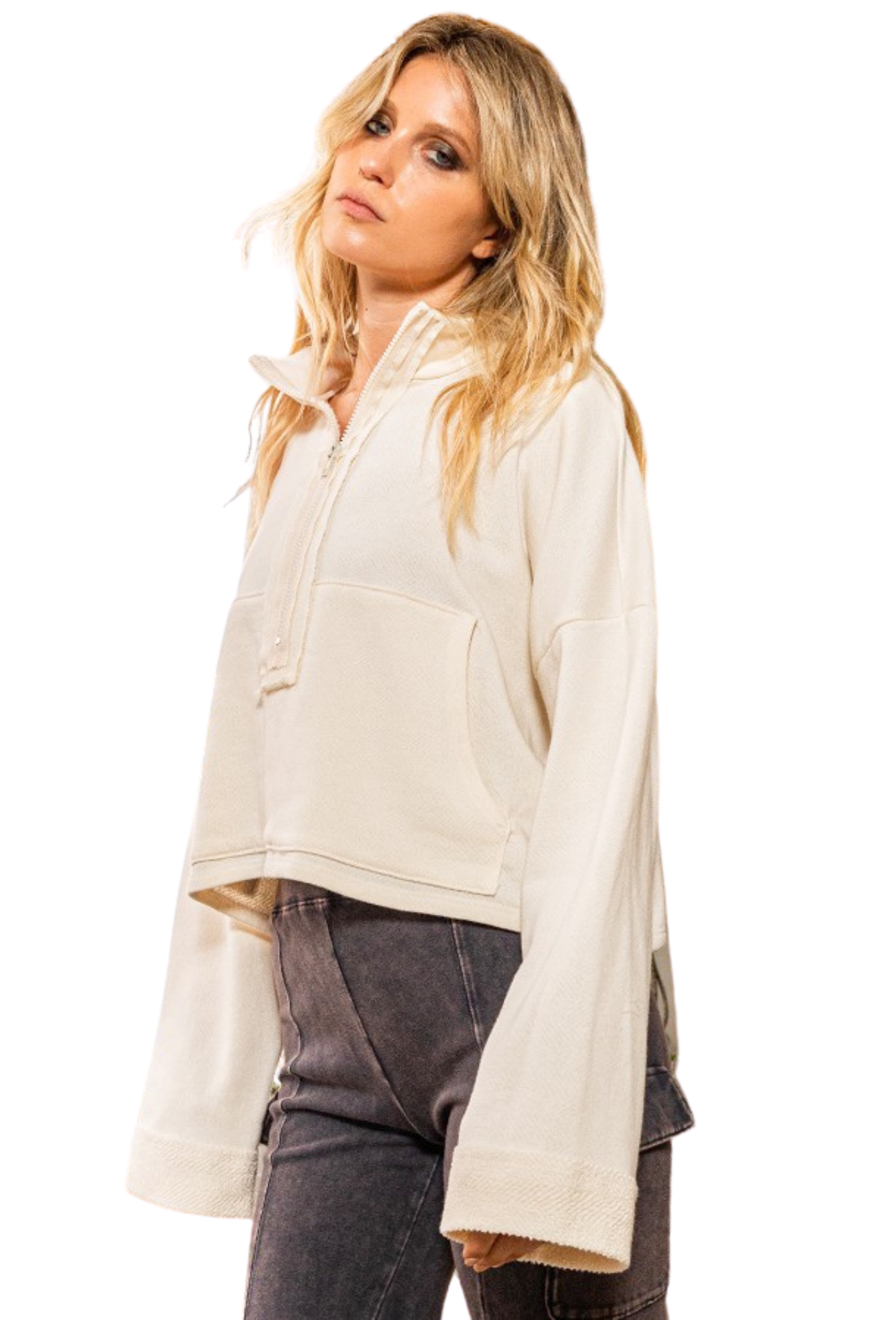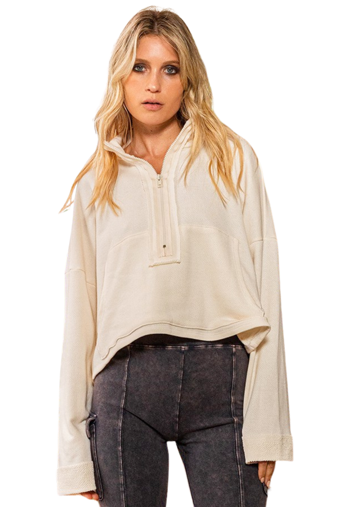 Introducing the Familiar Love Cropped Pullover! This must-have piece features a stylish half zip and convenient pockets, making it both practical and trendy. Perfect for any occasion, this cozy cropped pullover will quickly become your go-to for a touch of effortless style.