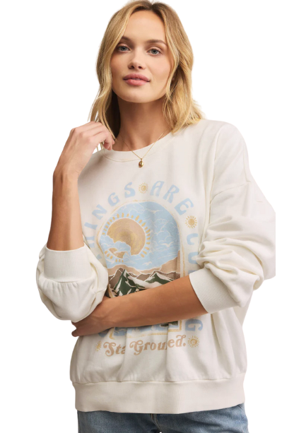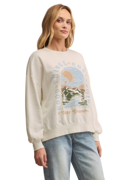 Stay cozy this fall with the Z Supply Grounded Sunday Sweatshirt. Its soft fabric and relaxed fit make it perfect for crisp autumn days, while the eye-catching graphic adds a stylish edge to your casual wardrobe. Embrace comfort and effortless cool all season long.
