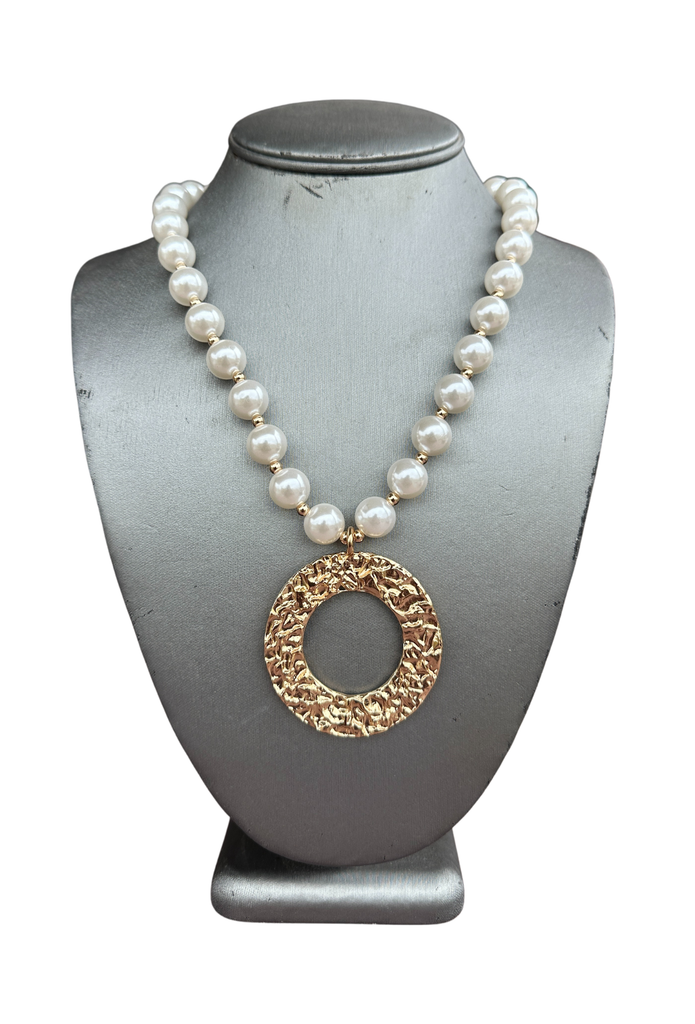 Hammered Circle & Bead Necklace