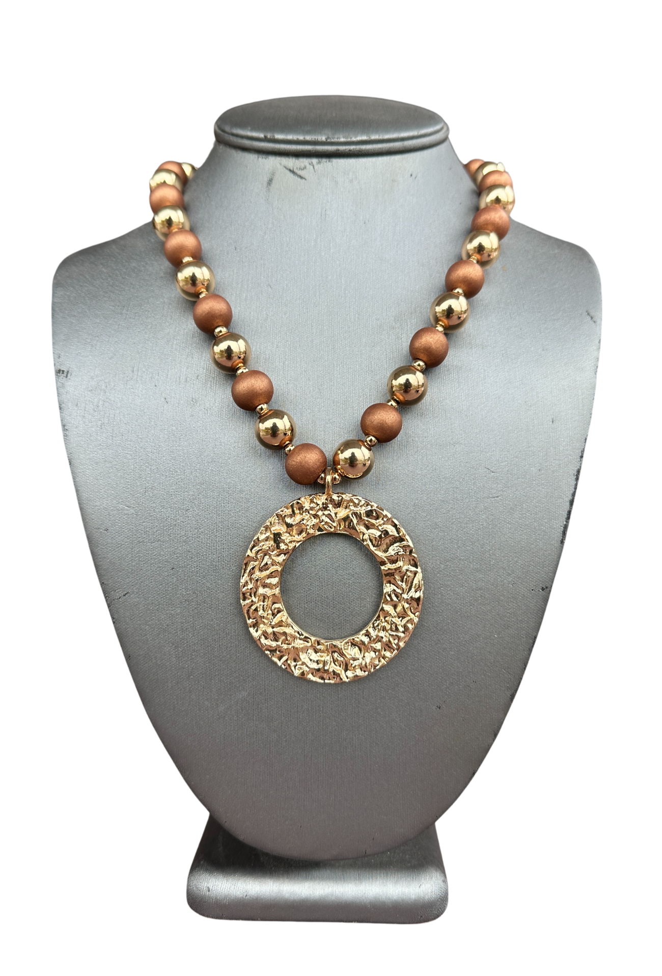 Elevate your style with this bold, beaded statement necklace designed to turn heads. Each bead is thoughtfully arranged to create a striking silhouette that complements both casual and formal looks. Perfect for adding a touch of confidence and flair to any outfit, this necklace commands attention and showcases your unique fashion sense. Make every outfit unforgettable with this captivating accessory that truly makes a statement.