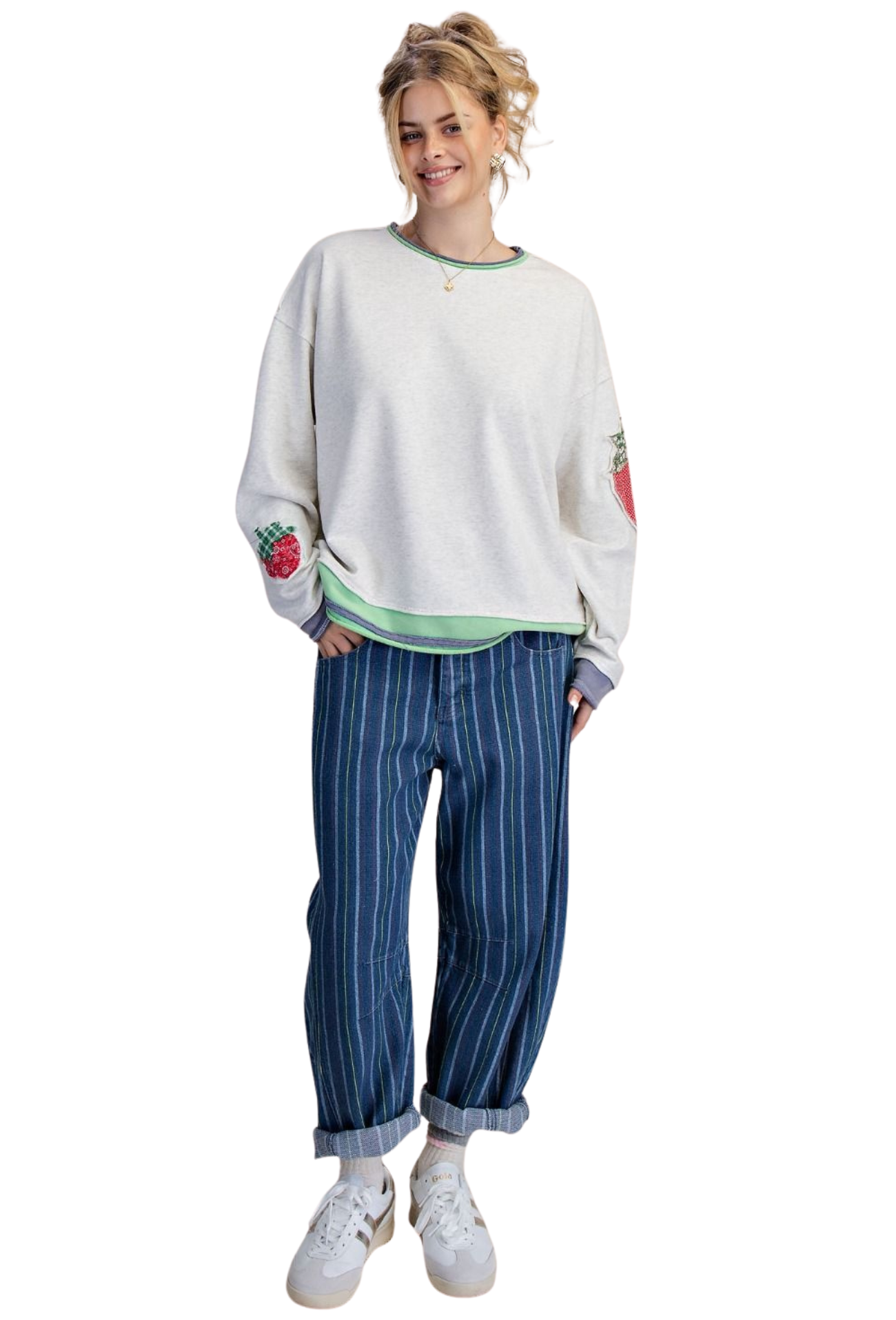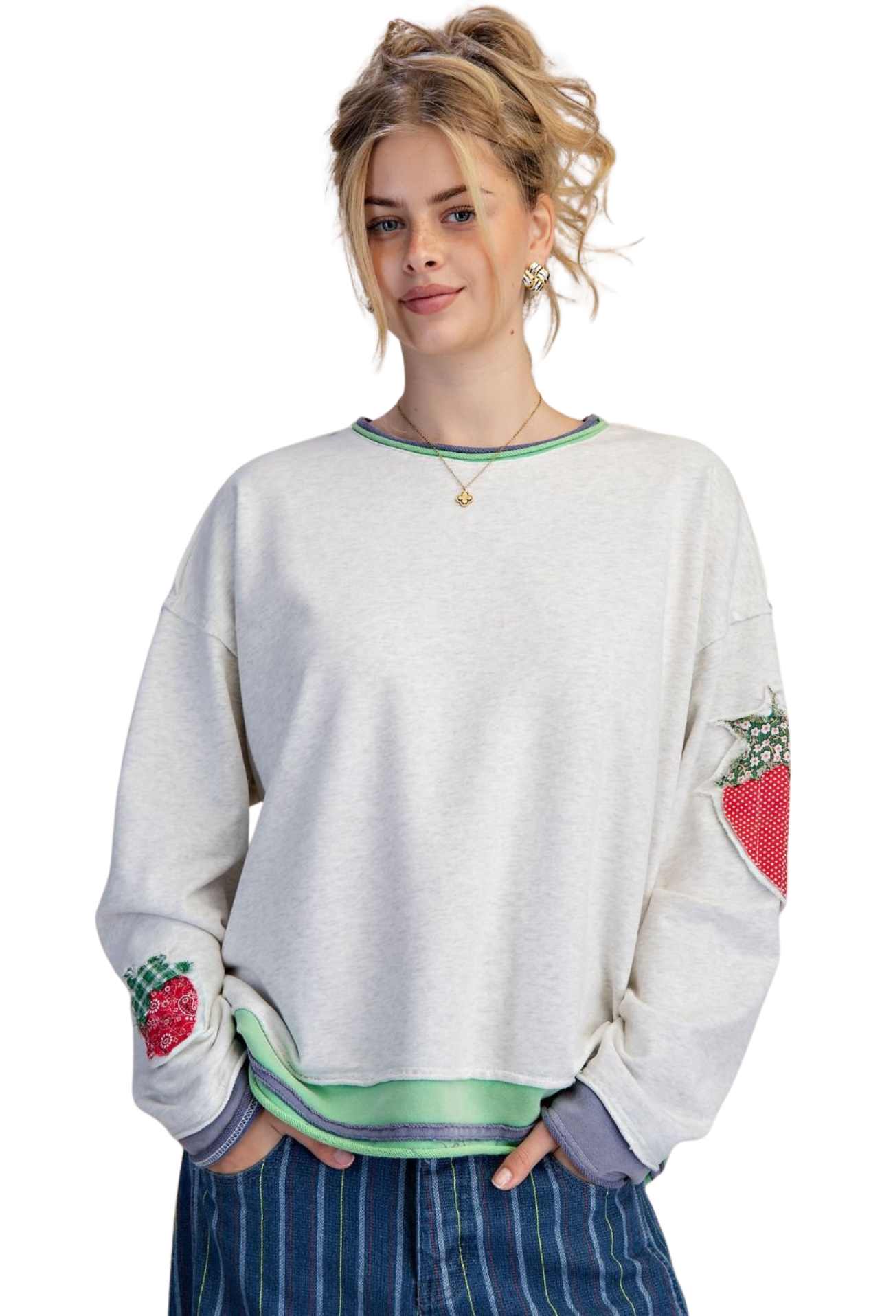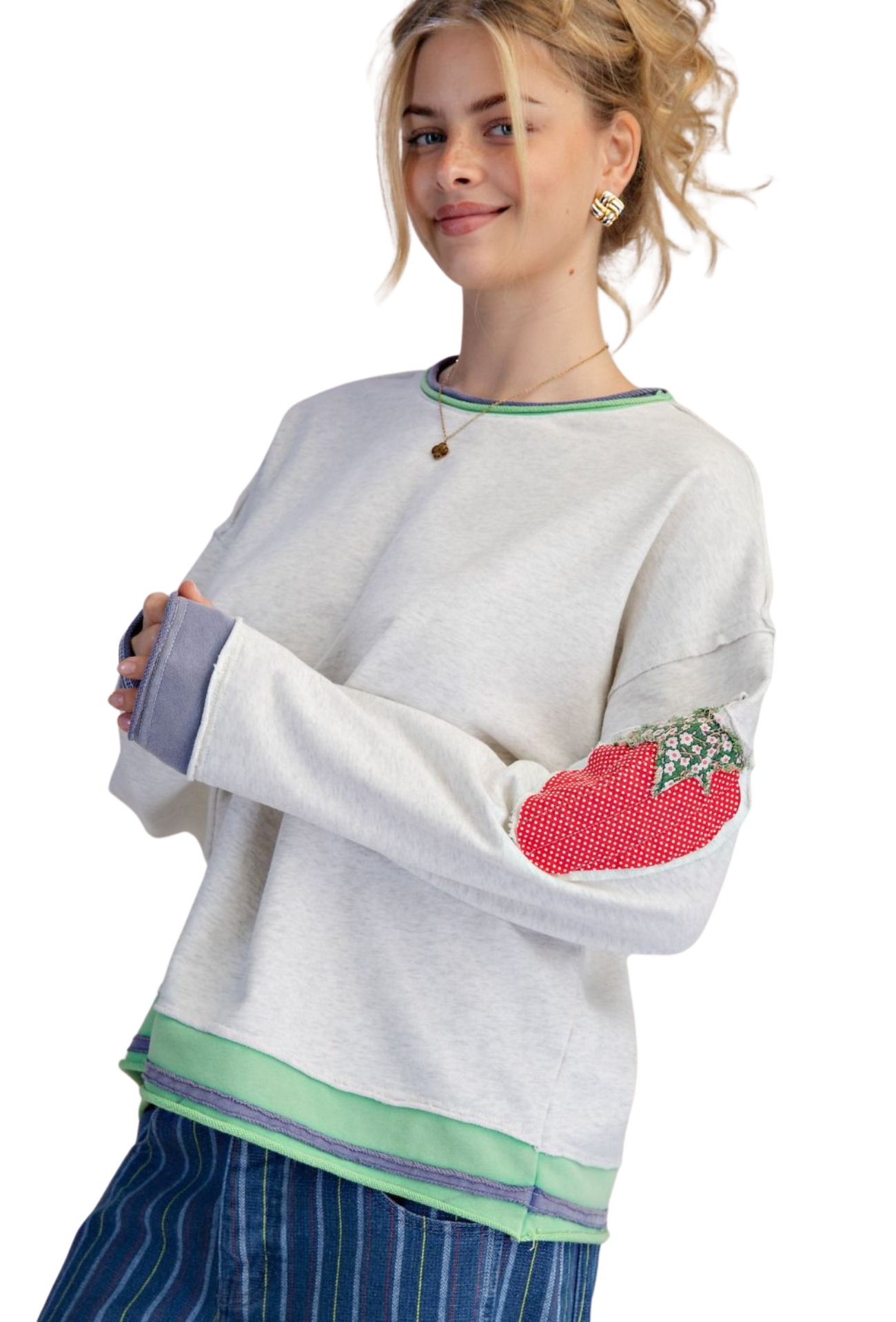 Embrace effortless style with this cozy pullover featuring a relaxed, loose fit that's perfect for laid-back days. The drop shoulders create a modern silhouette while charming patch details add personality and visual interest. Soft and comfortable, it's an easy go-to piece that works with everything in your wardrobe.