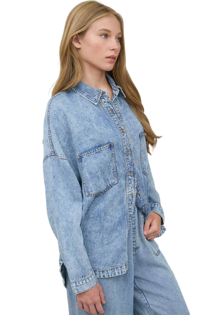 Effortlessly elevate your everyday wardrobe with the Wishing You Well Button Down Top. The classic button closure makes it easy to layer over your favorite tees or wear solo for a polished look. Crafted from quality denim, this piece transitions seamlessly from casual to dressed-up occasions. Whether you're layering for warmth or style, this top delivers the perfect balance of comfort and sophistication. A timeless essential that works as hard as you do.