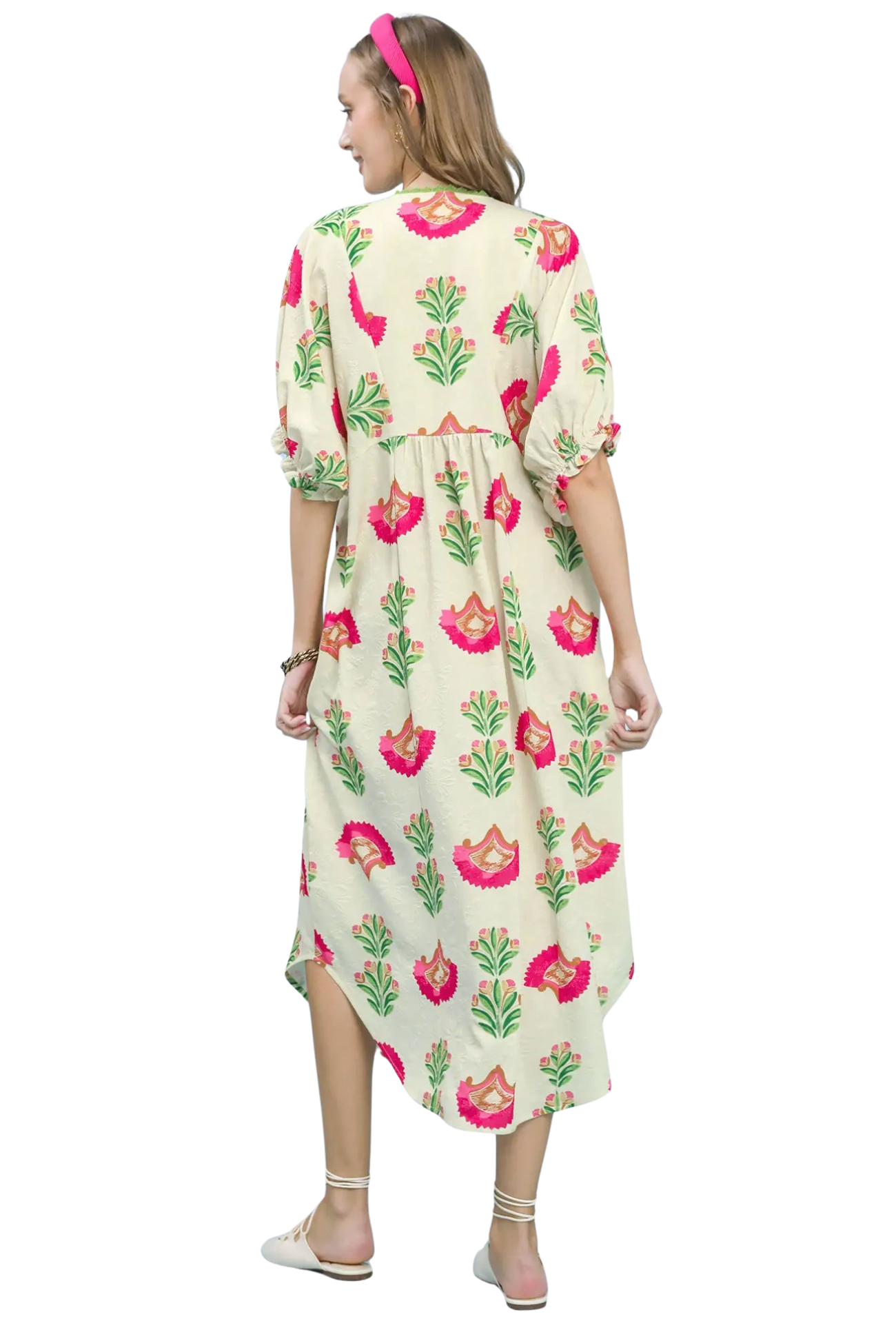 Effortless elegance meets everyday comfort in this midi dress. Featuring a flattering v-neck and relaxed silhouette that skims the body without clinging, it's designed for all-day wear. Half sleeves provide the perfect balance of coverage and breathability, while functional pockets add practical style. A versatile piece that transitions seamlessly from casual outings to relaxed gatherings!