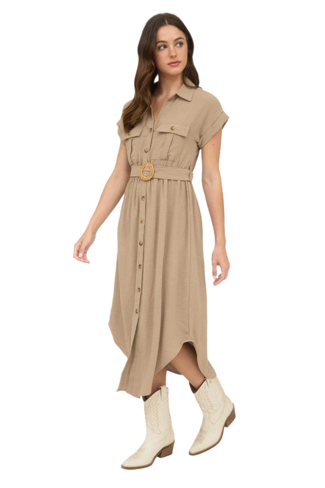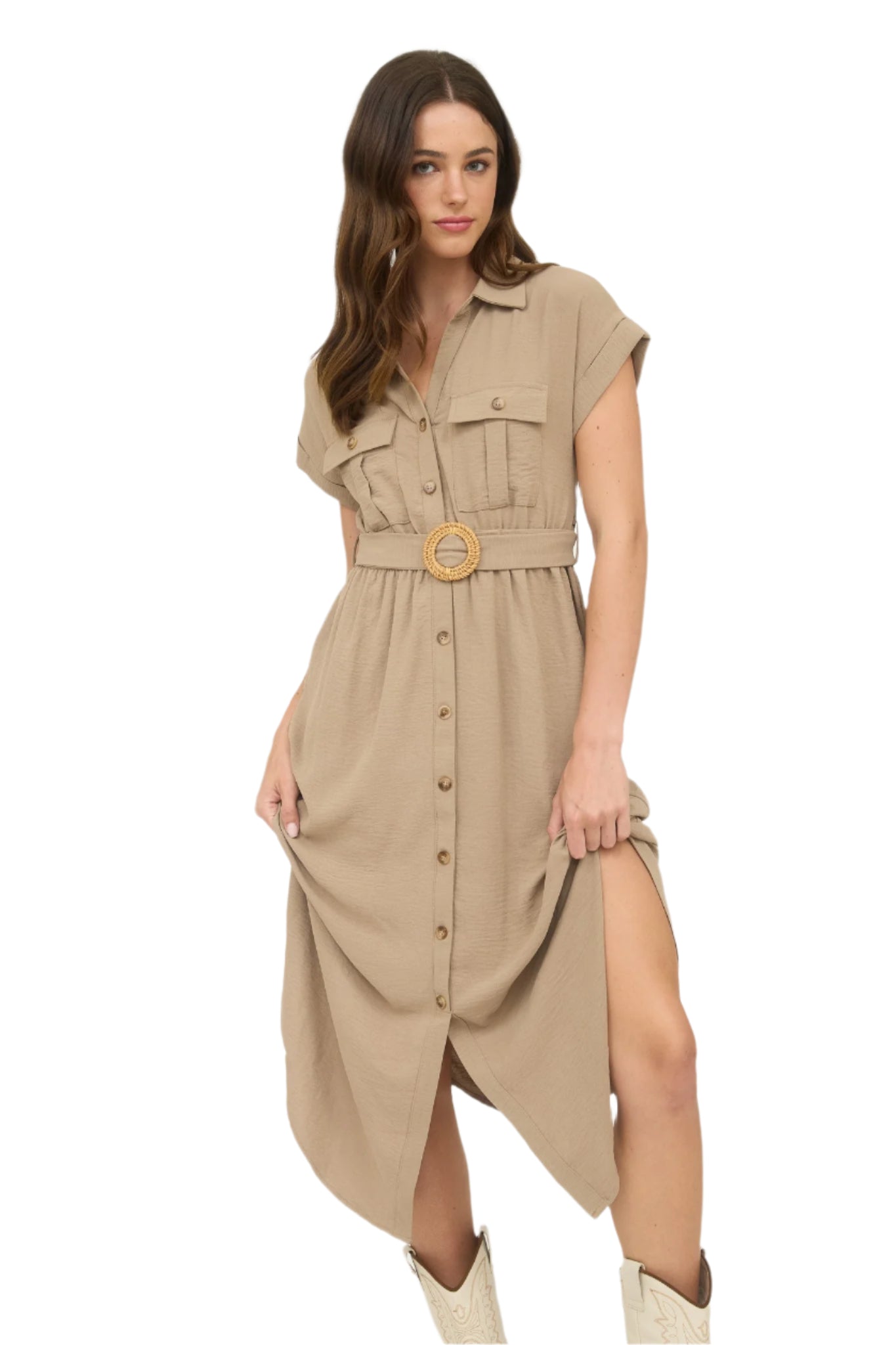 Elevate your wardrobe with the Say What You Mean Midi Dress, designed to flatter every figure. Featuring a chic button closure and a belted waist, this dress effortlessly combines style and comfort. Perfect for any occasion, its midi length offers a sophisticated silhouette that moves with you. Make a confident statement wherever you go.