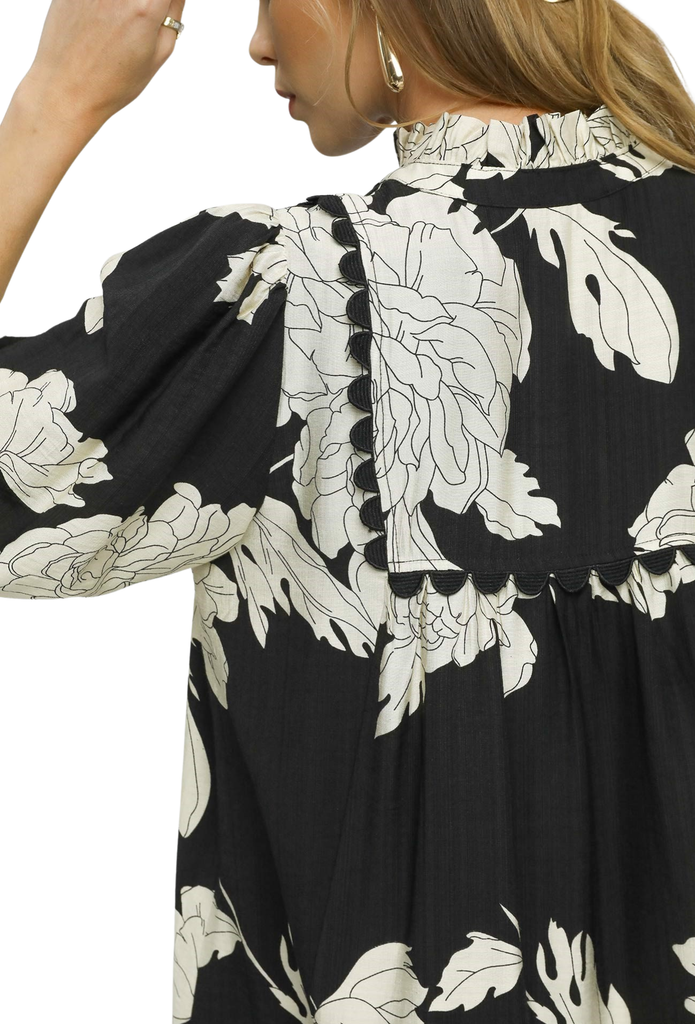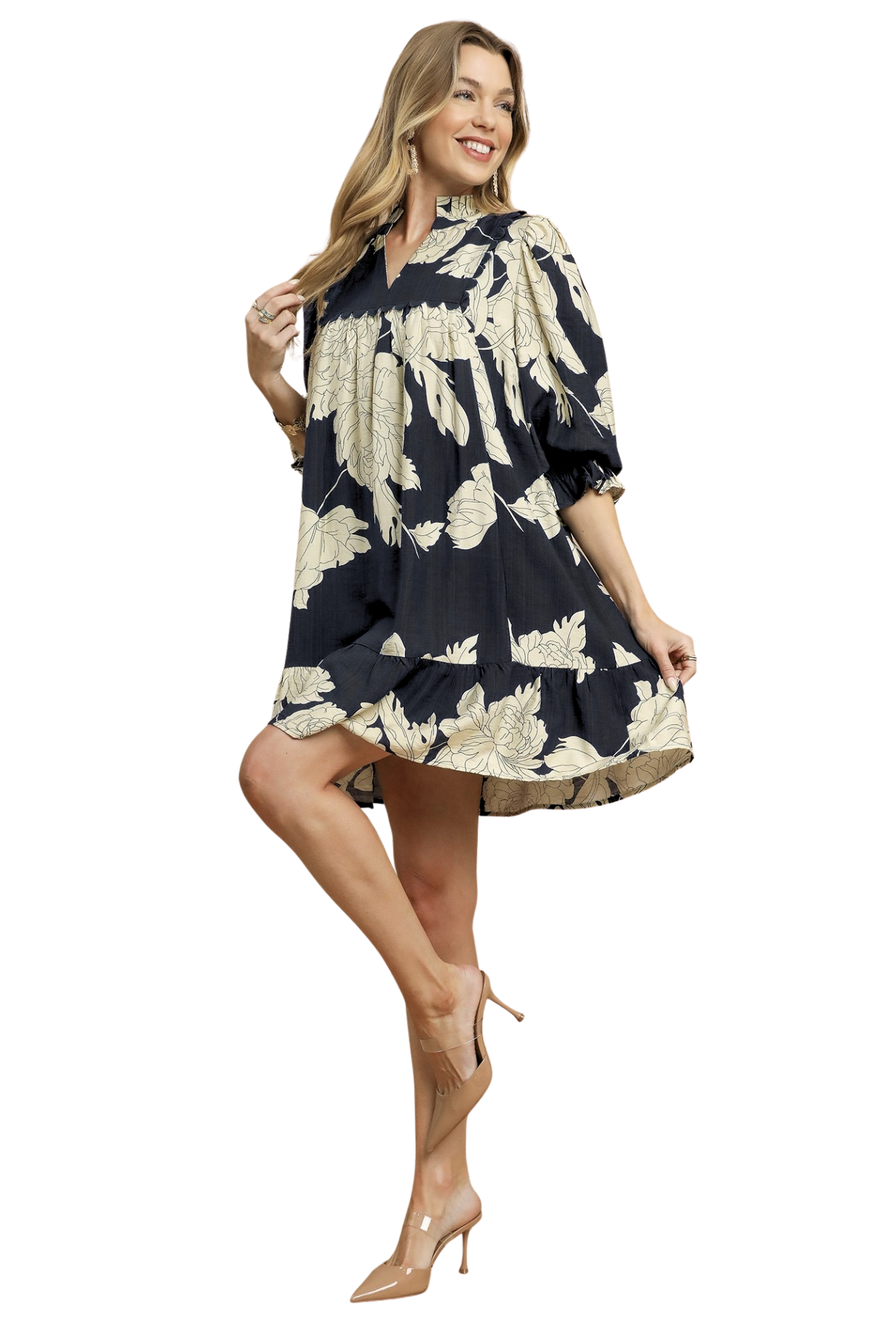 Turn heads in the All Eyes On Me Dress, where timeless elegance meets modern style. This stunning piece features a flattering split neckline that draws attention to your face, while delicate 3/4 sleeves provide the perfect balance of coverage and sophistication. The enchanting floral pattern adds movement and dimension to your silhouette, making it ideal for everything from brunch dates to evening events. Versatile, comfortable, and undeniably chic—this dress is your go-to for any occasion where you want to make an unforgettable impression.