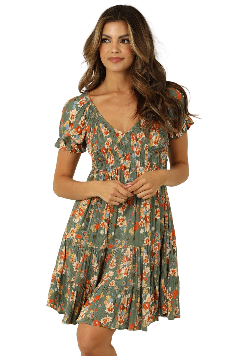 Embrace effortless charm with the Fun Days Ahead Dress, featuring a flattering v-neckline and delicate floral print that brightens any occasion. Its playful puff sleeves add a touch of whimsy, making it perfect for sunny outings or casual gatherings. Light, breezy, and designed to celebrate your unique style, this dress invites you to step confidently into every joyful moment.