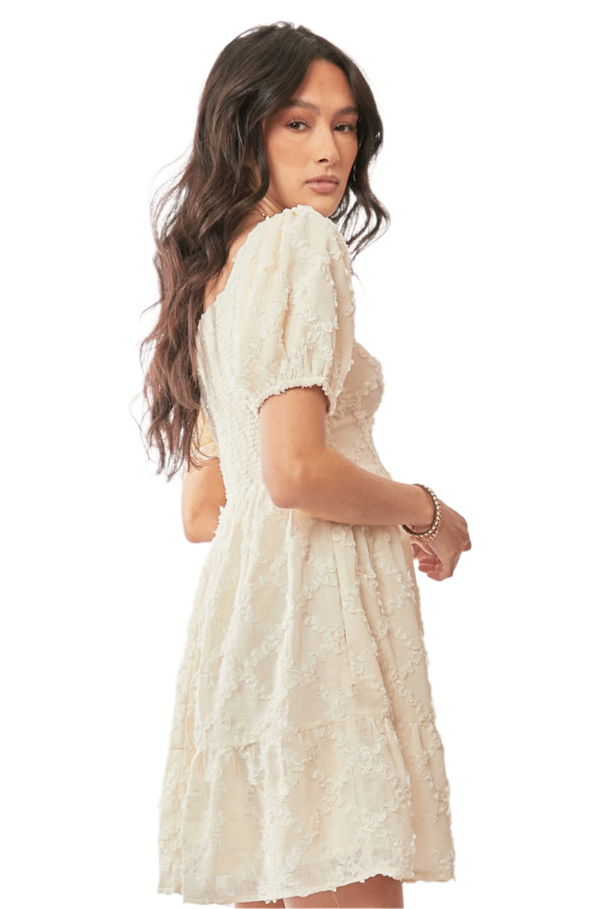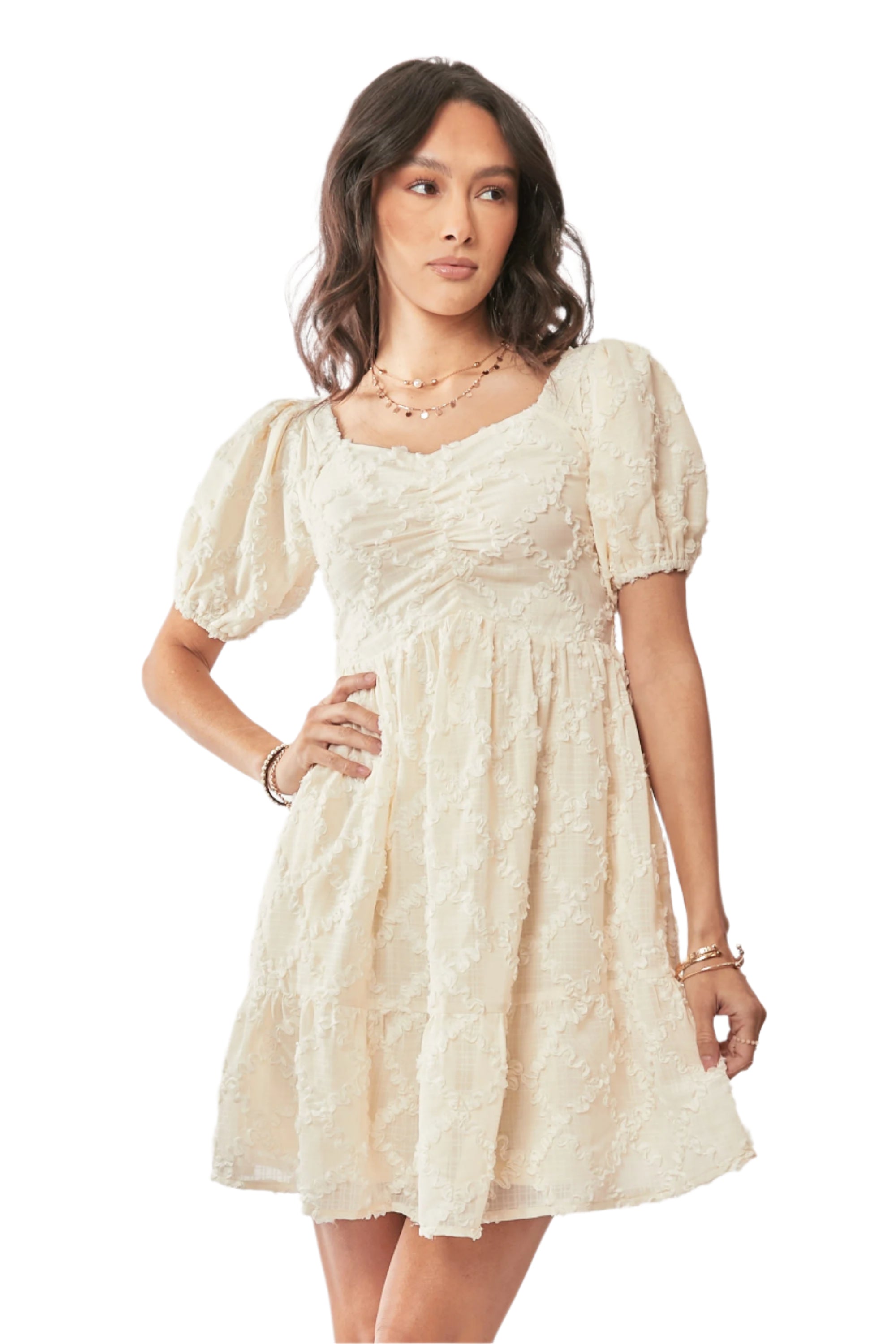 Elevate your wardrobe with the Sunday Morning Sweetheart Dress, featuring charming puff sleeves that add a touch of romance. Its flattering fit and flare silhouette effortlessly enhances your figure, creating a perfect balance of comfort and style for any occasion.