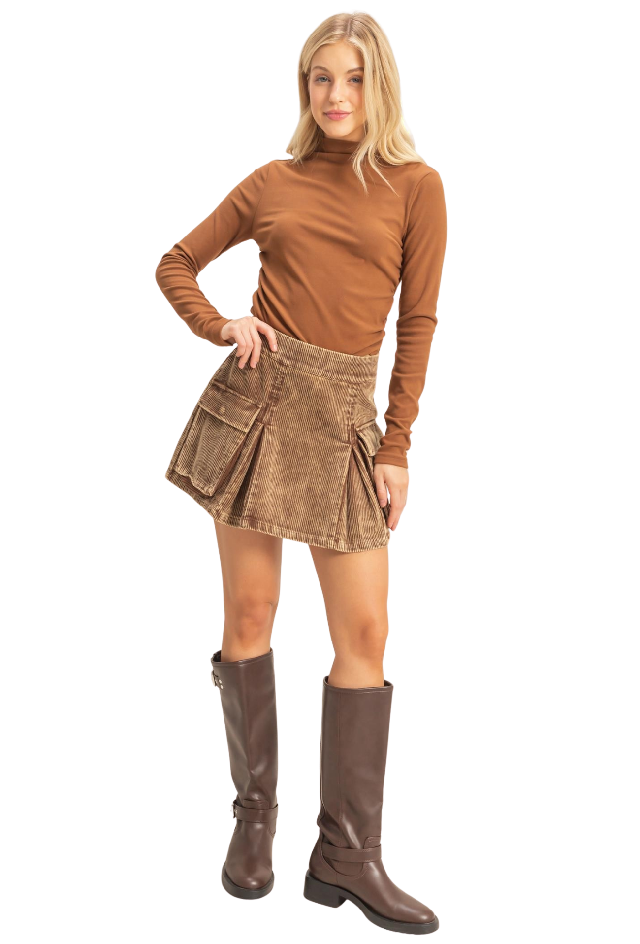 Introducing the I've Got A Plan Skirt—a wardrobe essential that combines timeless style with everyday practicality. Crafted from soft, durable corduroy, this mini skirt features elegant pleating that creates flattering movement and dimension. Functional pockets keep your essentials within reach, while the classic silhouette works seamlessly from casual outings to weekend adventures. Whether you're dressing it up or down, this versatile piece delivers comfort and sophistication in one irresistible package.