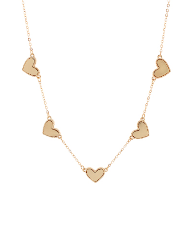 Add a touch of timeless romance to your jewelry collection with the Heart Station Necklace. Crafted in lustrous gold, this elegant piece features delicate heart motifs spaced along a fine chain, symbolizing love and connection. Perfect for layering or wearing alone, it effortlessly enhances any look with subtle sophistication. Embrace beauty and meaning in one graceful necklace that makes a thoughtful gift or a personal treat.