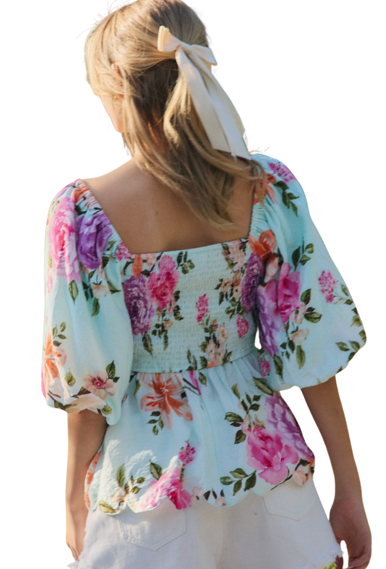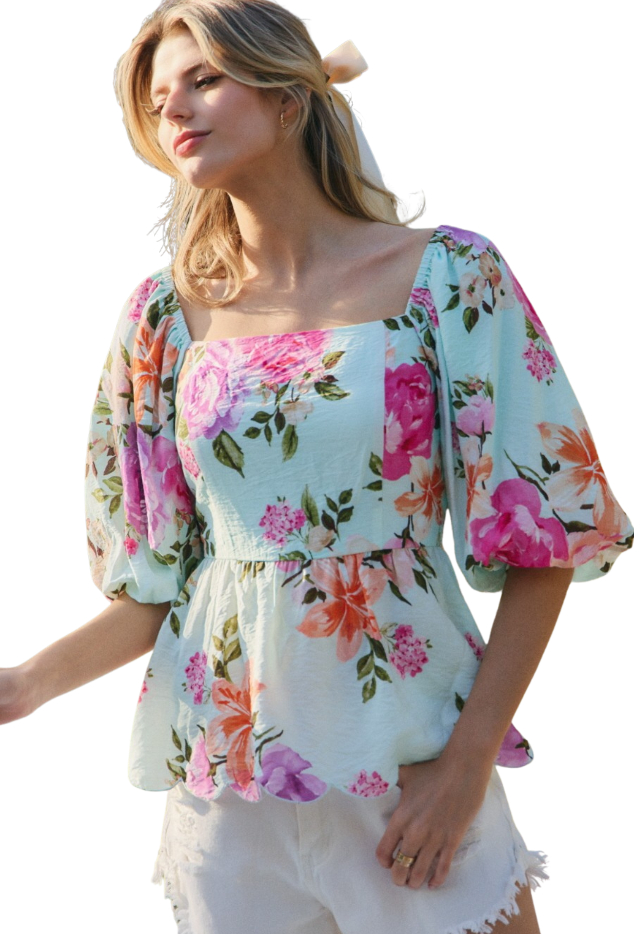 Embrace the season in this charming floral printed top that captures effortless spring elegance. The square neckline flatters while delicate puff sleeves add a romantic touch, and the gathered peplum hem creates a flattering silhouette that defines your waist. Perfect for brunch dates, garden parties, or casual weekend outings, this piece brings joy and femininity to any wardrobe. Versatile enough to dress up or down, it's the go-to top for anyone seeking timeless style with modern flair.