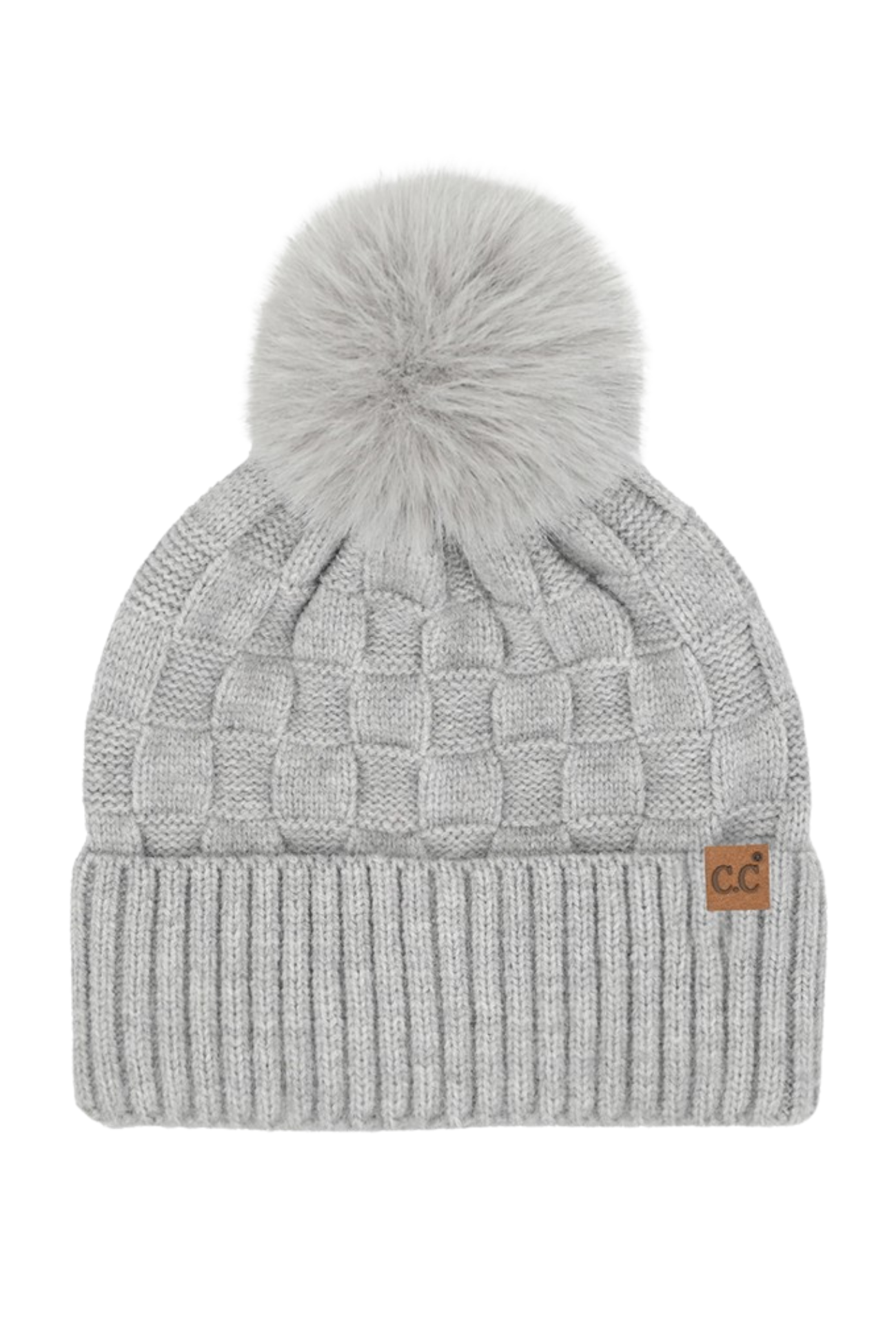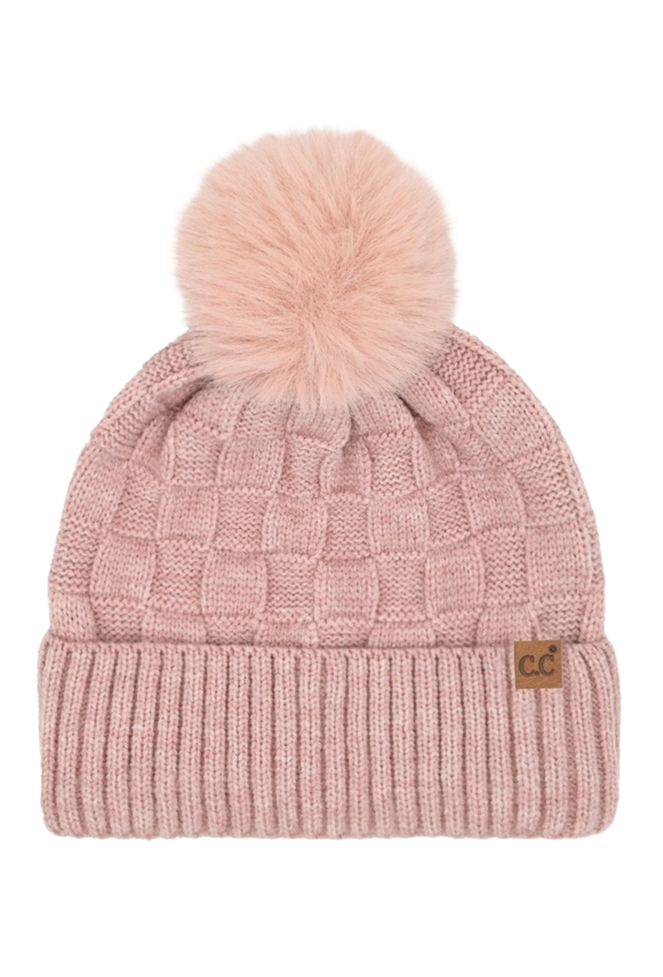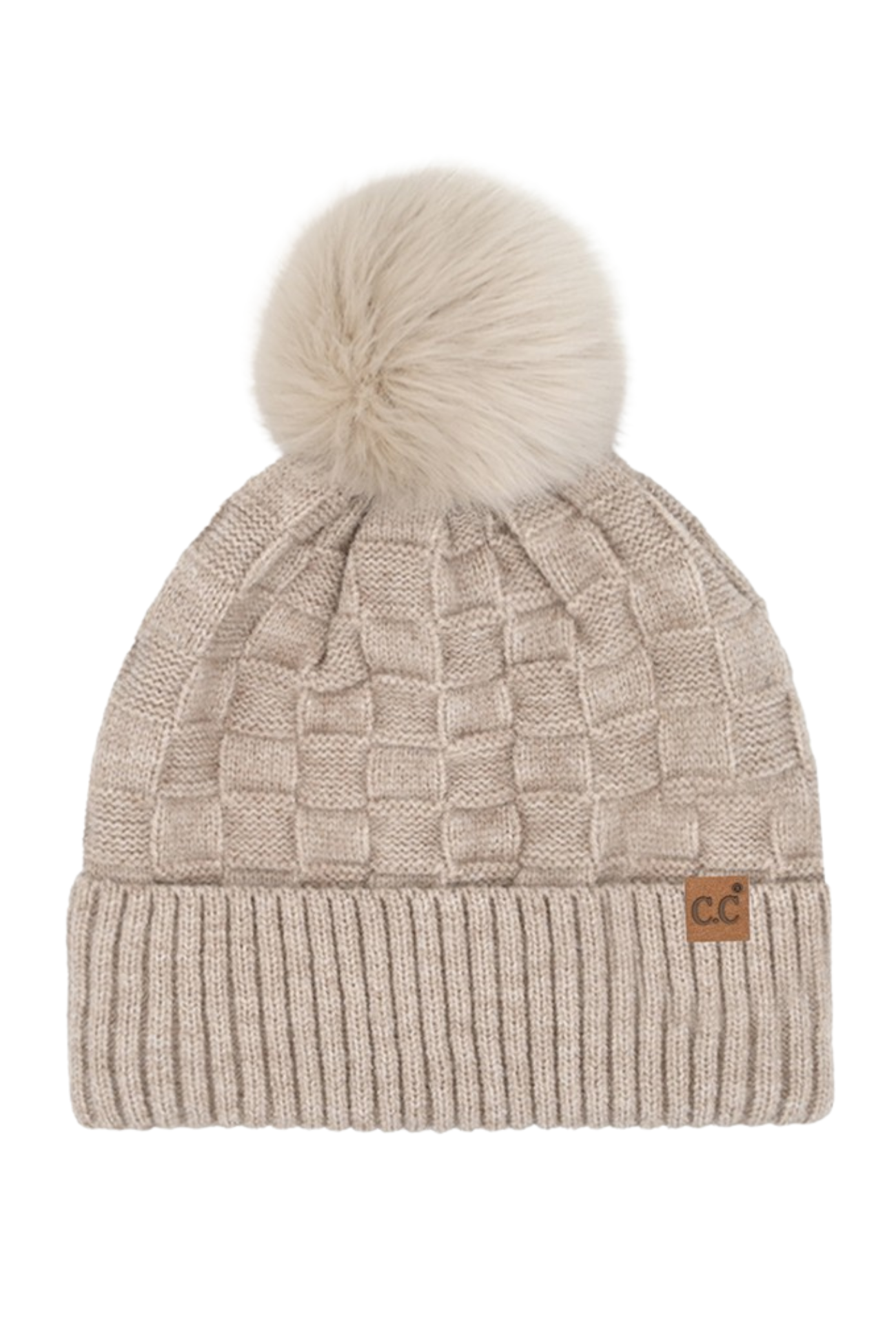 C.C. Checkered Knit Beanie With Pom