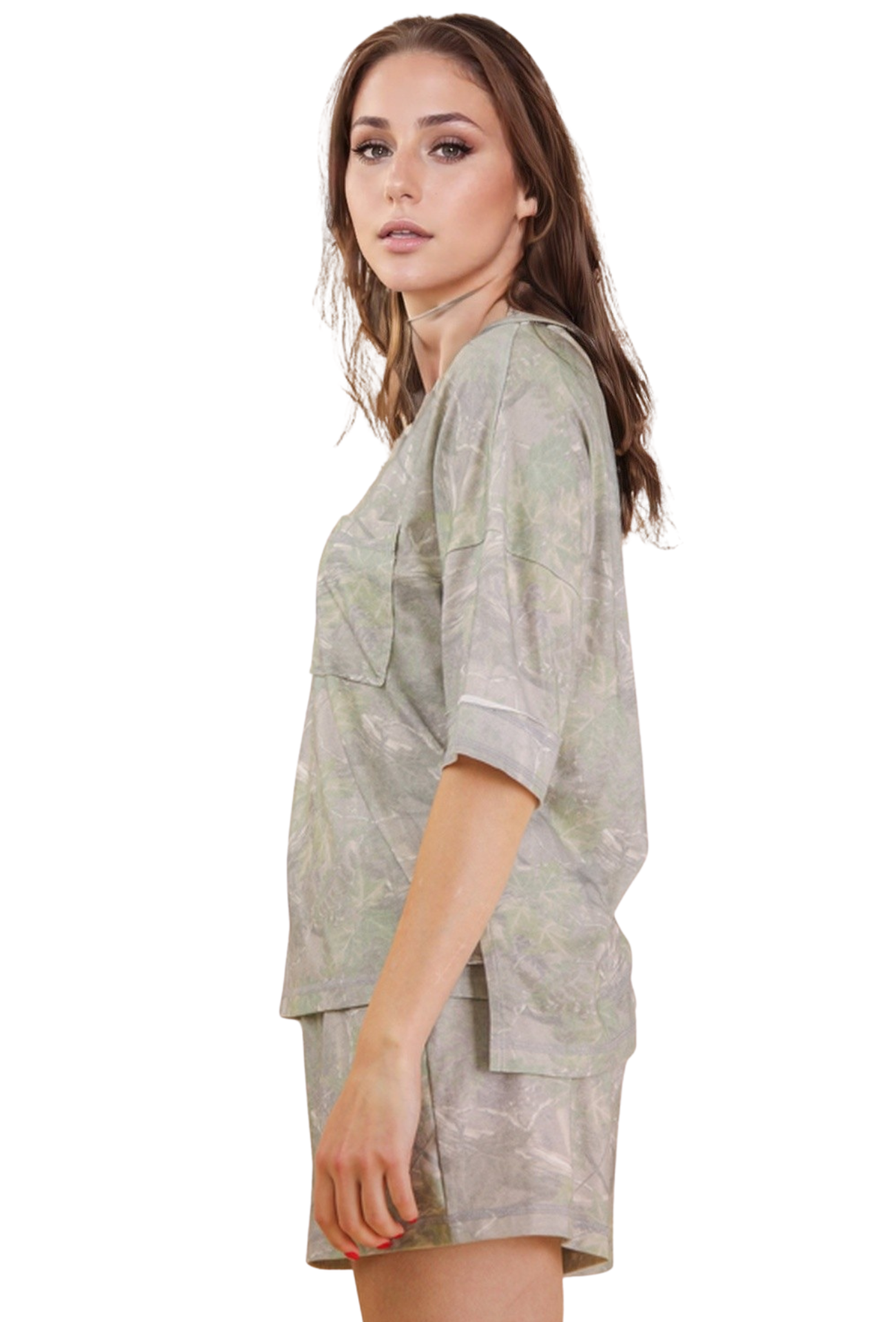Make a statement with the Camo Lover Tee, the perfect blend of edgy style and everyday comfort. This oversized tee features a relaxed round neckline and short sleeves for effortless wear. The hi-lo hem with strategic side slits adds modern dimension and movement, giving you that coveted fashion-forward look. Whether you're dressing it up or keeping it casual, this versatile piece works hard to elevate your wardrobe with minimal effort.