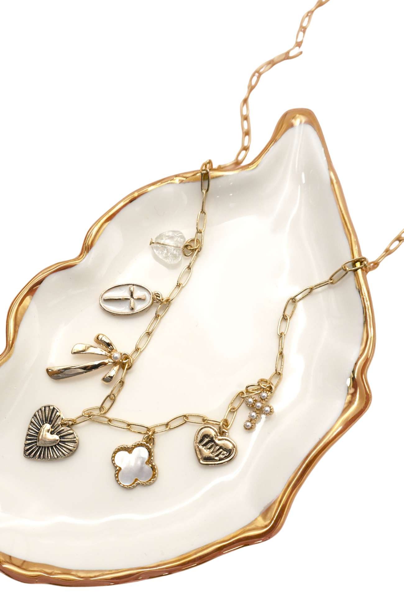Elevate your everyday style with this delicate Cross & Bow Charm Necklace, where timeless elegance meets modern sophistication. Crafted in lustrous gold, this dainty piece features charming cross and bow details that add a touch of grace to any outfit. Perfect for layering or wearing solo, it's the ideal accessory for those who appreciate subtle, meaningful jewelry. Whether you're dressing up for a special occasion or adding polish to casual wear, this versatile necklace brings an understated beauty that complements your unique personality.