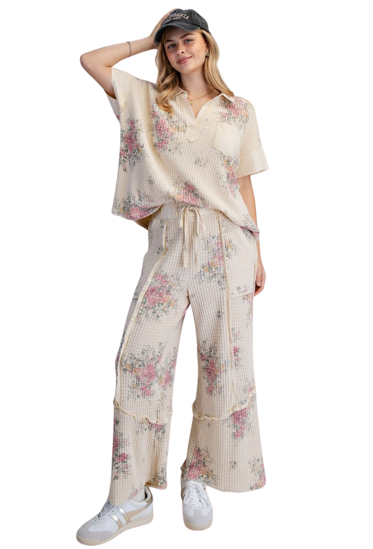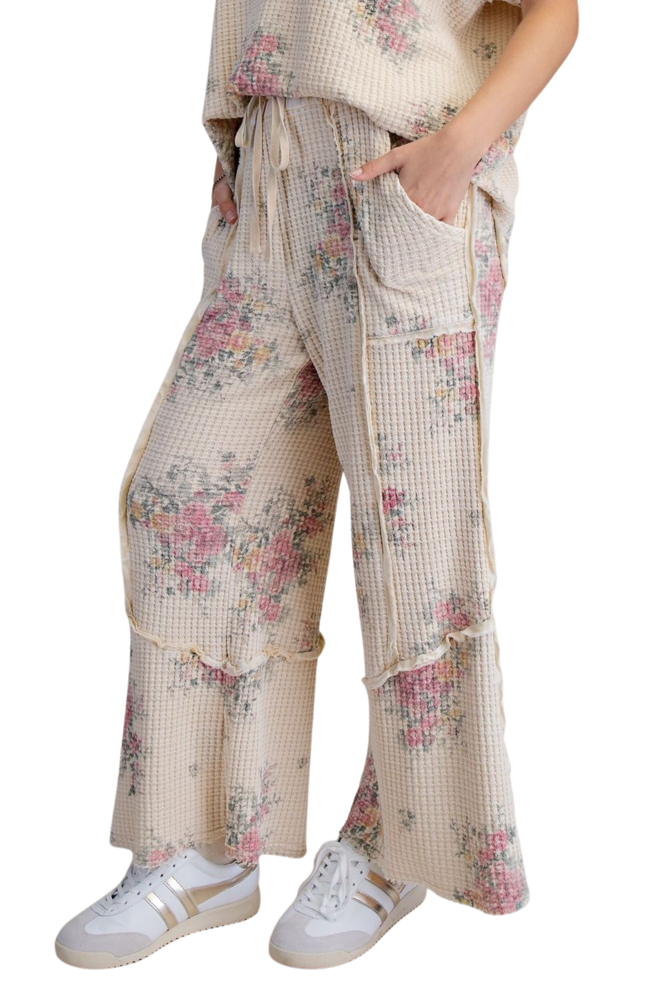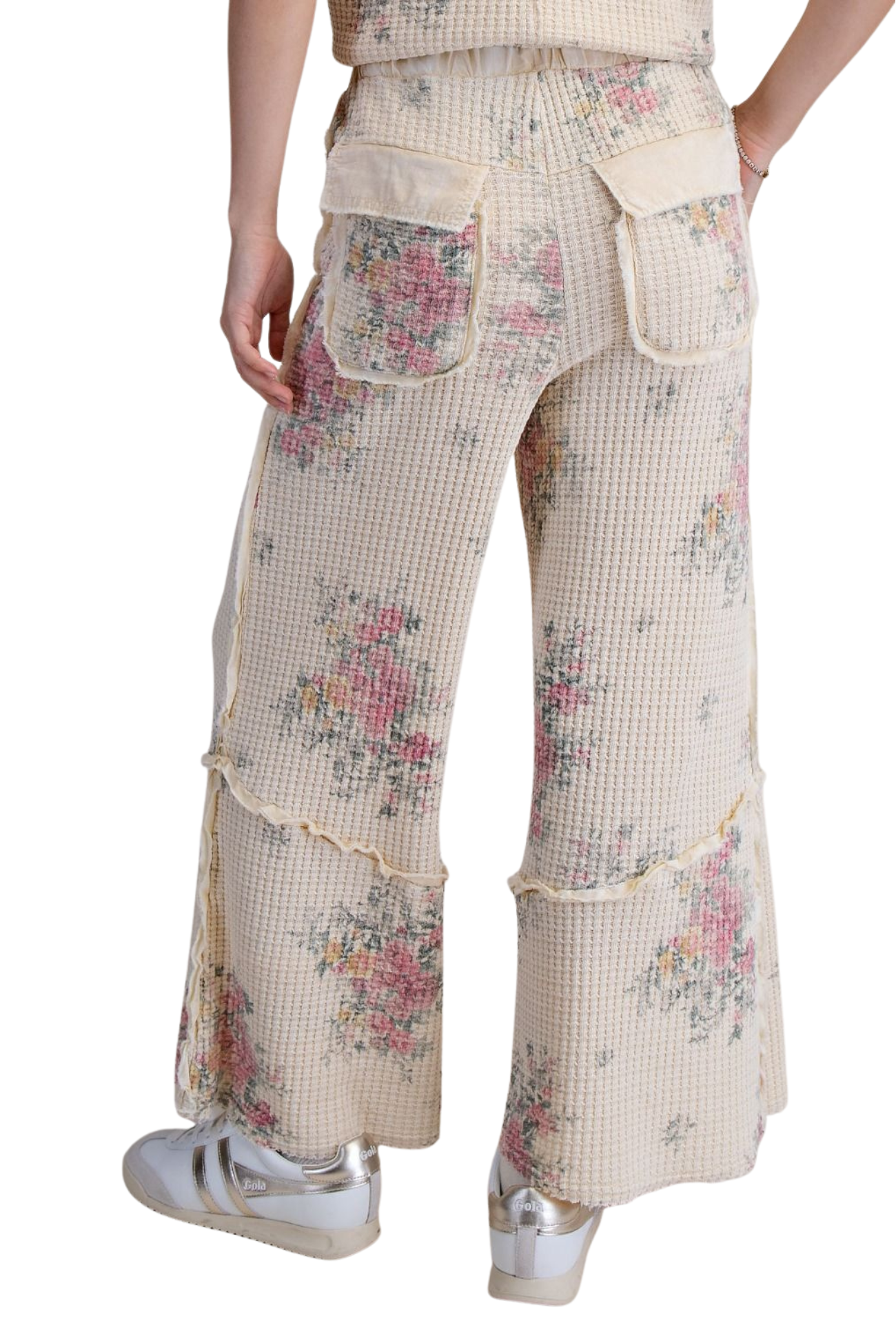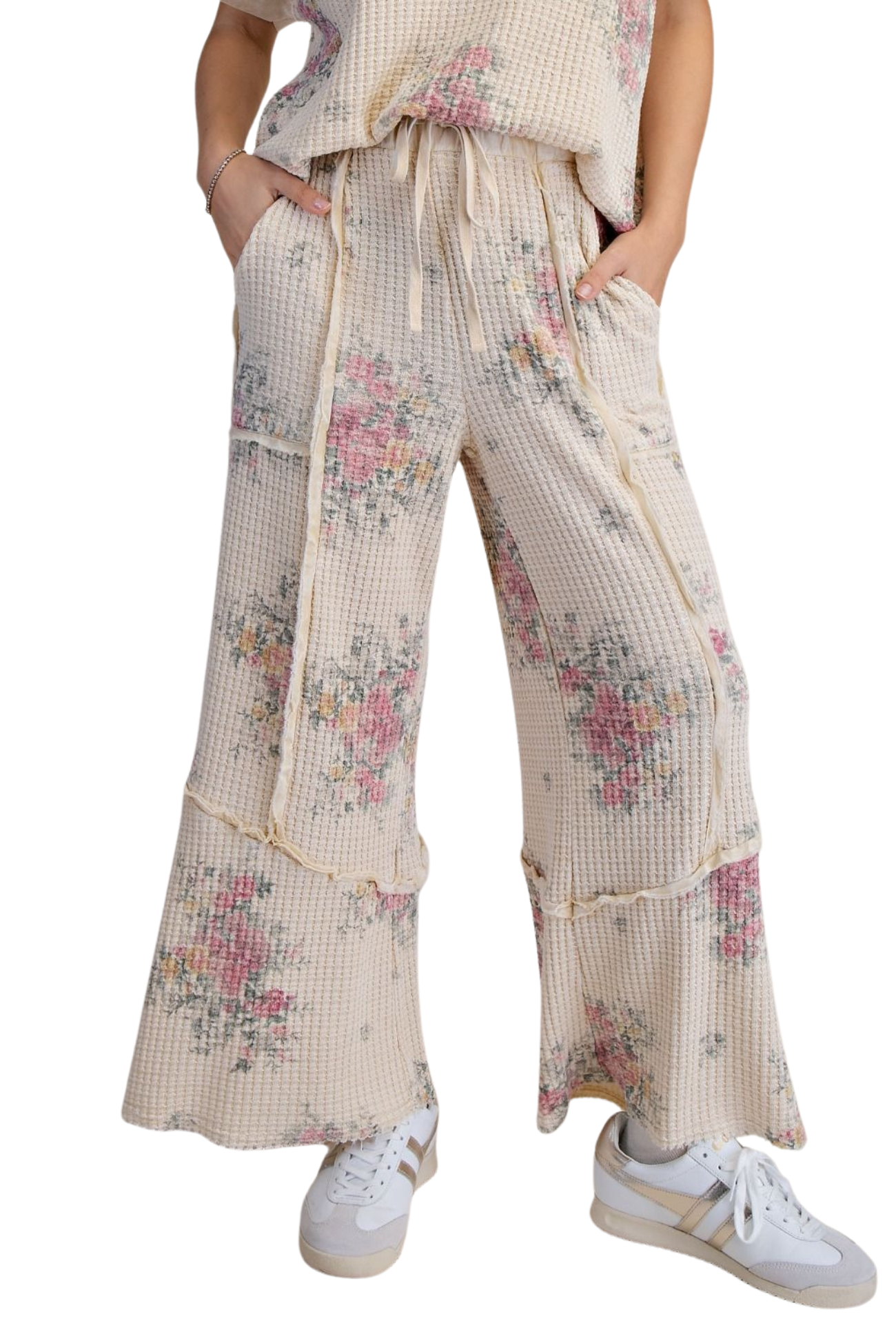Elevate your everyday style with these stunning high-rise boho pants. Crafted from soft waffle knit fabric, they offer a comfortable yet sophisticated silhouette that flatters every frame. The wide-leg cut creates an effortlessly chic look perfect for casual outings or dressed-up occasions. Delicate floral details add a romantic touch that captures the free-spirited essence of bohemian fashion. Whether you're running errands or heading out for the evening, these versatile pants deliver both comfort and undeniable style that you'll reach for again and again.
