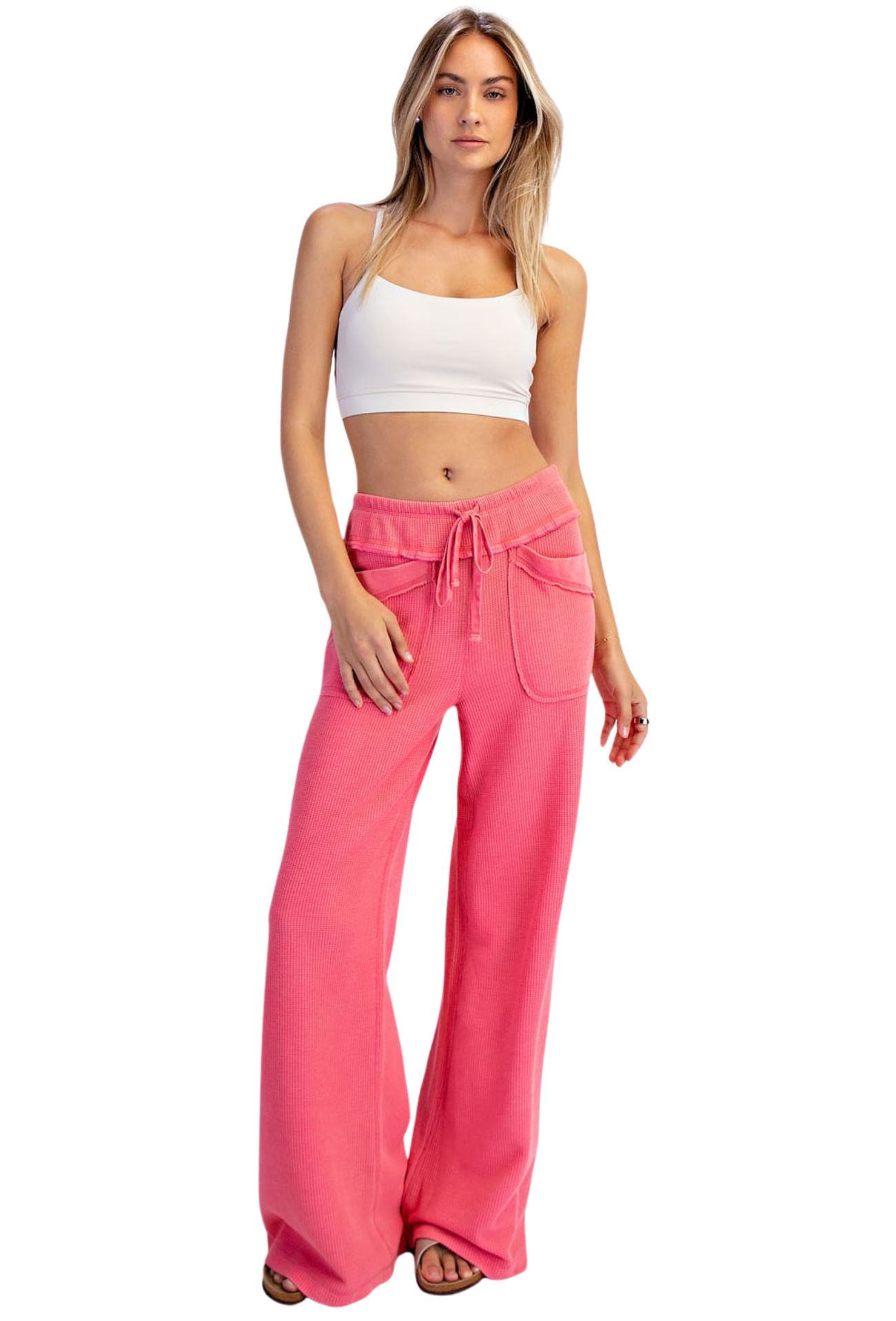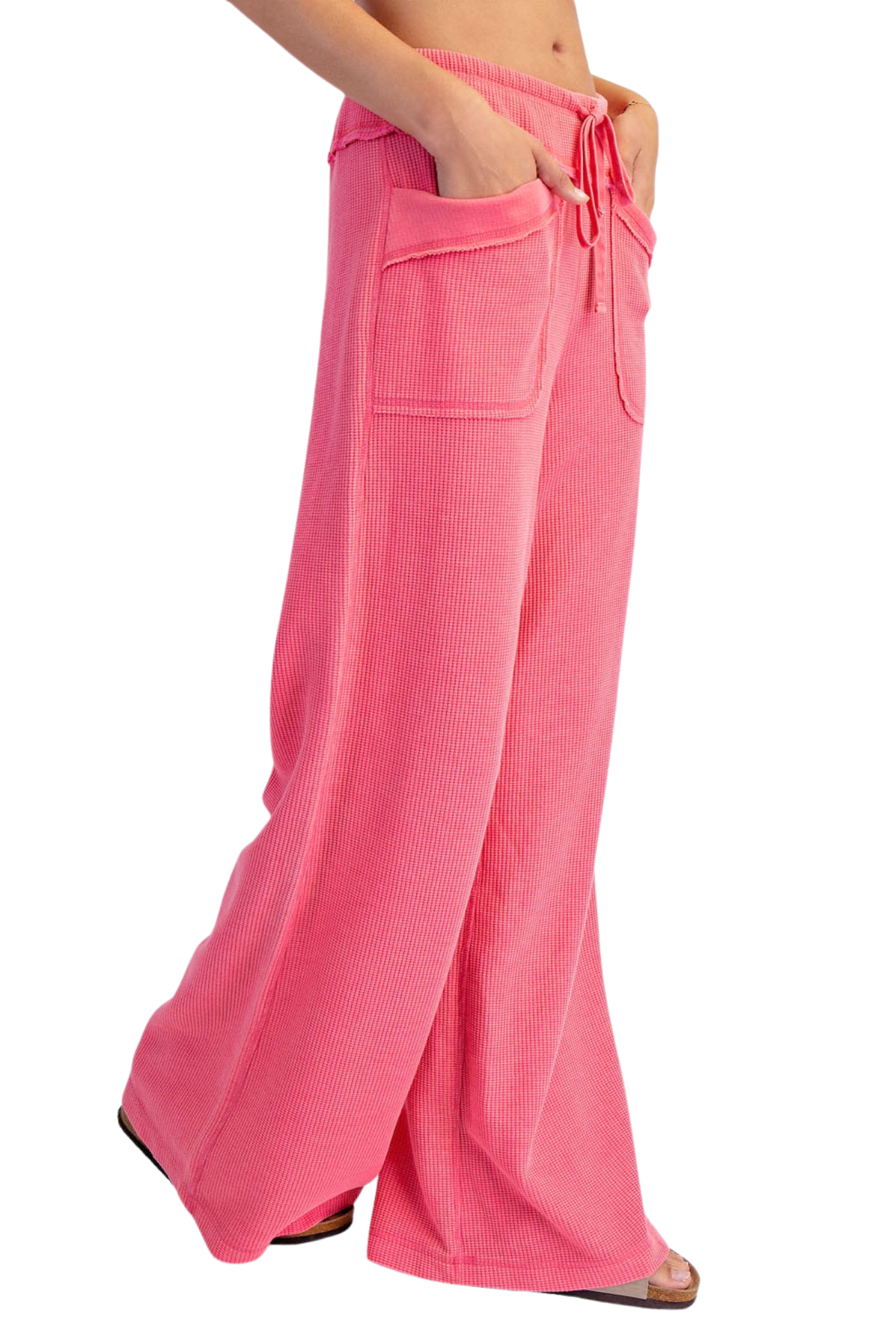 Don't Forget About Me Pants feature a textured waffle knit fabric that adds visual interest and subtle dimension to your everyday wardrobe. The adjustable drawstring waist ensures a customized fit, while the relaxed wide-leg silhouette offers effortless comfort and a flattering drape. Perfect for those who value both style and ease, these pants transition seamlessly from casual outings to laid-back weekends. The breathable knit construction keeps you comfortable all day long, making them an essential addition to your collection.