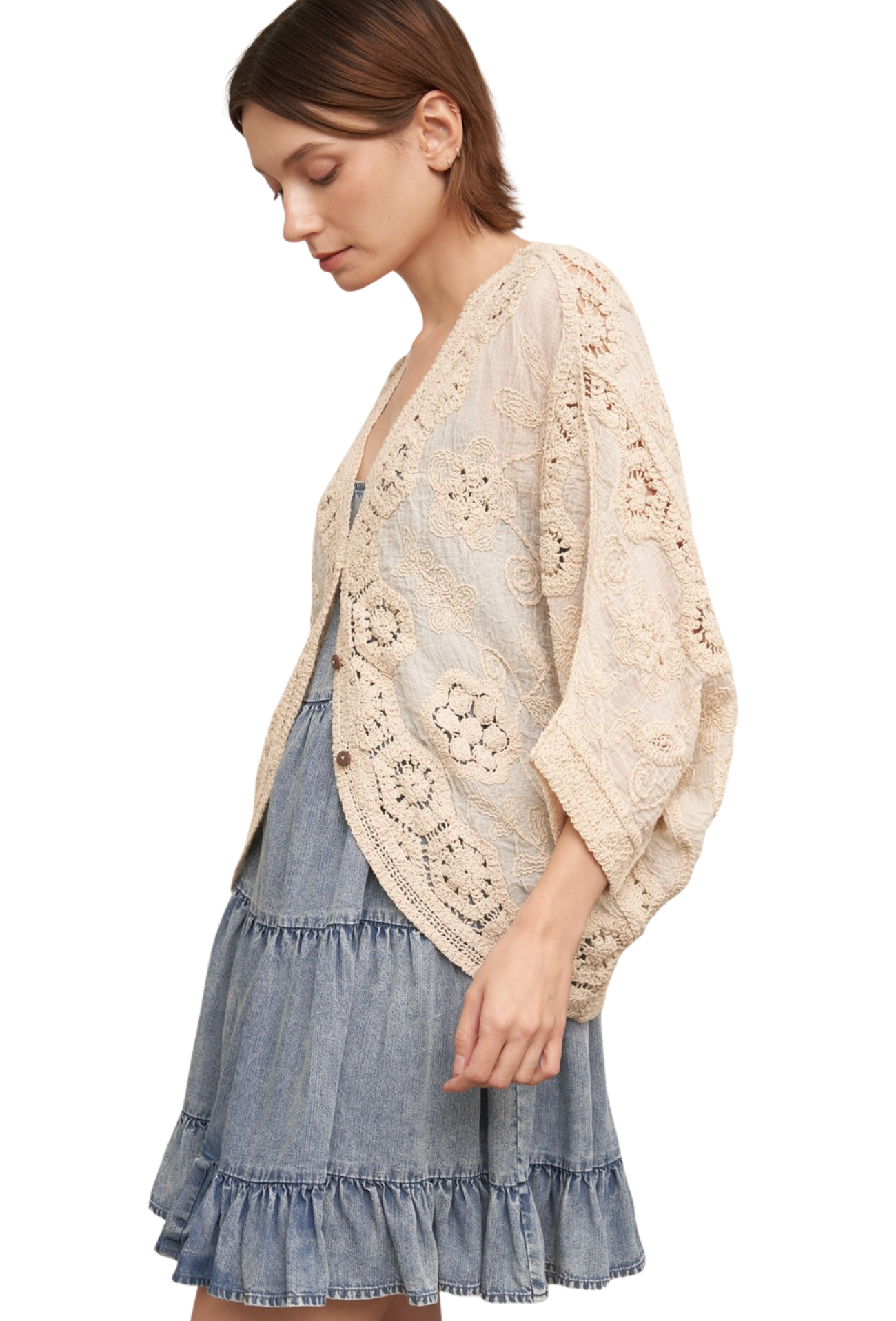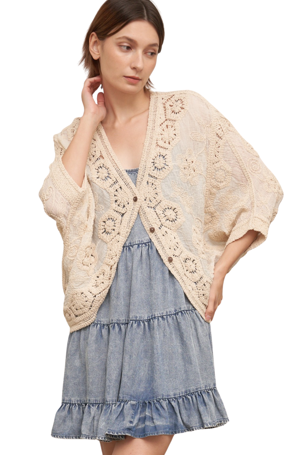Effortless elegance meets modern comfort in this stunning batwing crochet cardigan. The flowing batwing sleeves create a flattering silhouette that works beautifully over any outfit, while delicate crochet detailing adds texture and visual interest. Perfect for layering on cooler days or wearing solo as a statement piece, this versatile cardigan transitions seamlessly from casual to polished. The relaxed fit ensures all-day wearability without sacrificing style. Elevate your wardrobe with a piece that's both timeless and on-trend.