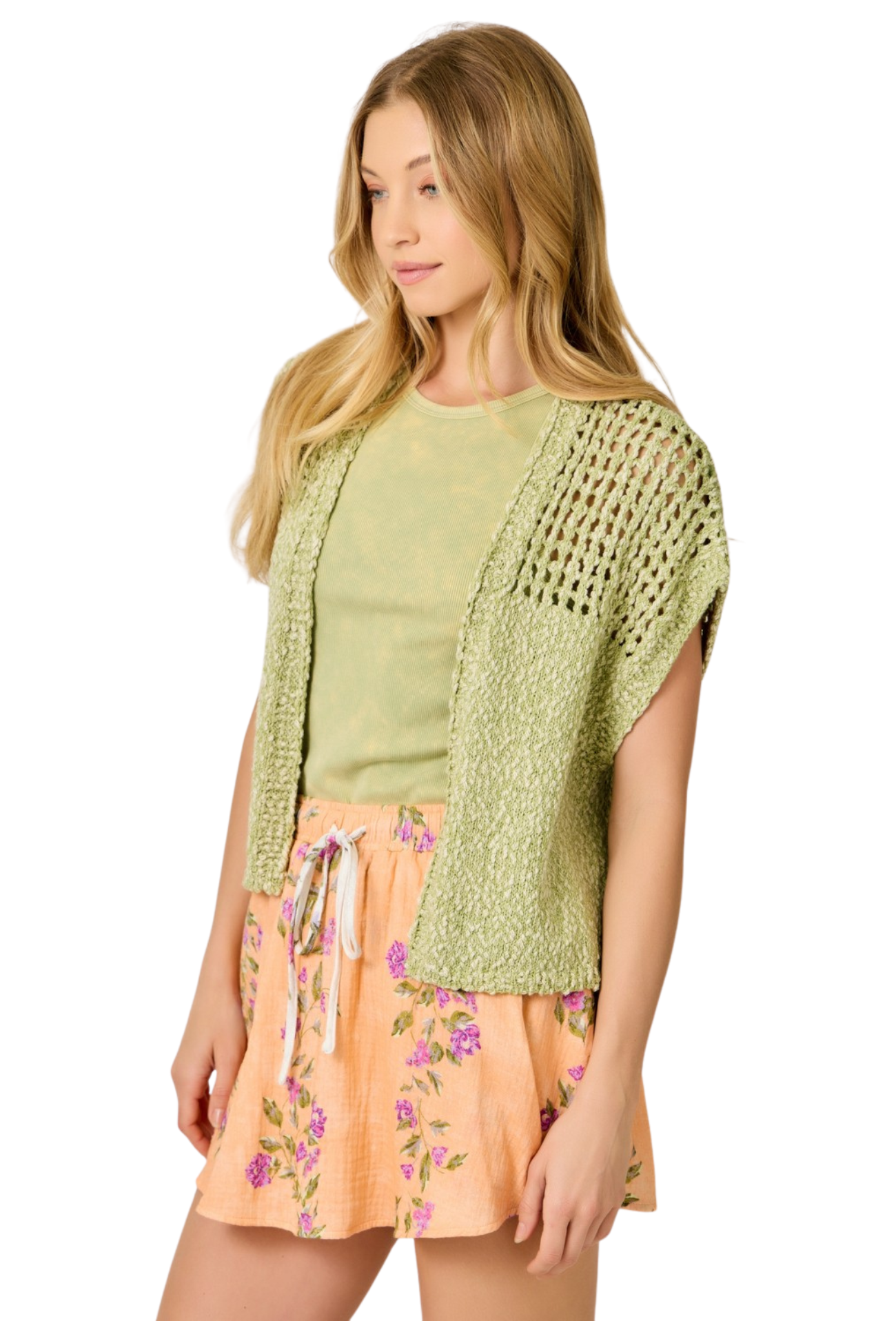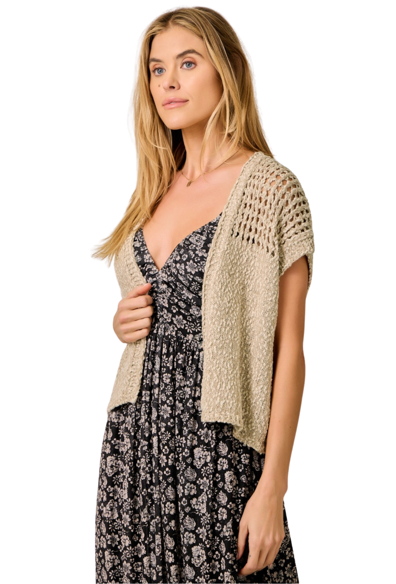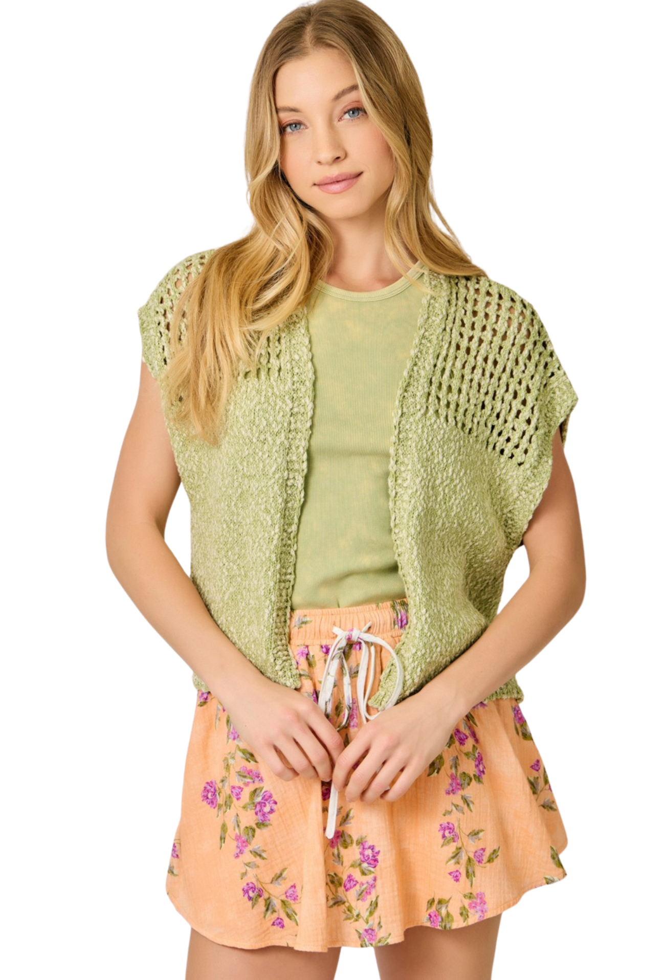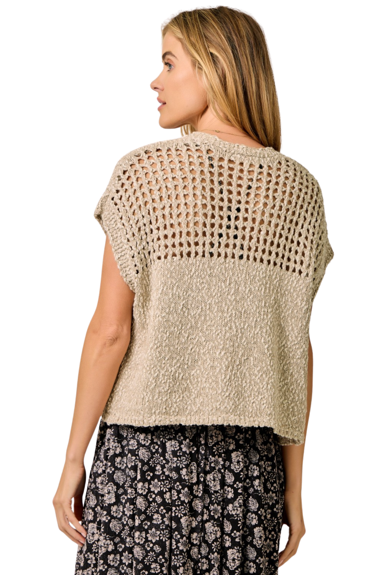 Perfect for spring layering, this sleeveless crochet knit cardigan features an open front design that effortlessly transitions from casual to polished. The lightweight, breathable construction makes it ideal for warming up without bulk, while the intricate crochet detailing adds texture and visual interest to any outfit. Layer it over your favorite tees or dresses for versatile styling that works from season to season.
