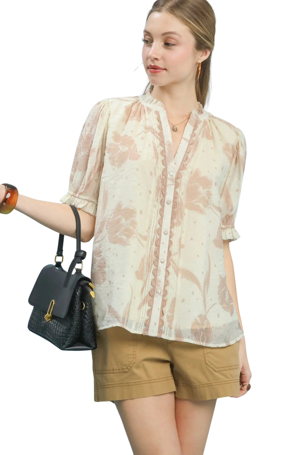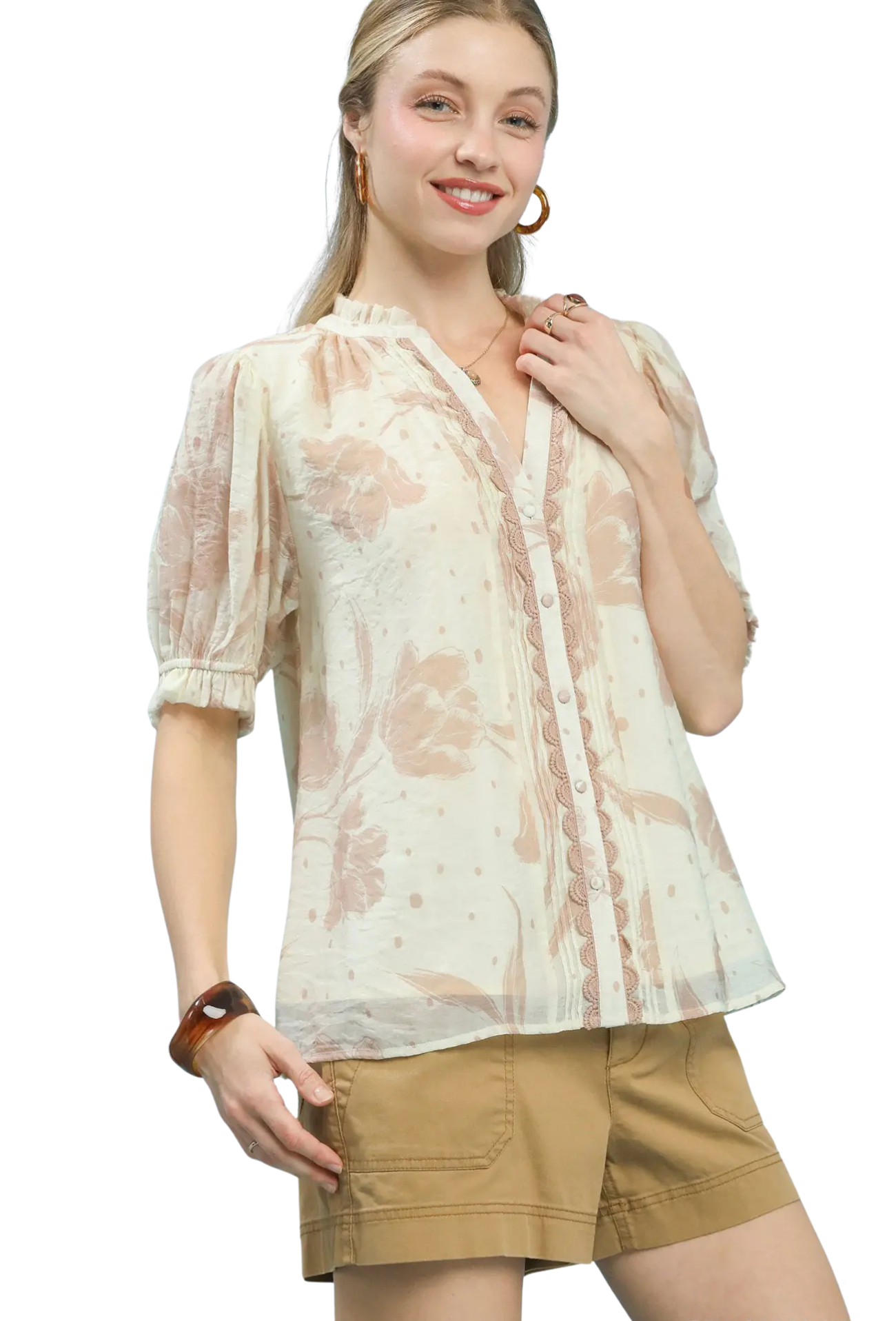 Embrace effortless elegance with the Feeling So Blessed Blouse, a charming piece that combines timeless style with modern comfort. The flattering v-neck and delicate puff sleeves create a romantic silhouette, while the button closure offers easy styling versatility. Adorned with a beautiful floral print, this lightweight blouse is perfect for layering or wearing solo—ideal for transitioning from day to evening. Whether you're dressing up for a special occasion or elevating your everyday look, this blouse delivers both grace and practicality in one stunning design.