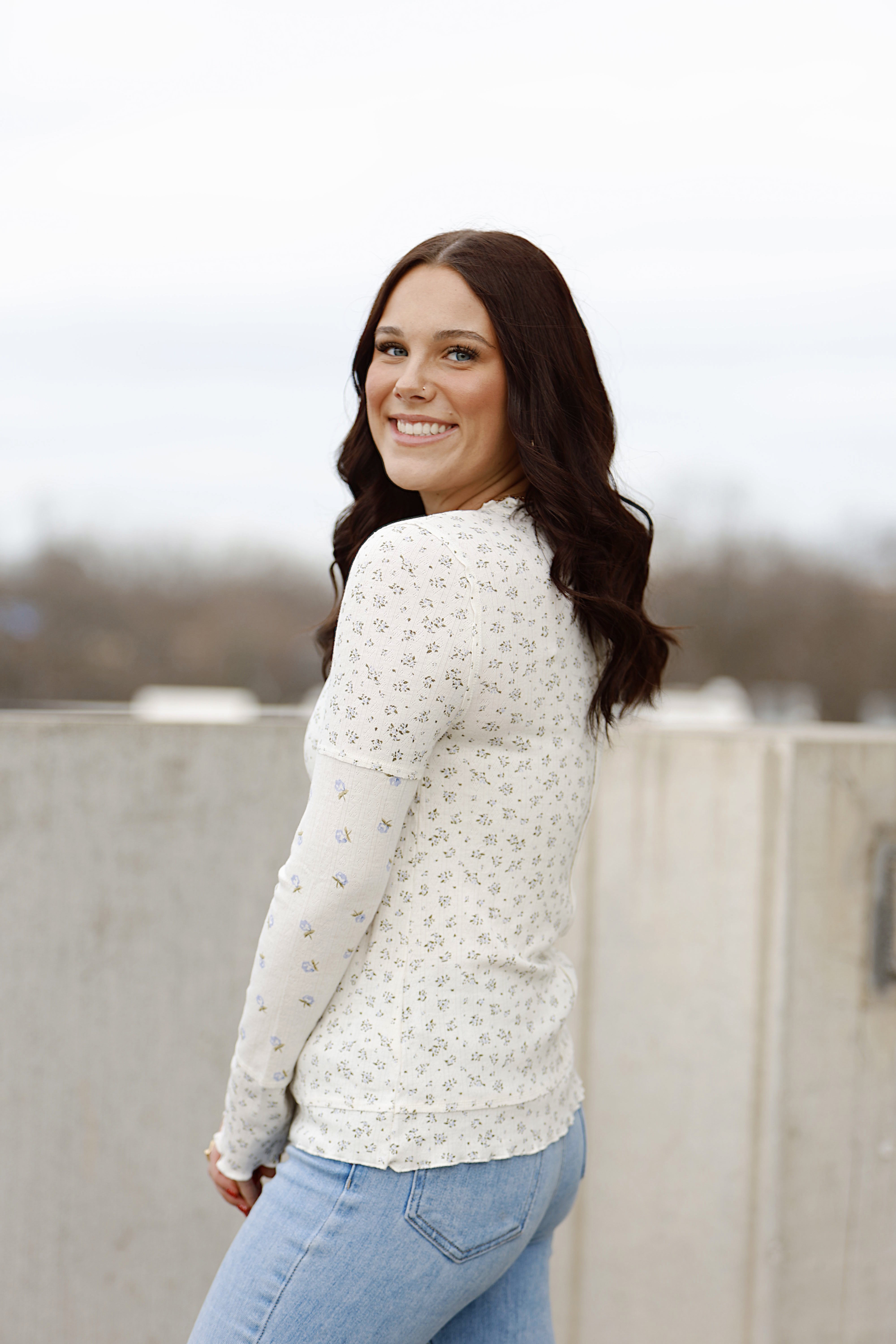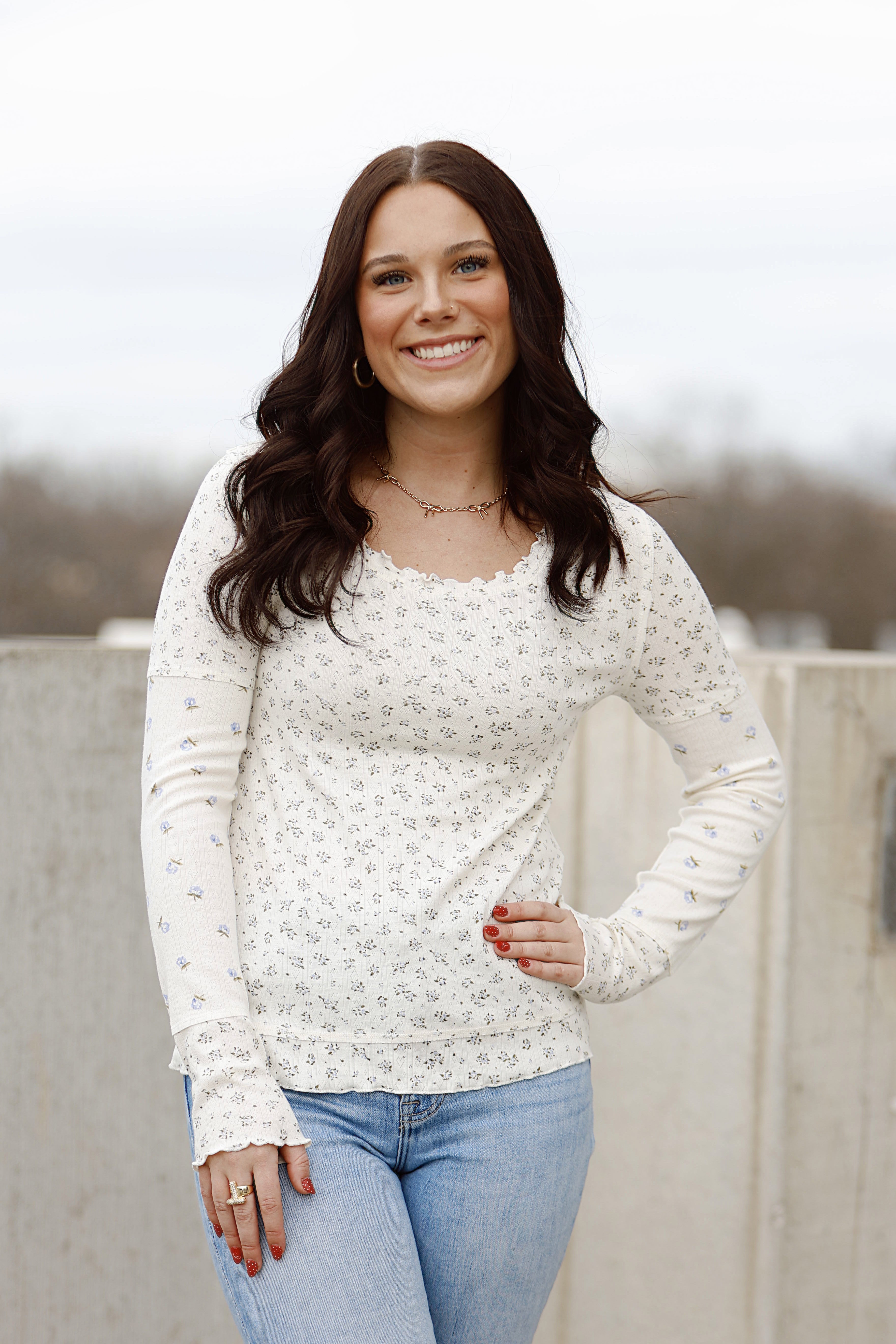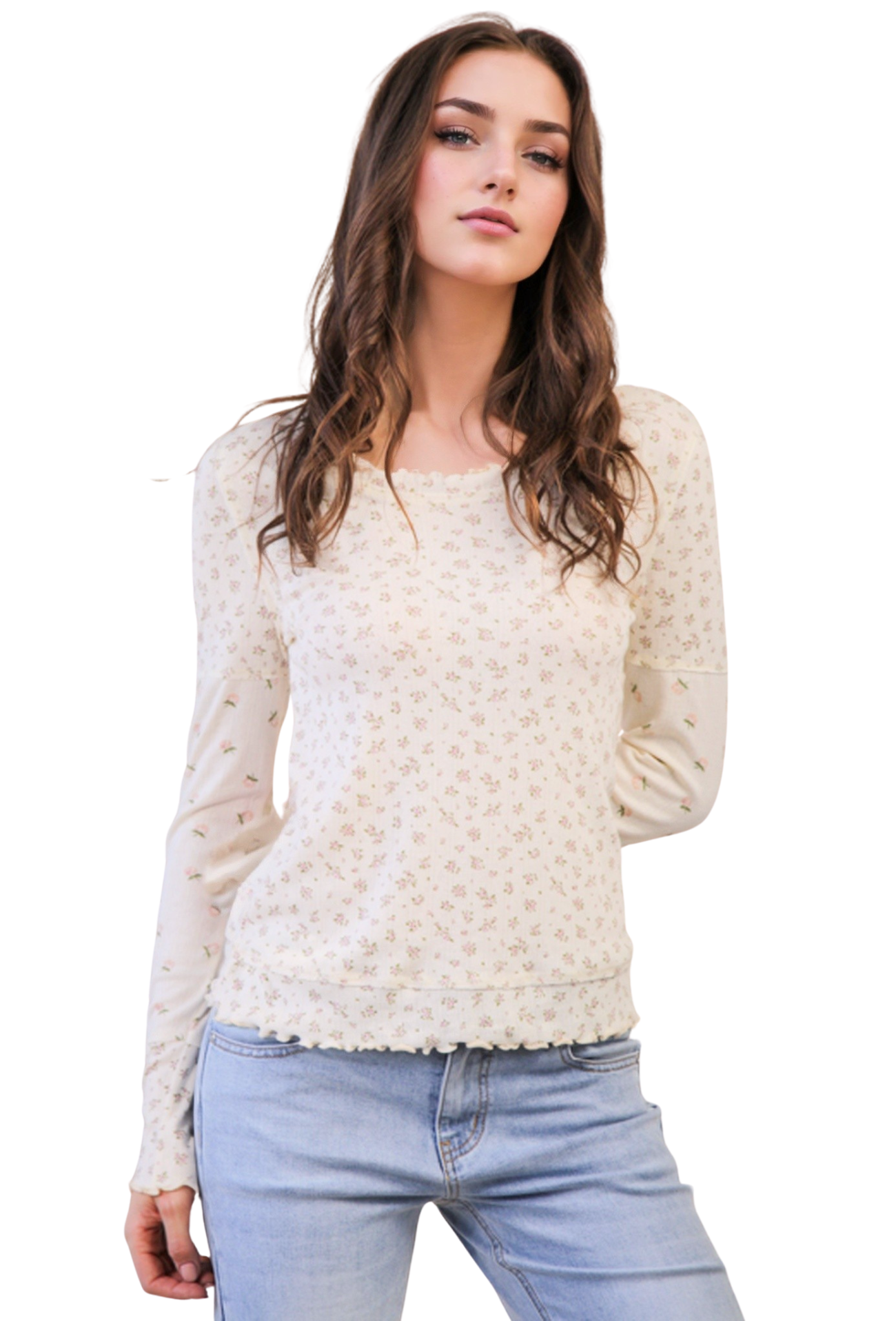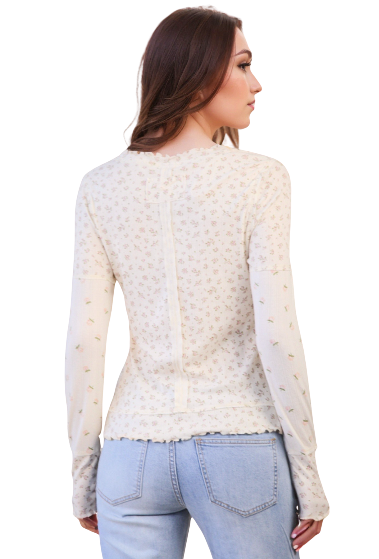 Embrace effortless charm with this delightful floral top, designed to make you feel as beautiful as the blooms it features. The classic round neckline offers timeless appeal, while the playful lettuce edge trim adds a touch of whimsy and movement to your everyday look. Perfect for those who appreciate feminine details without sacrificing comfort, this piece transitions seamlessly from casual outings to weekend gatherings. Let this adorable floral creation become your go-to choice for looking polished and put-together with minimal effort.