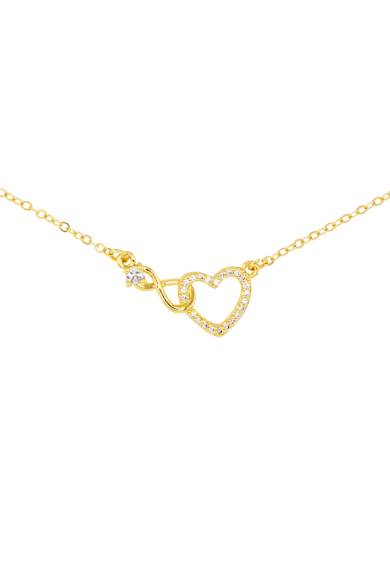 Delicate gold strands intertwine to create a timeless symbol of endless love. This Heart & Infinity Necklace combines two meaningful designs in one graceful piece—a heart representing devotion and an infinity loop signifying forever. Perfect for layering or wearing solo, its dainty construction makes it comfortable for everyday wear while remaining elegant enough for special occasions. A versatile addition to any jewelry collection that speaks volumes without saying a word.