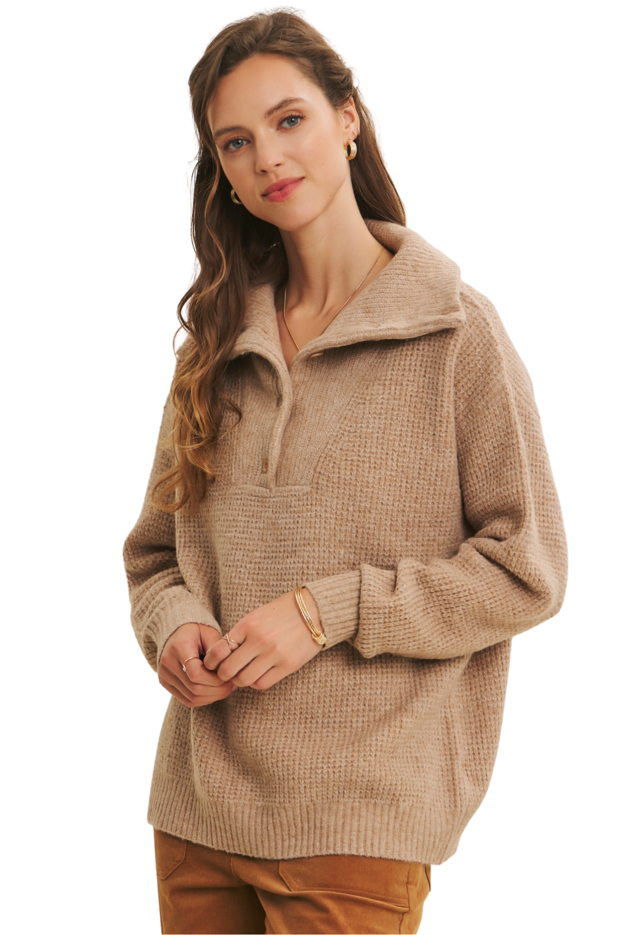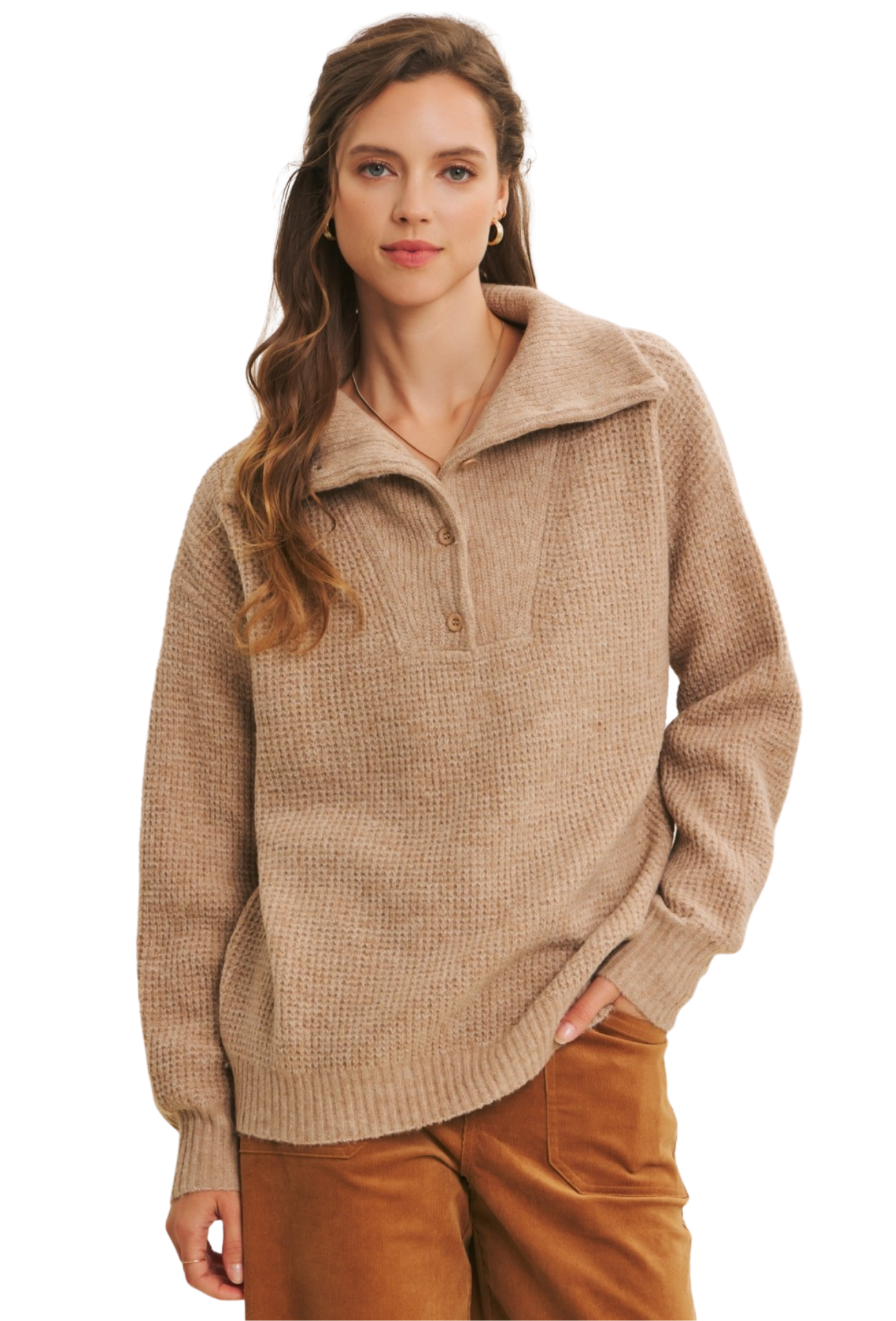Wrap yourself in effortless sophistication with this pullover sweater, designed to become your go-to layering essential. The classic collared silhouette offers timeless appeal while the soft knit fabric delivers that coveted cozy comfort you'll crave all season long. Subtle button details add a refined touch that elevates the piece from basic to beautifully considered. Perfect for pairing with everything from denim to tailored trousers, this sweater bridges the gap between casual comfort and polished style—making it the versatile investment your wardrobe has been waiting for.