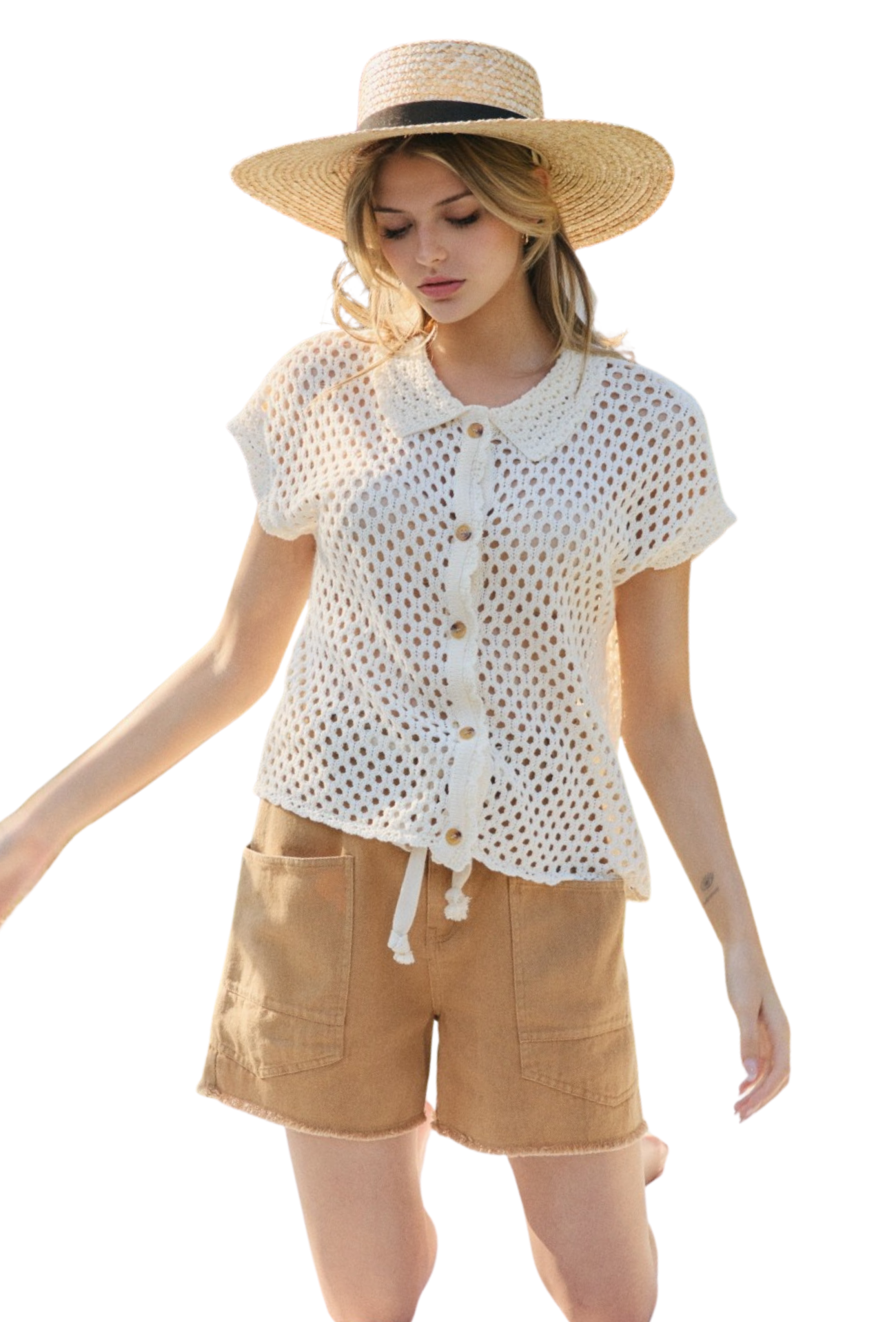 Effortlessly elevate your everyday style with this open-knit button-down cardigan. The relaxed, breathable weave keeps you comfortable while the sharp point collar adds instant sophistication. Perfect for layering over your favorite tees or wearing solo, the front button closure gives you complete control over your look. Whether you're transitioning between seasons or refreshing your wardrobe, this versatile piece delivers both comfort and polish for any occasion.