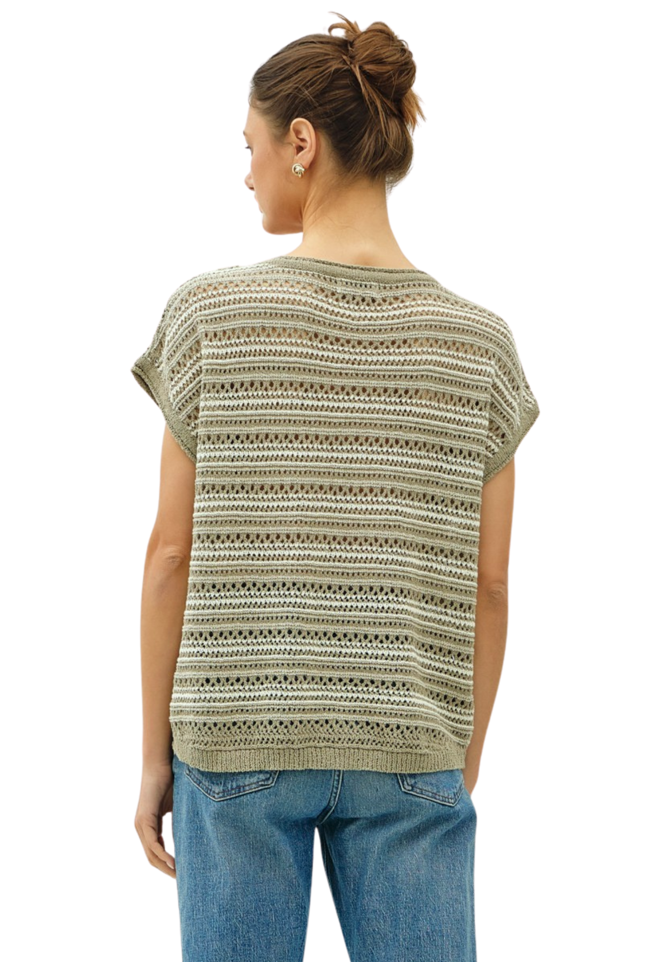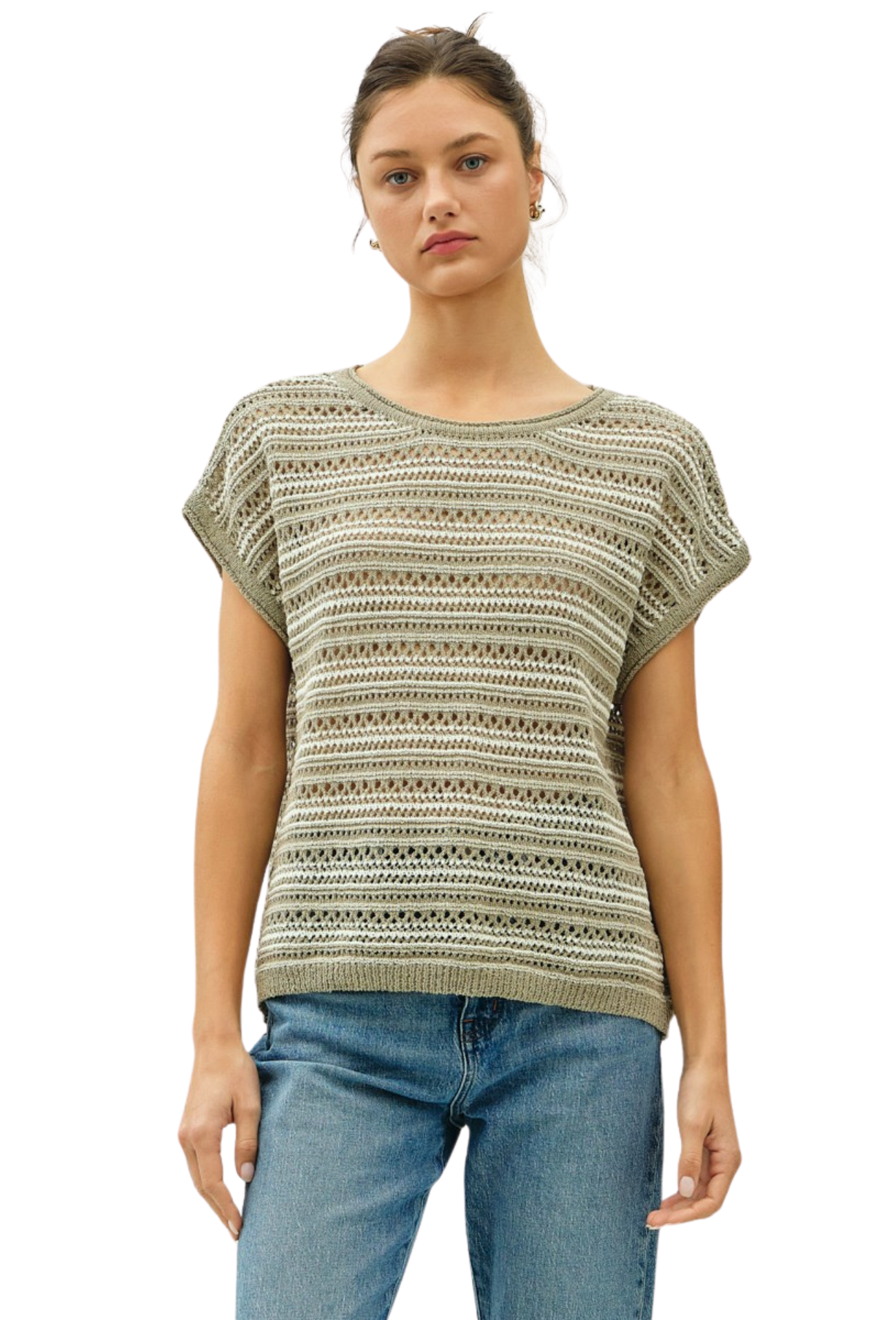 Catch eyes this spring in our You Caught My Eye S/S Sweater. This charming cap sleeve knit features classic stripes that add visual interest and versatility to your seasonal wardrobe. The lightweight construction keeps you comfortable as temperatures rise, while the flattering silhouette works beautifully layered or worn solo. Perfect for transitional weather, this piece effortlessly elevates casual outfits with understated sophistication. A wardrobe essential that delivers timeless style when you need it most.
